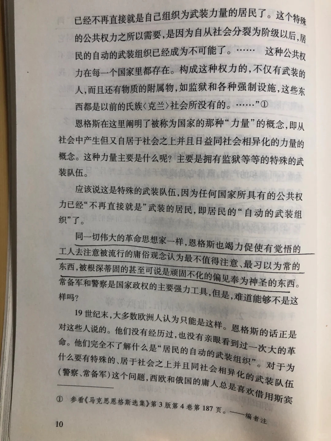 话说回来,列宁这本书主要是讲什么是国家,国家是如何产生和灭亡的。国家的本质是一个阶级镇压另一个阶级的工具。社会主义国家就是要通过暴力来夺取政权,解放全人类。随着阶级的消亡,国家也随之消亡。那就是共产主义了。
