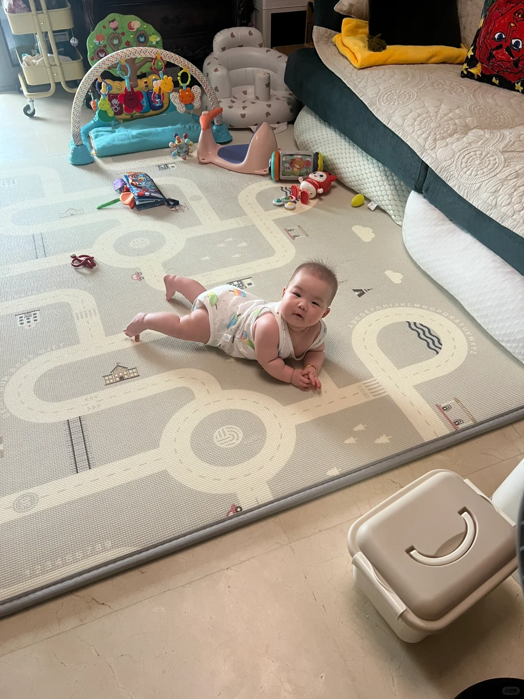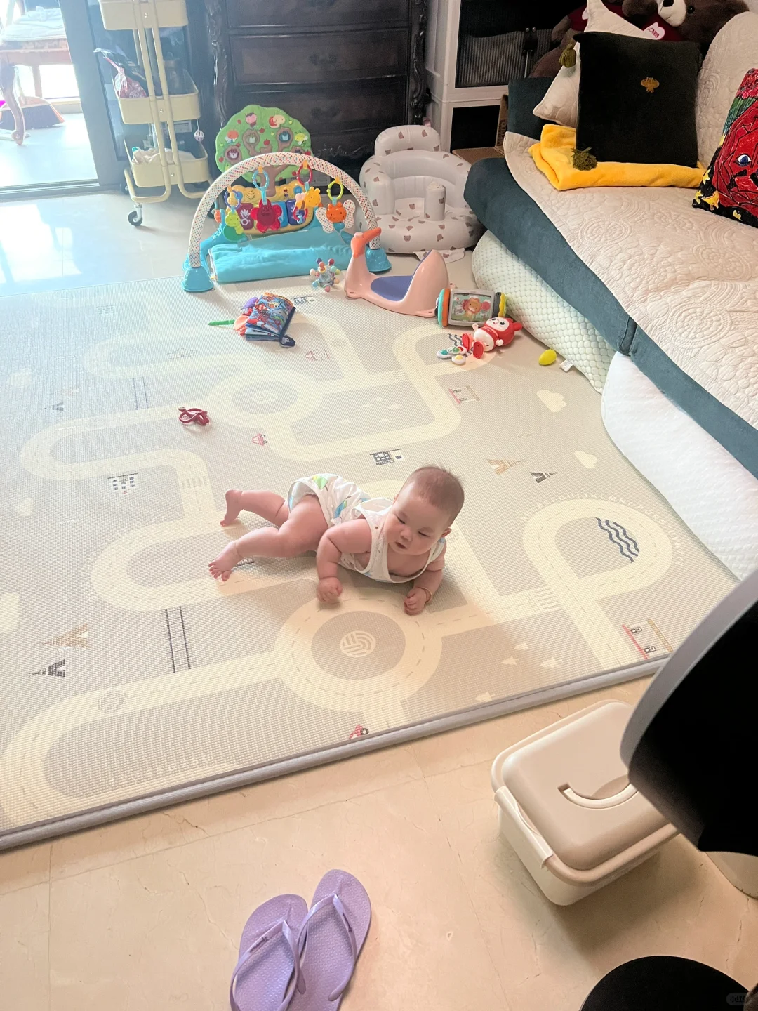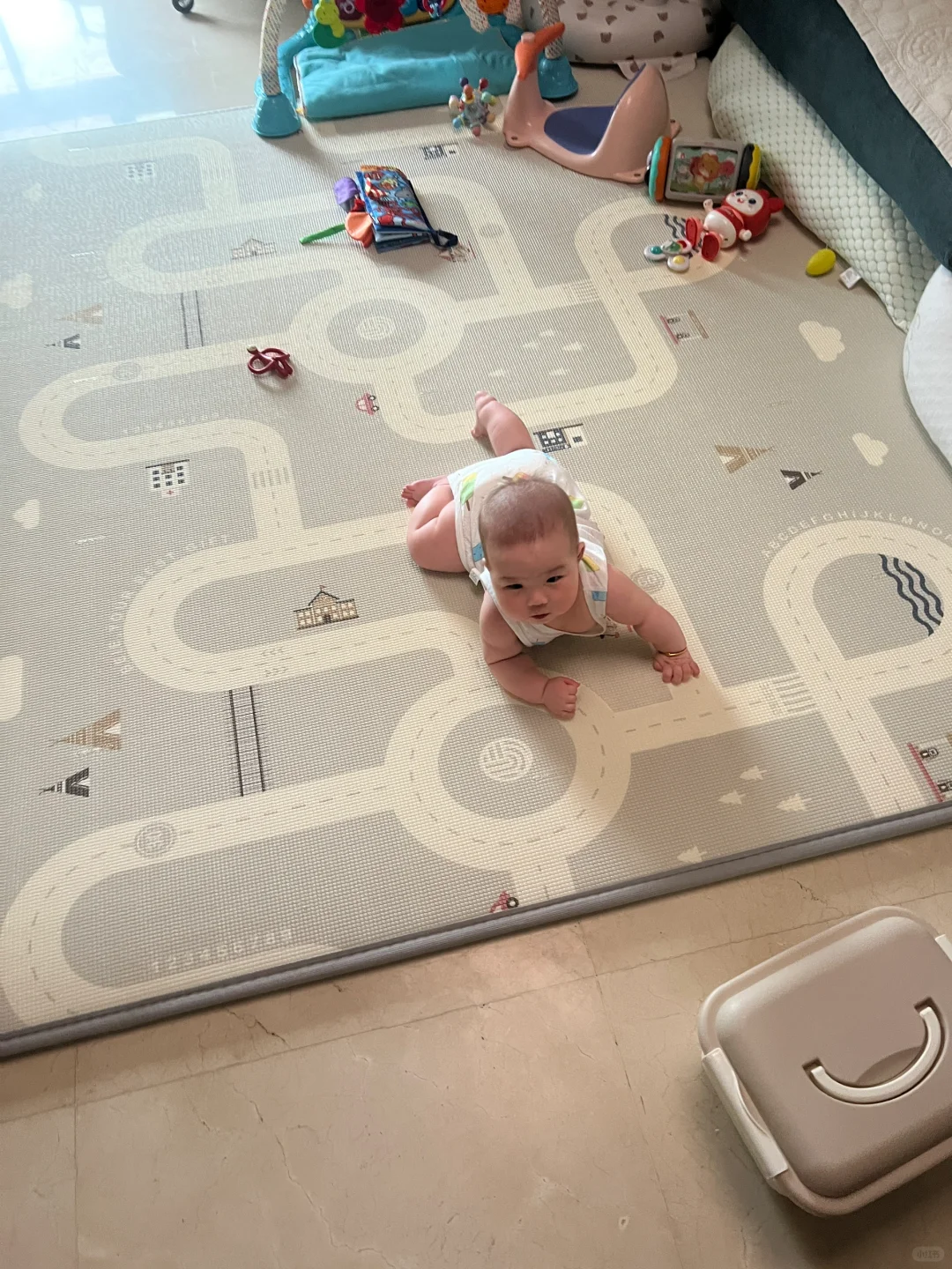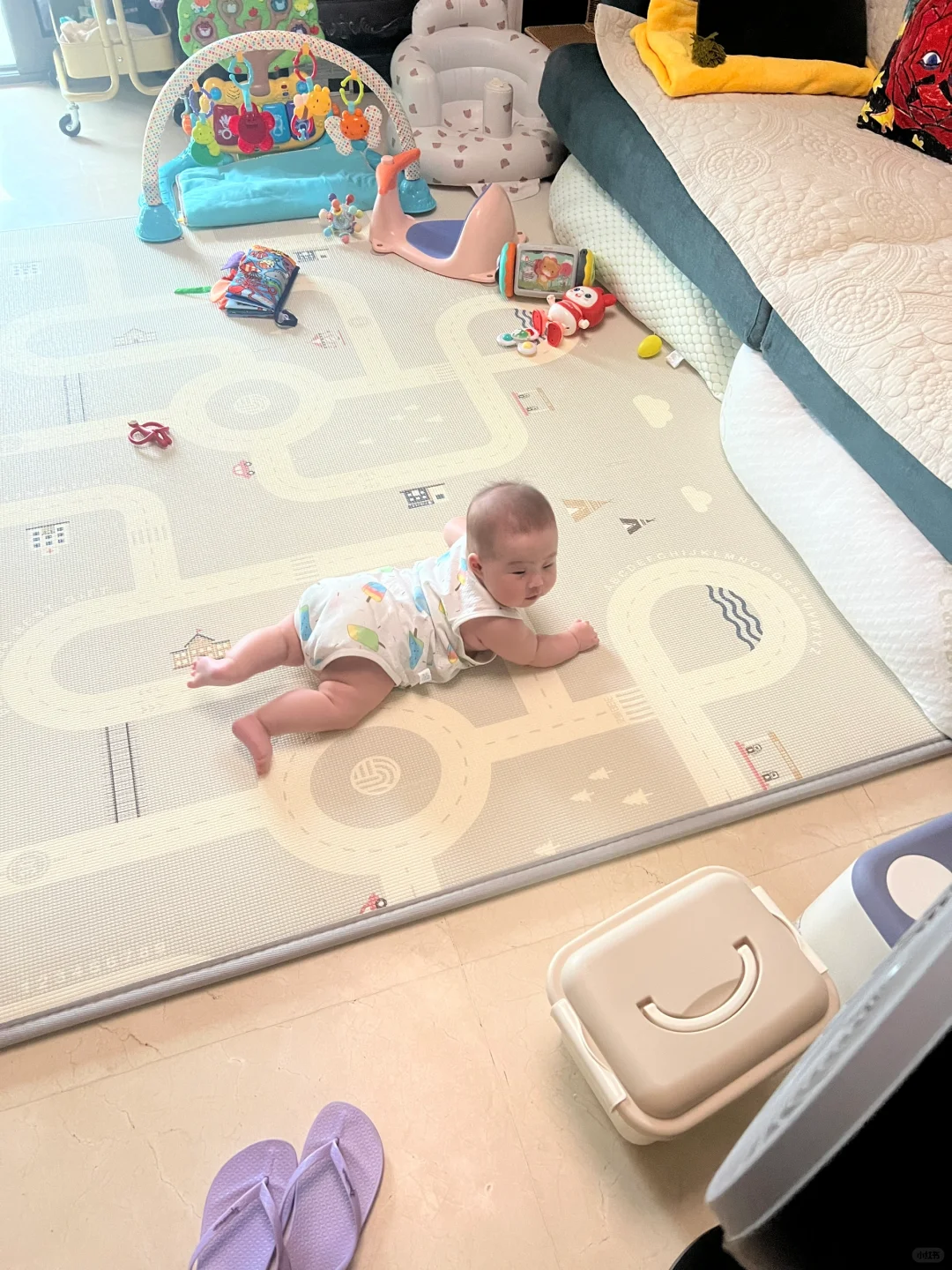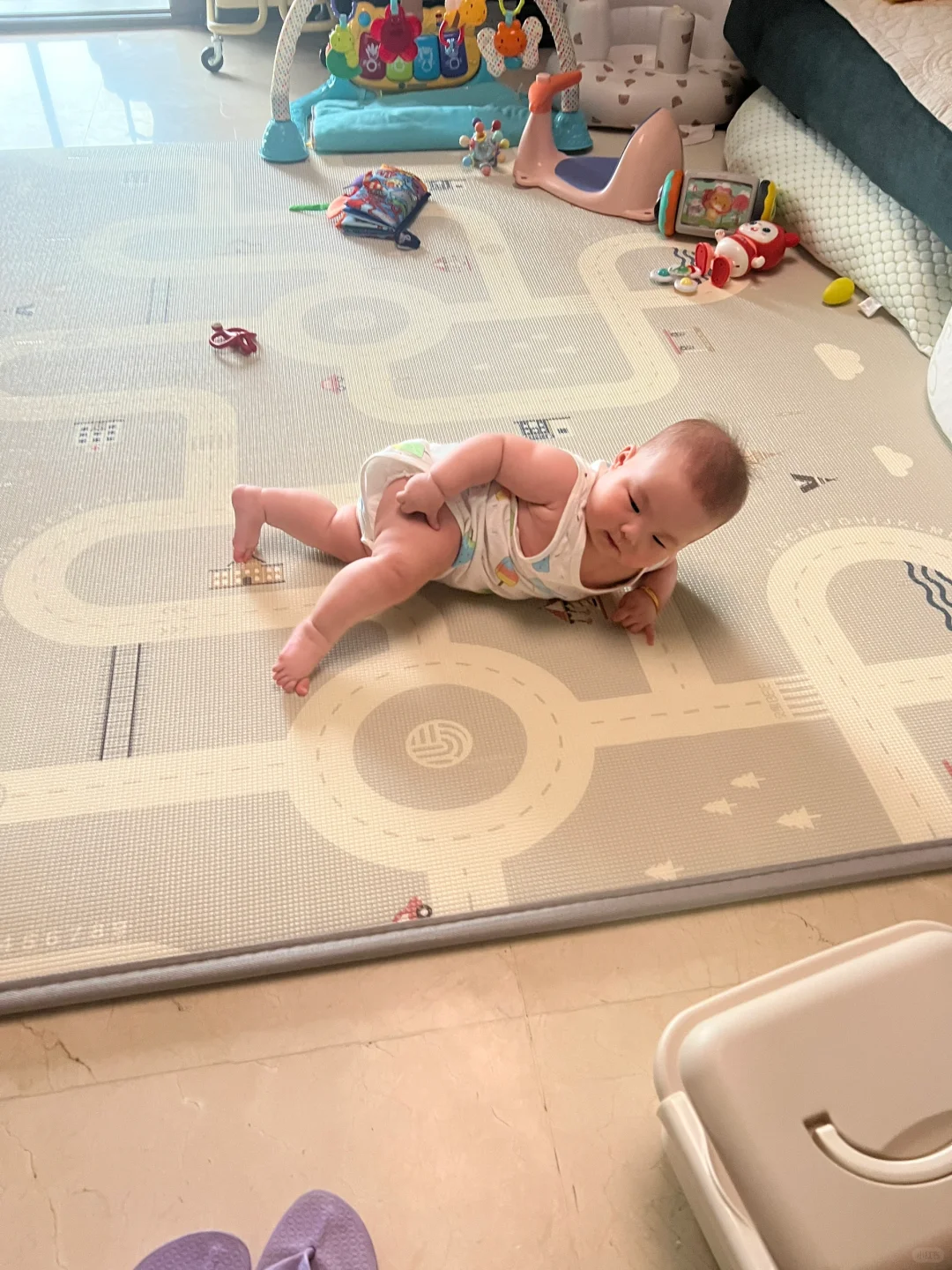 最个半月的宝宝,大运动很不错,又解锁了新技能:到手撑地[暗中观察R]