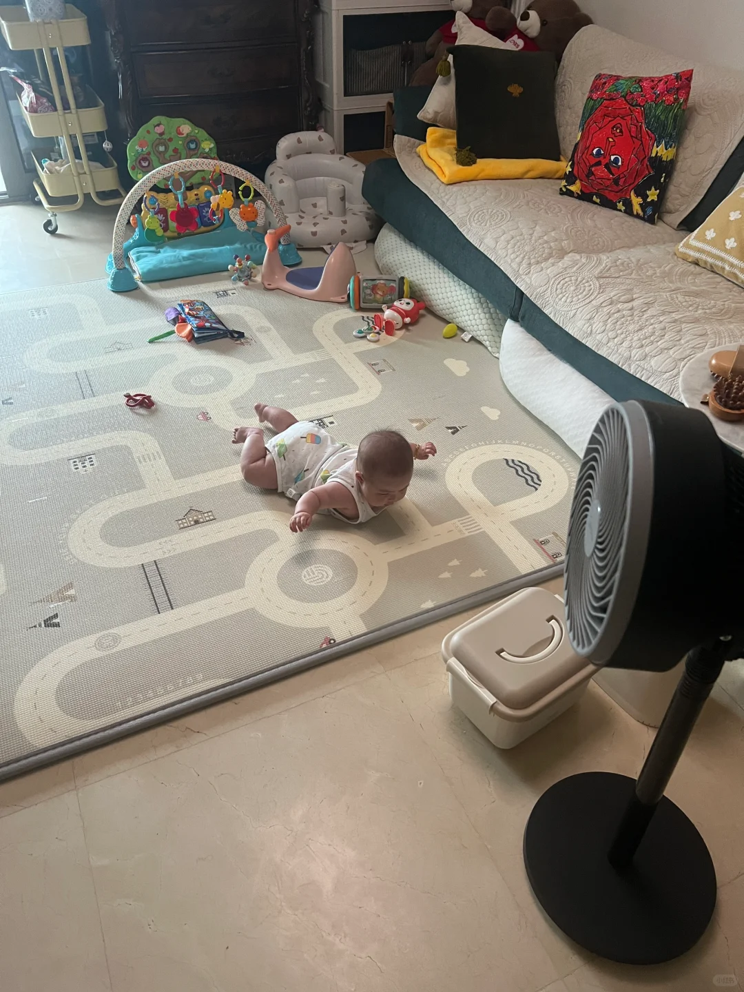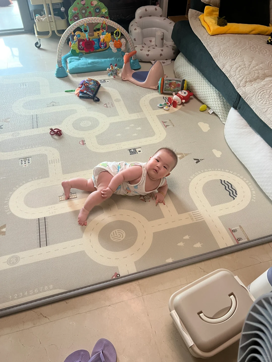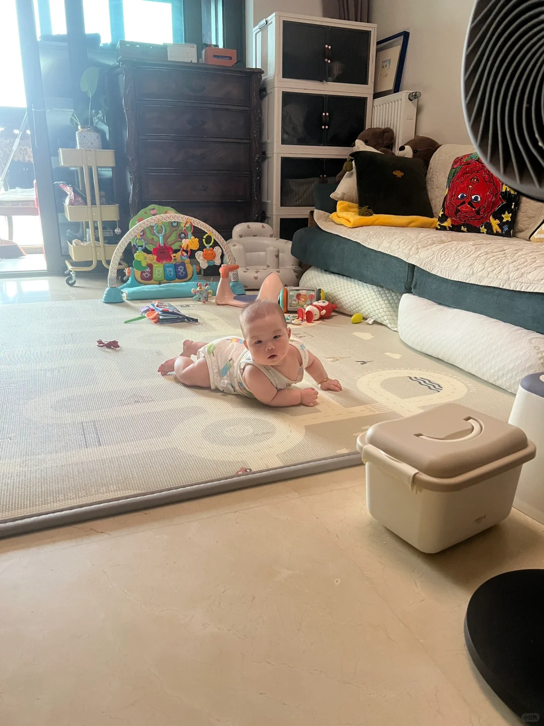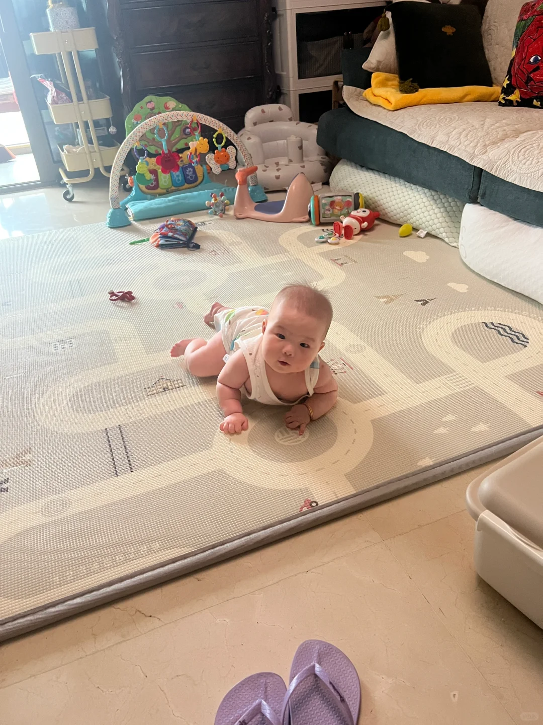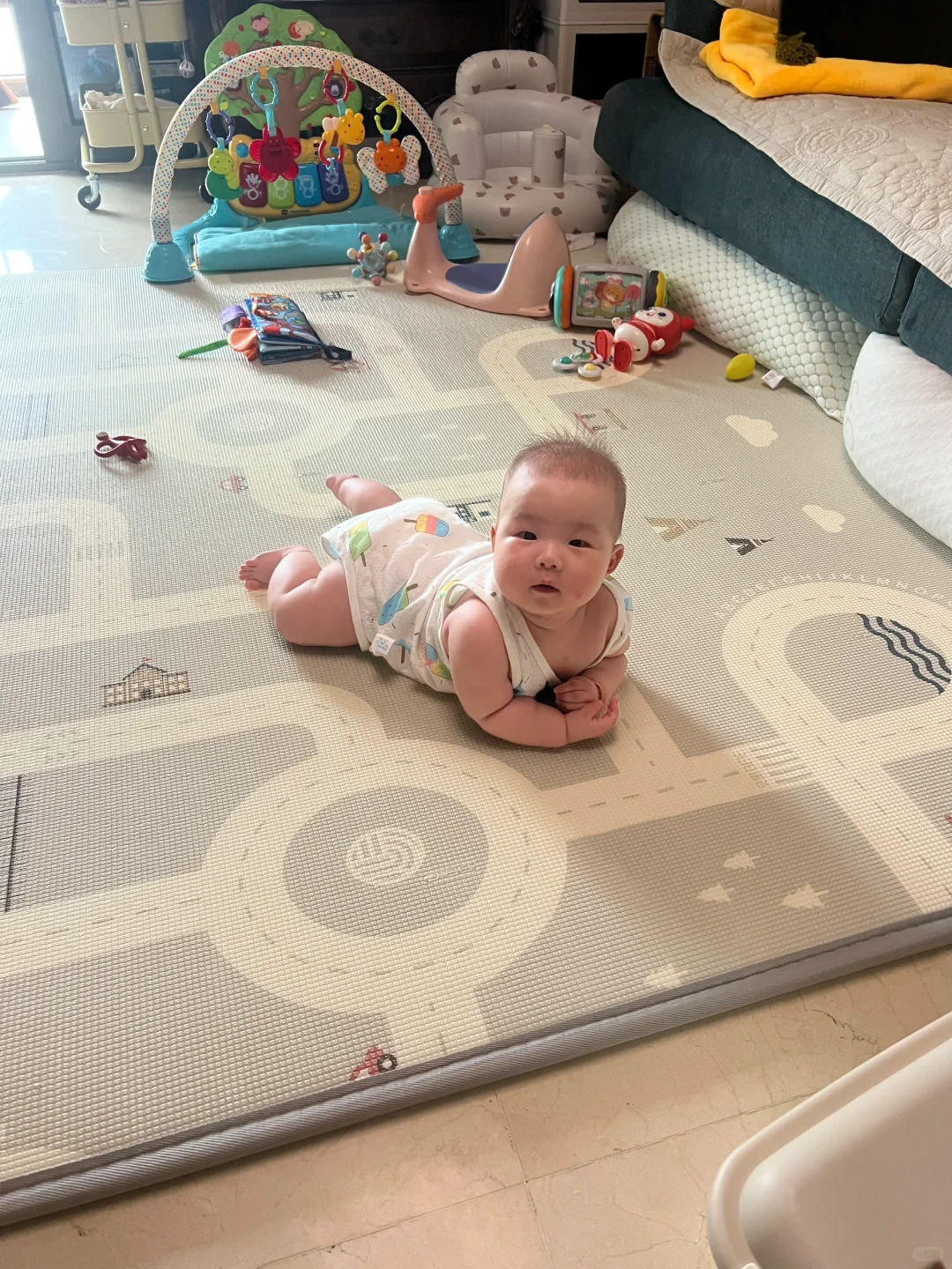 最个半月的宝宝,大运动很不错,又解锁了新技能:到手撑地[暗中观察R]