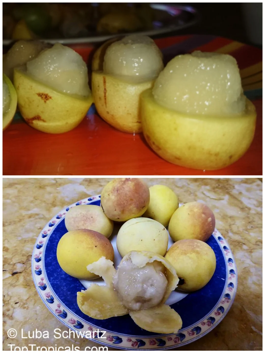 果肉厚实而多汁,它吃起来像核桃和花生的综合在一起的味道。除了可以鲜食,它也可以煮熟后制成果酱、果汁,以及添加到酒中制成鸡尾酒。