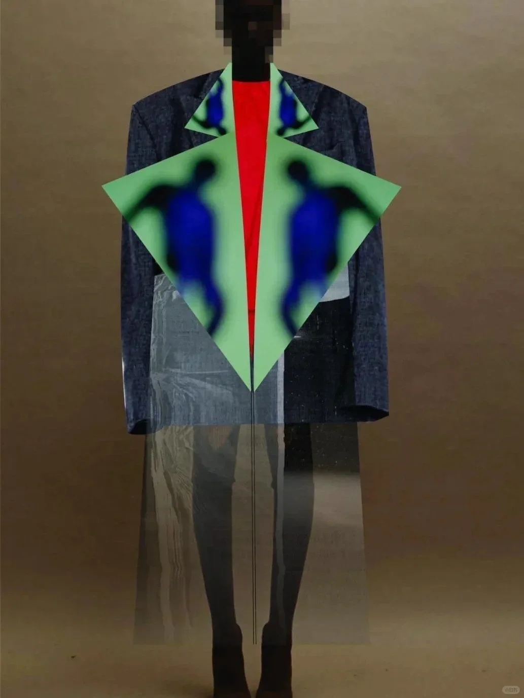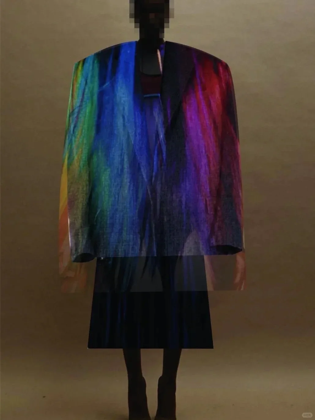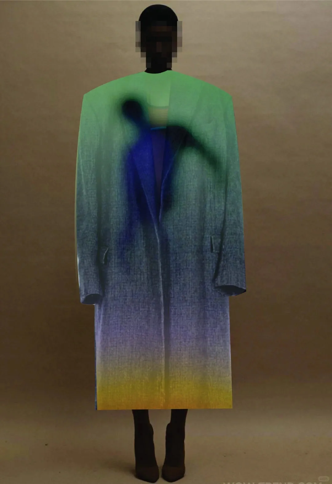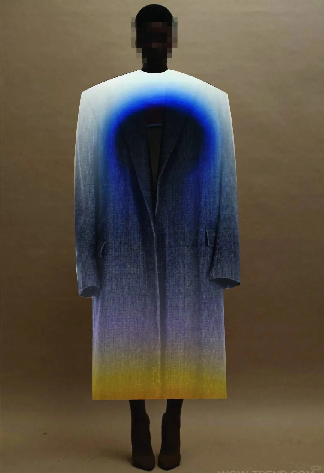 渐变的迷幻色彩给我们扭曲现实的感受。虚拟的和服式超大外套和大衣,都带有鲜明的日本浪漫主义色彩。