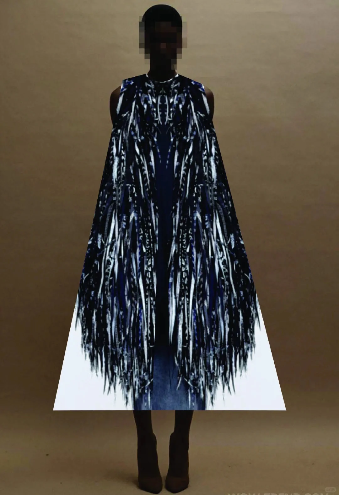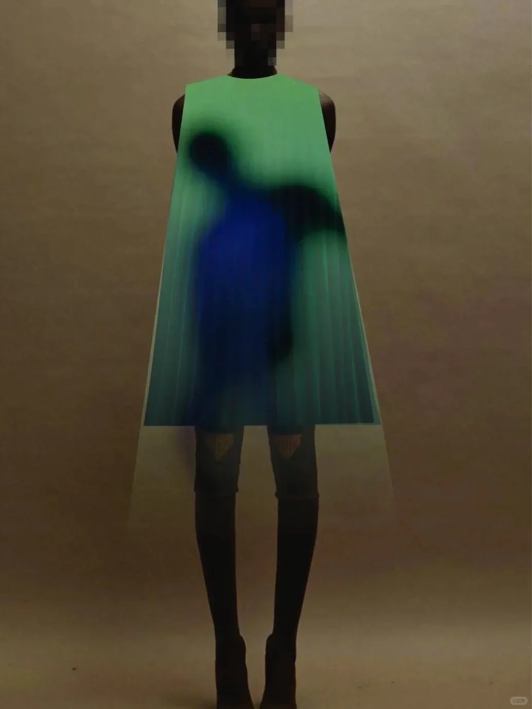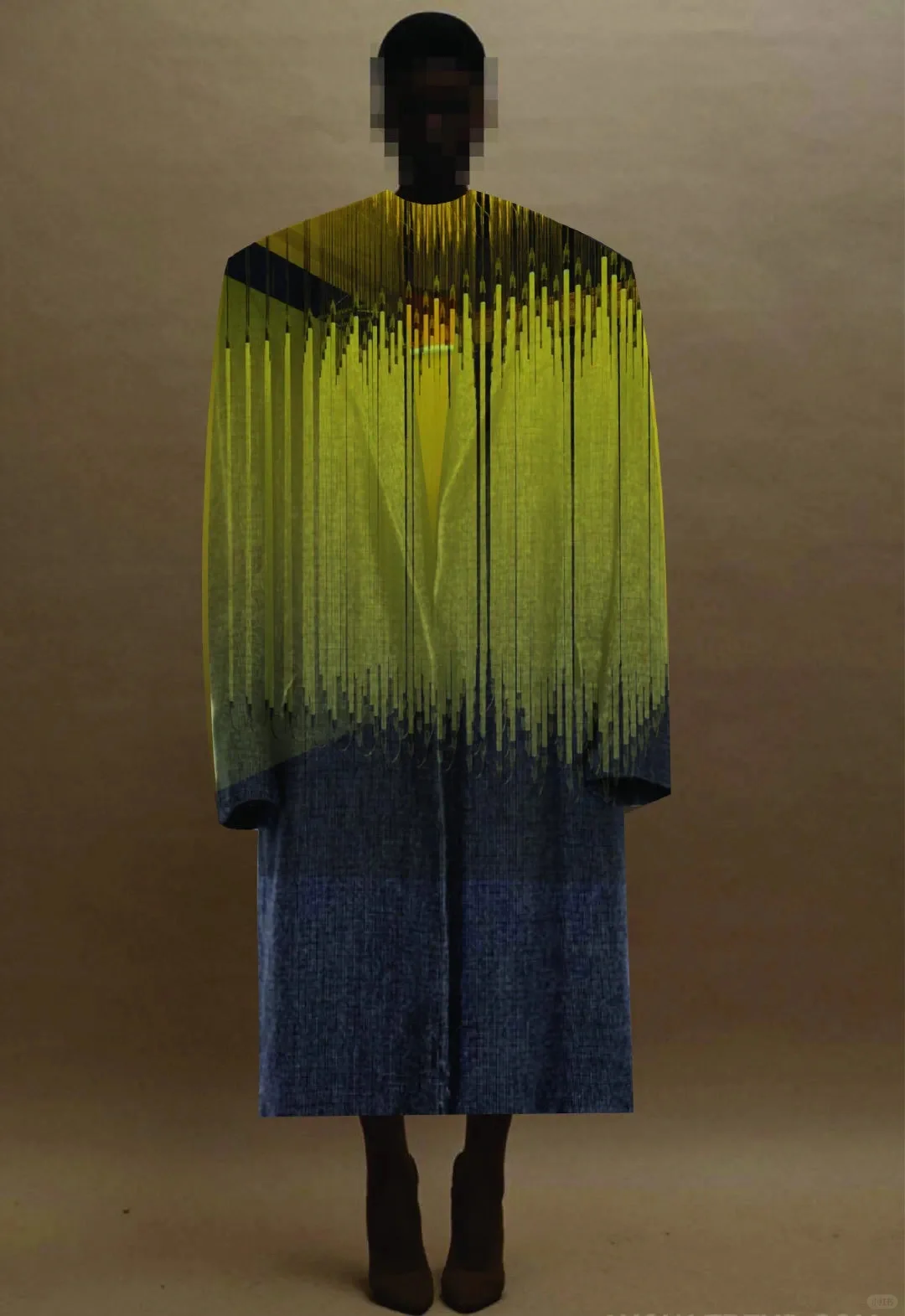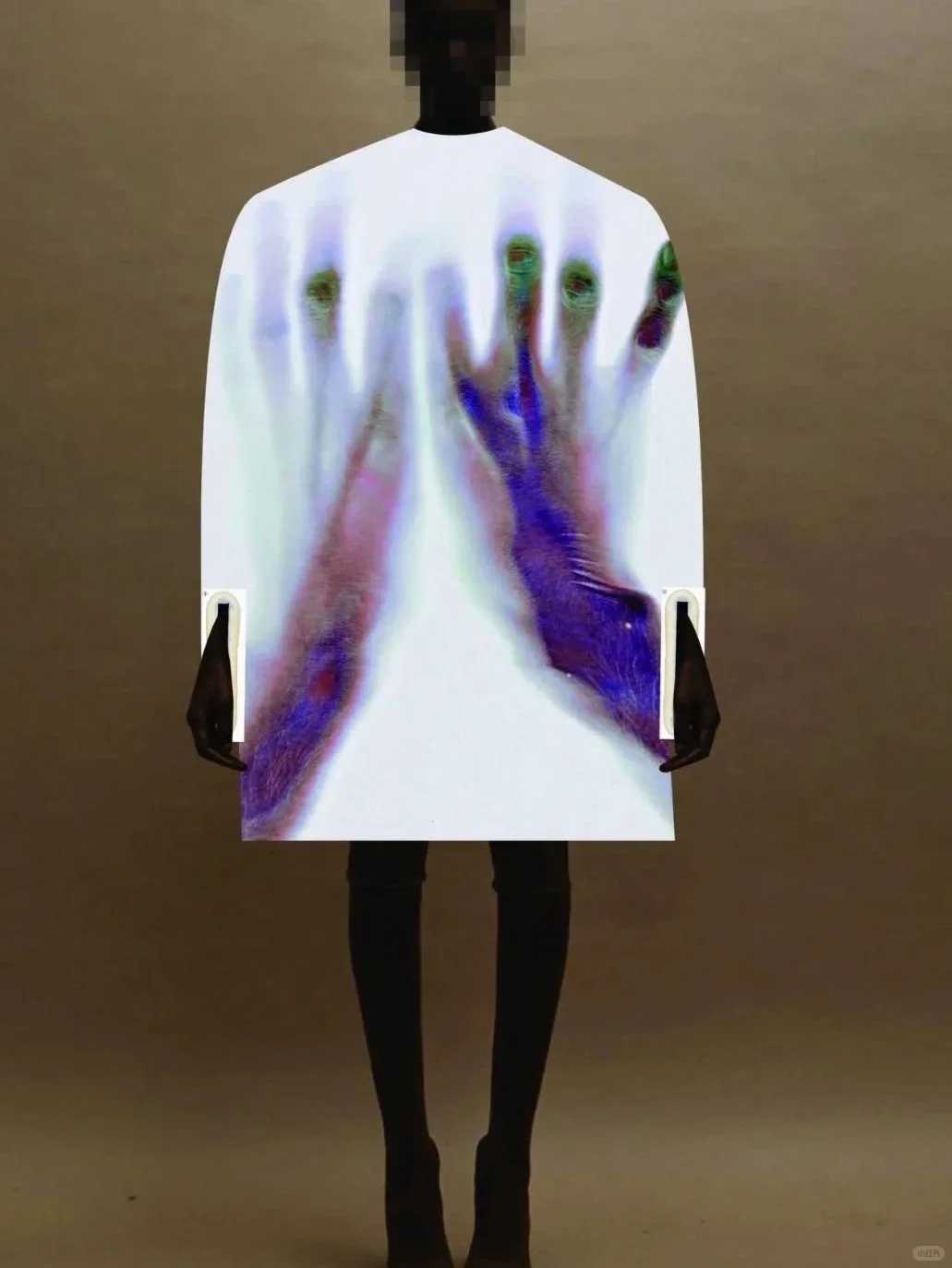 渐变的迷幻色彩给我们扭曲现实的感受。虚拟的和服式超大外套和大衣,都带有鲜明的日本浪漫主义色彩。