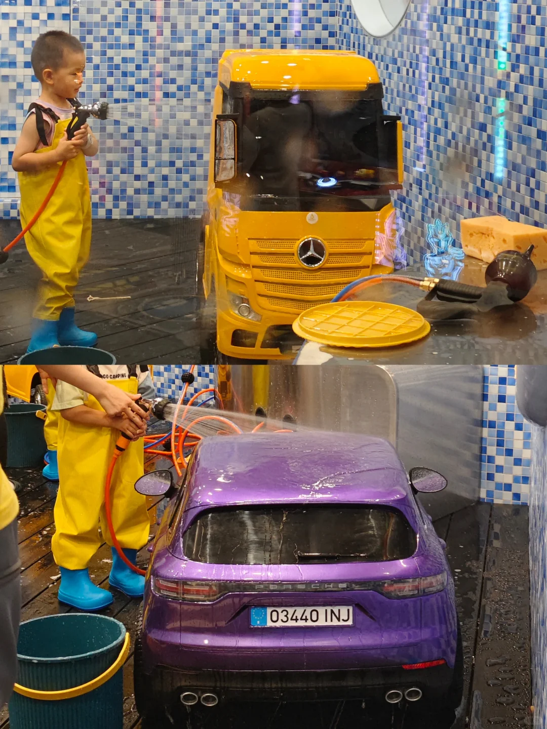 6⃣️洗车区:人气超高!有2辆小车可以洗,每次进去4人需要排队,下午人超多就没来得及玩上啦