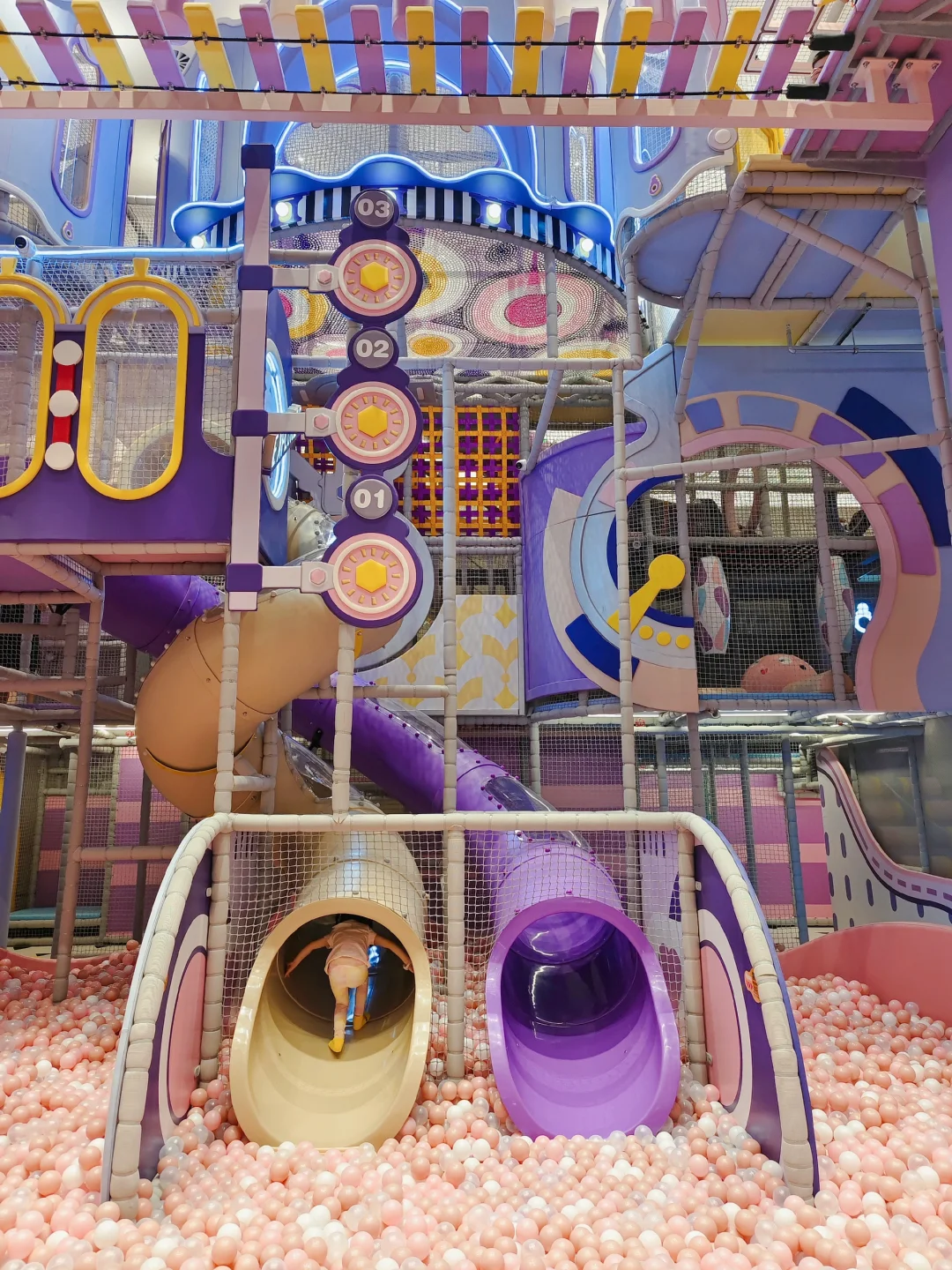 2⃣️攀爬滑梯区:荟聚店特色‼️会闪光的大滑梯,嗖💨一下滑到海洋球里太好玩啦!小朋友对滑梯没有抵抗力,爬上来滑下去疯狂放电