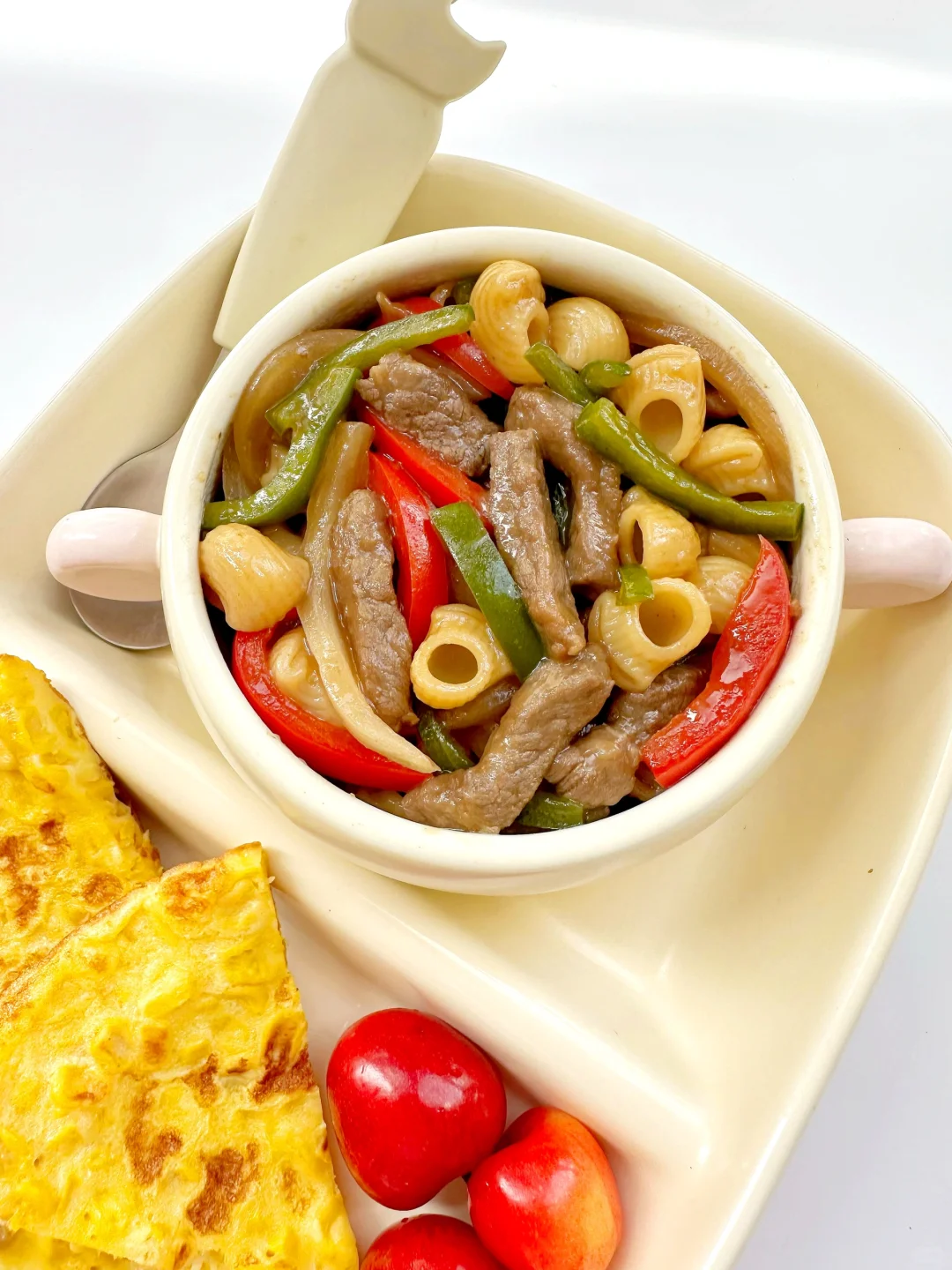 小朋友的早餐🍳彩椒牛柳意面🌽香甜玉米烙