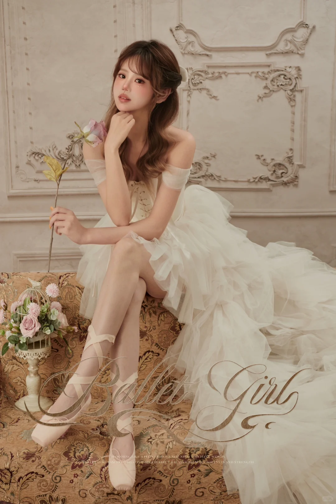 前几天拍了心心念念的The girl,整个妆造都是很公主的,化妆卷发都很细心!这一套总体的色调都很有质感 试衣间里拍的照片也很好看~