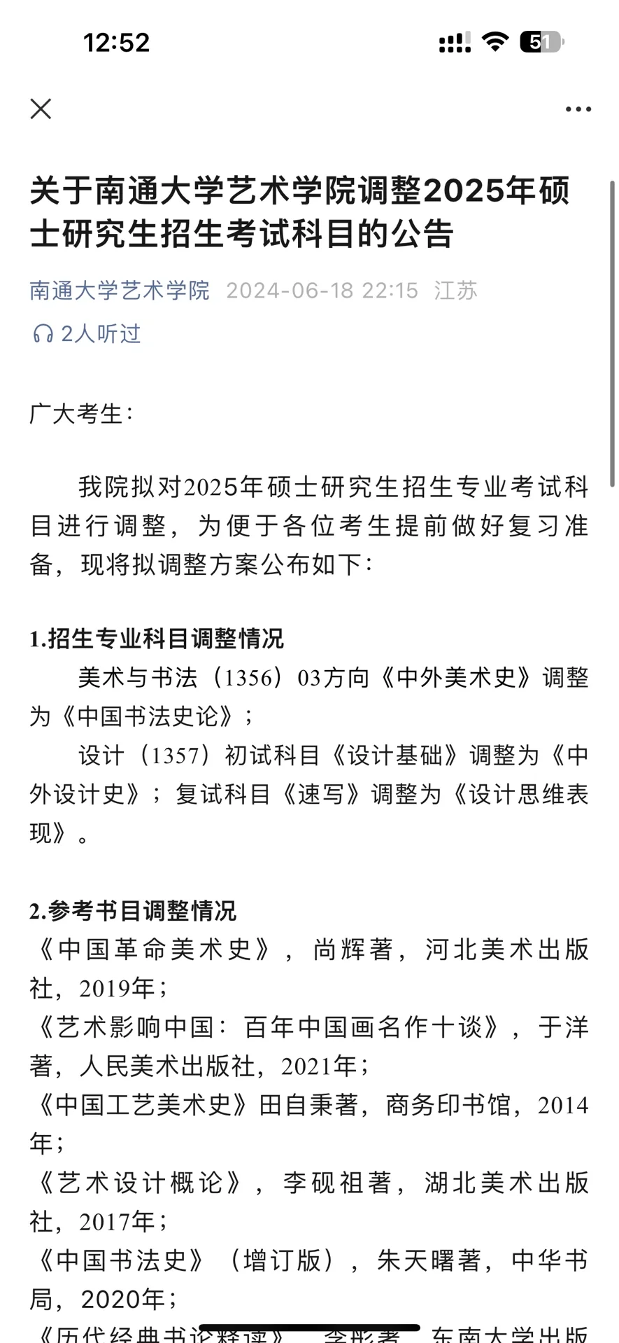 2025届南通大学设计、美术双双改革!!!! 今年报考南通设计和美术的同学注意了哦!!! 想要了解更多详情可以didi进交流组!!!! 改革后考什么?机遇还是挑战!! 要不要换考学校?不换学校如何准备!!