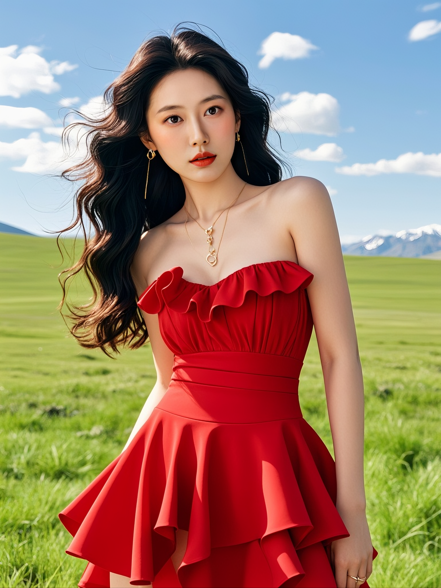 原来红裙和草原那么配!