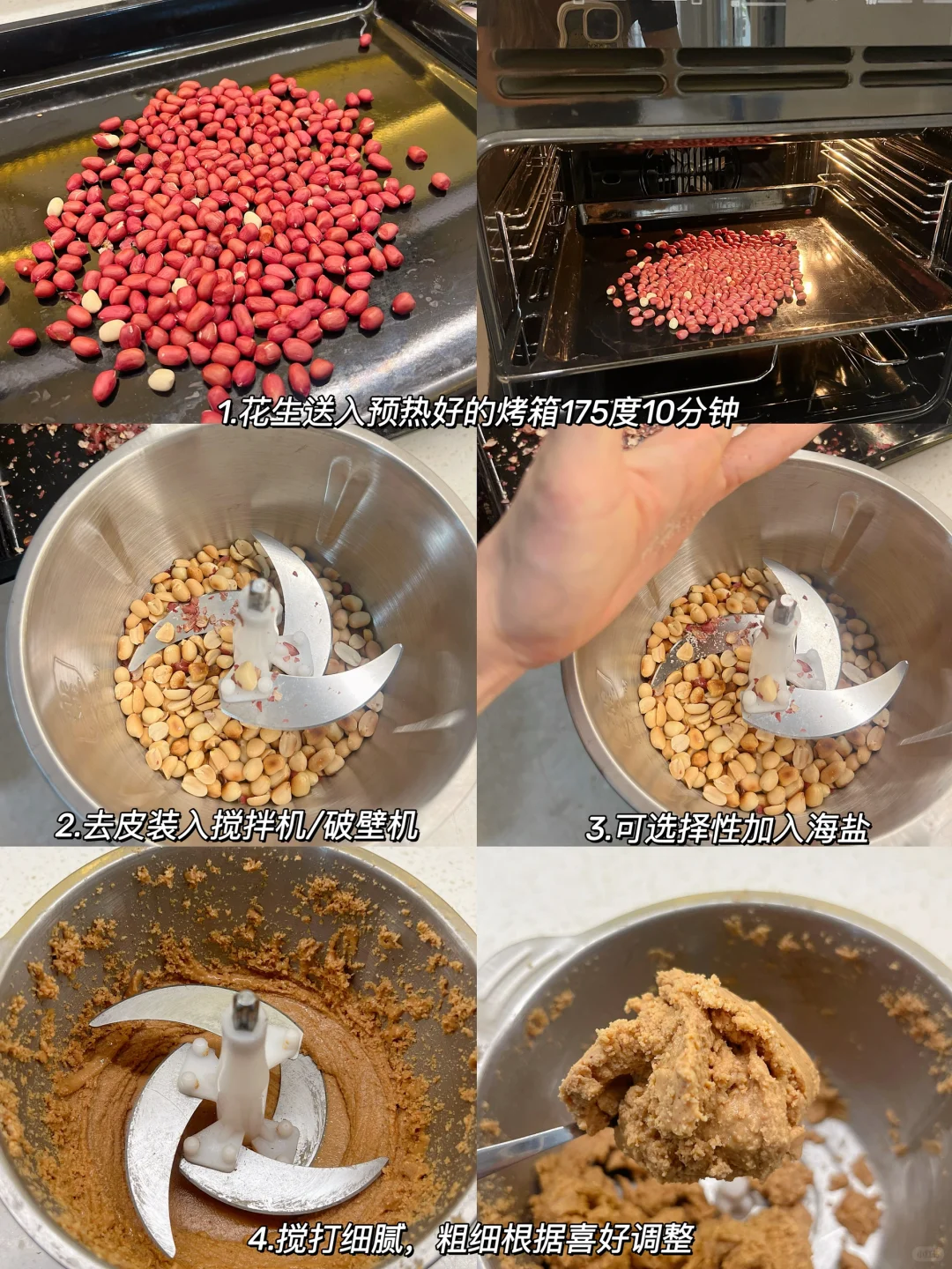 我最近买了好多花生酱,里面不是加很多糖,就是反式脂肪。所以干脆自己动手,没有想这么简单而且味道完全不输买的! 家里有小朋友赶紧做起来,平时馒头啊面包麦片都可以加,爱吃的不得了关键营养也很好! 健身减脂人群也可以多吃! ❤️花生烤完可以去皮可以不去 ❤️可以选择添加海盐、可可或者奇亚籽等等