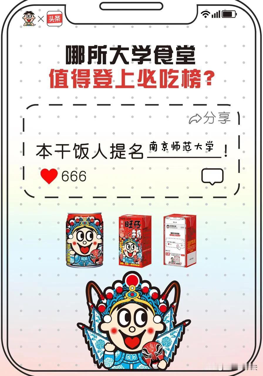 看到今日头条和旺仔牛奶的联名包,心神一阵恍惚,仿佛梦回南师大仙林校区的食堂,仙林校区总共有5个食堂,分别对应东区、西区、南区、北区、新北区,不论是天南还是海北的美食,在这里都应有尽有。