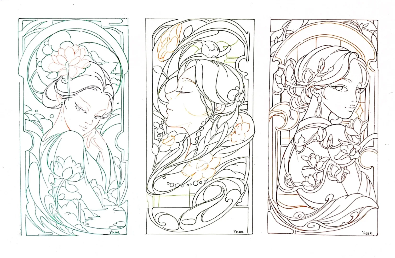 苏州大学艺术设计考研 装饰画 艺术考研 考研手绘 马克笔手绘 马克笔 花神 穆夏 设计基础彩色装饰画 2025苏航艺号手绘打卡
