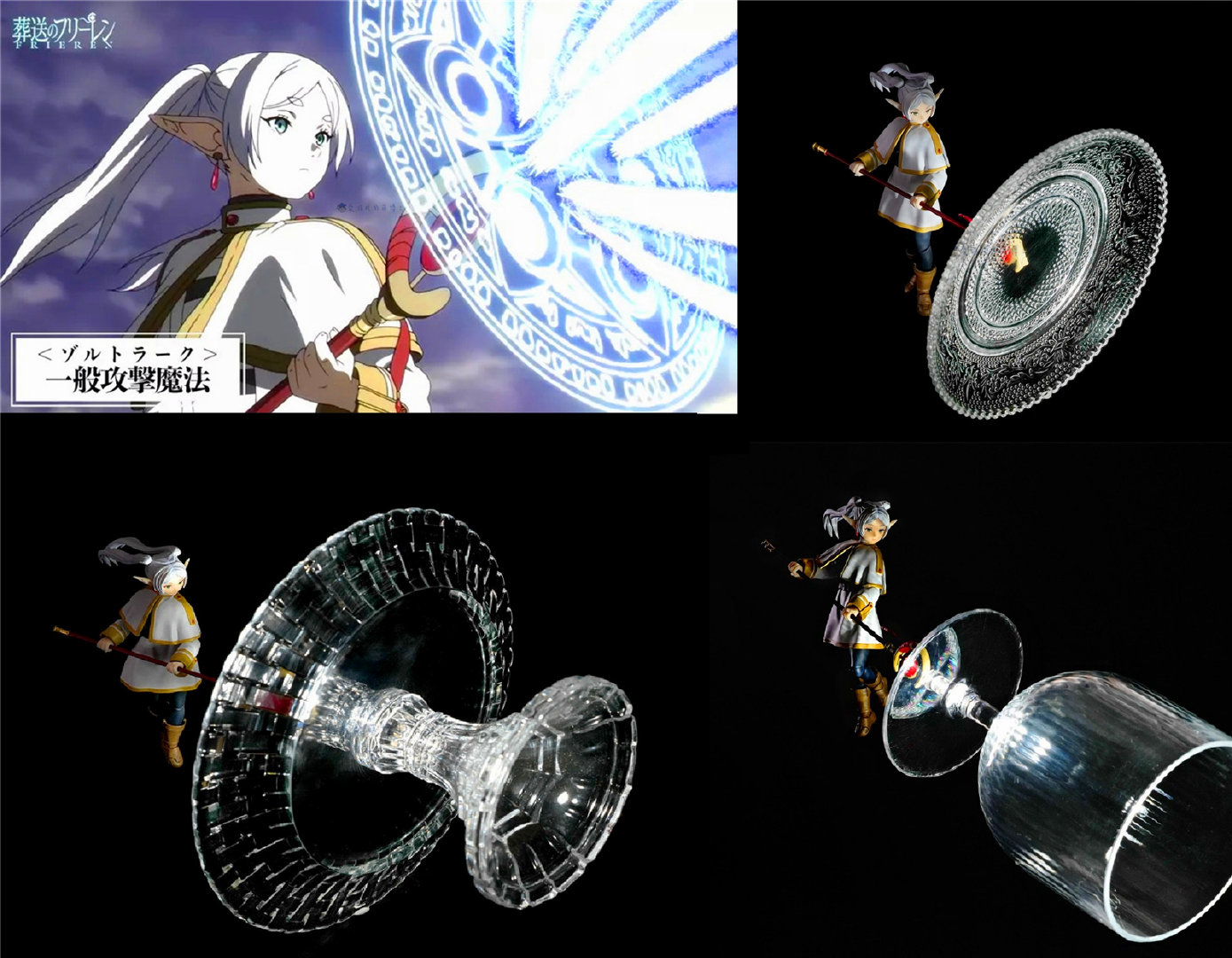 近期,博士和大家分享了摄影达人“田中达也(社群ID为tanaka_tatsuya)”的创意创作,许多粉丝都非常喜欢。他利用一个小巧的芙莉莲模型加上玻璃碟子、托盘、酒杯,就完美还原了动漫中芙莉莲释放普通攻击魔法(又称杀人魔法、弑魔魔法)的三个阶段(魔法阵形成、能量收缩、能量射出),非常有意思,让人印象深刻!