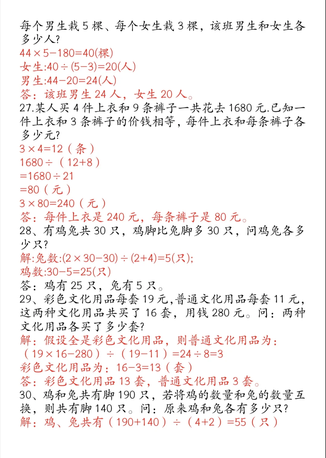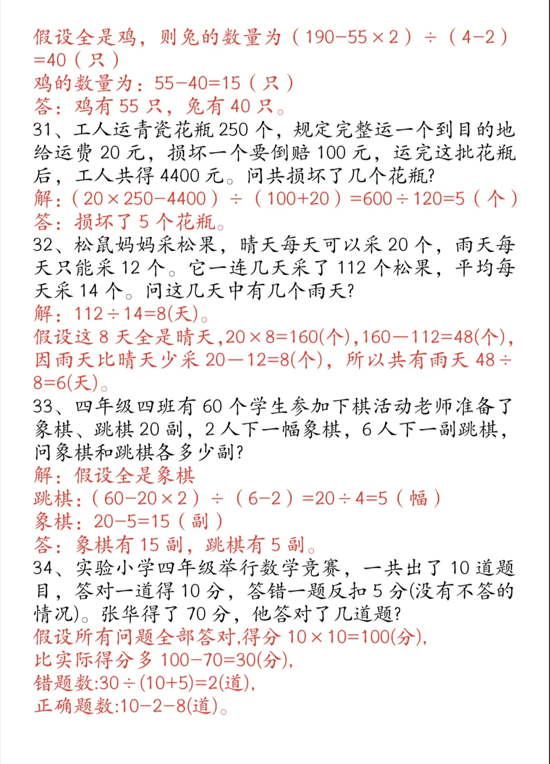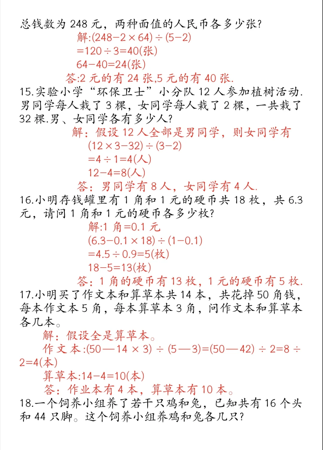 四下|小学奥数🌟鸡兔同笼举一反三练习