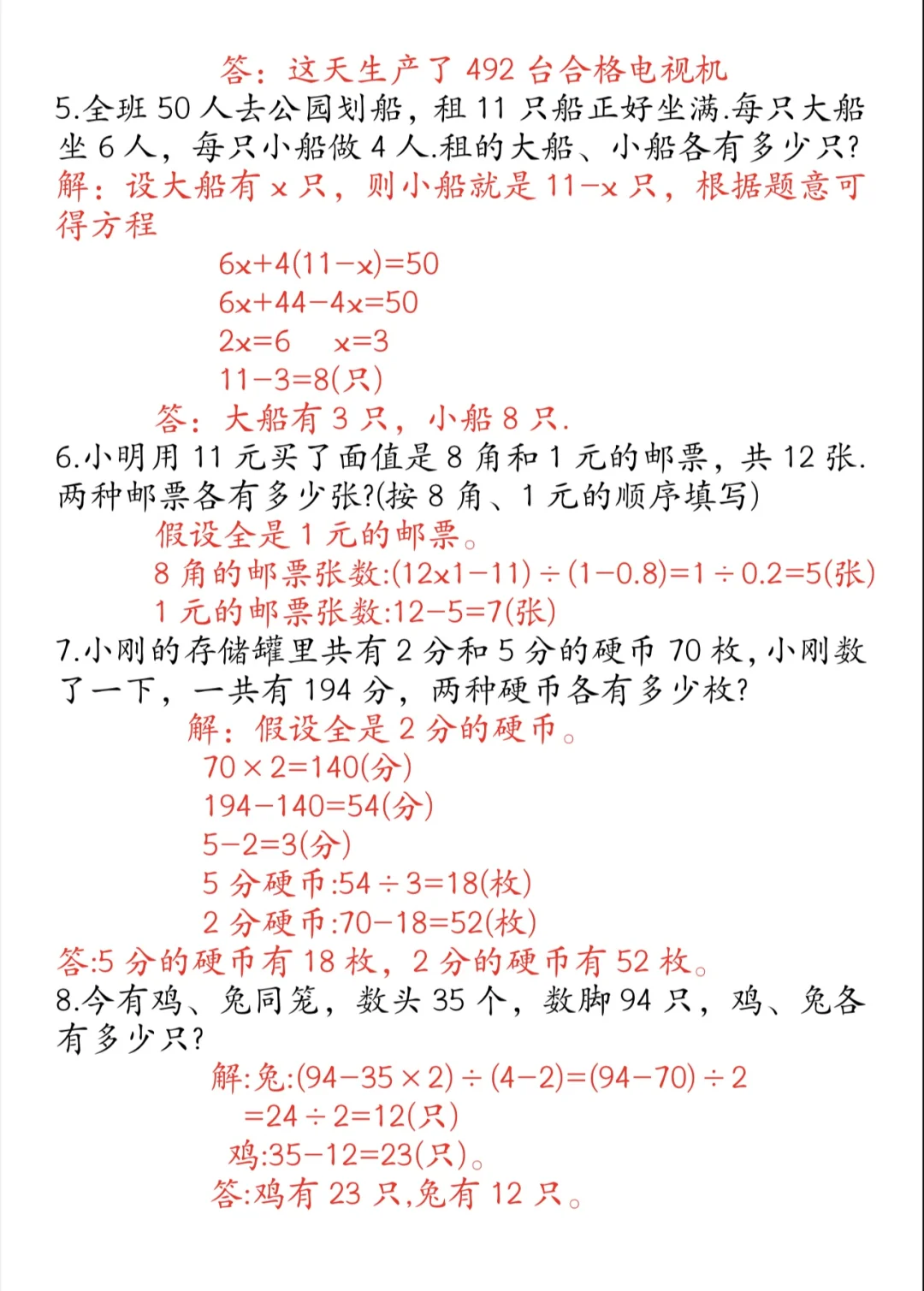 最近很多孩子对鸡兔同笼还是不理解