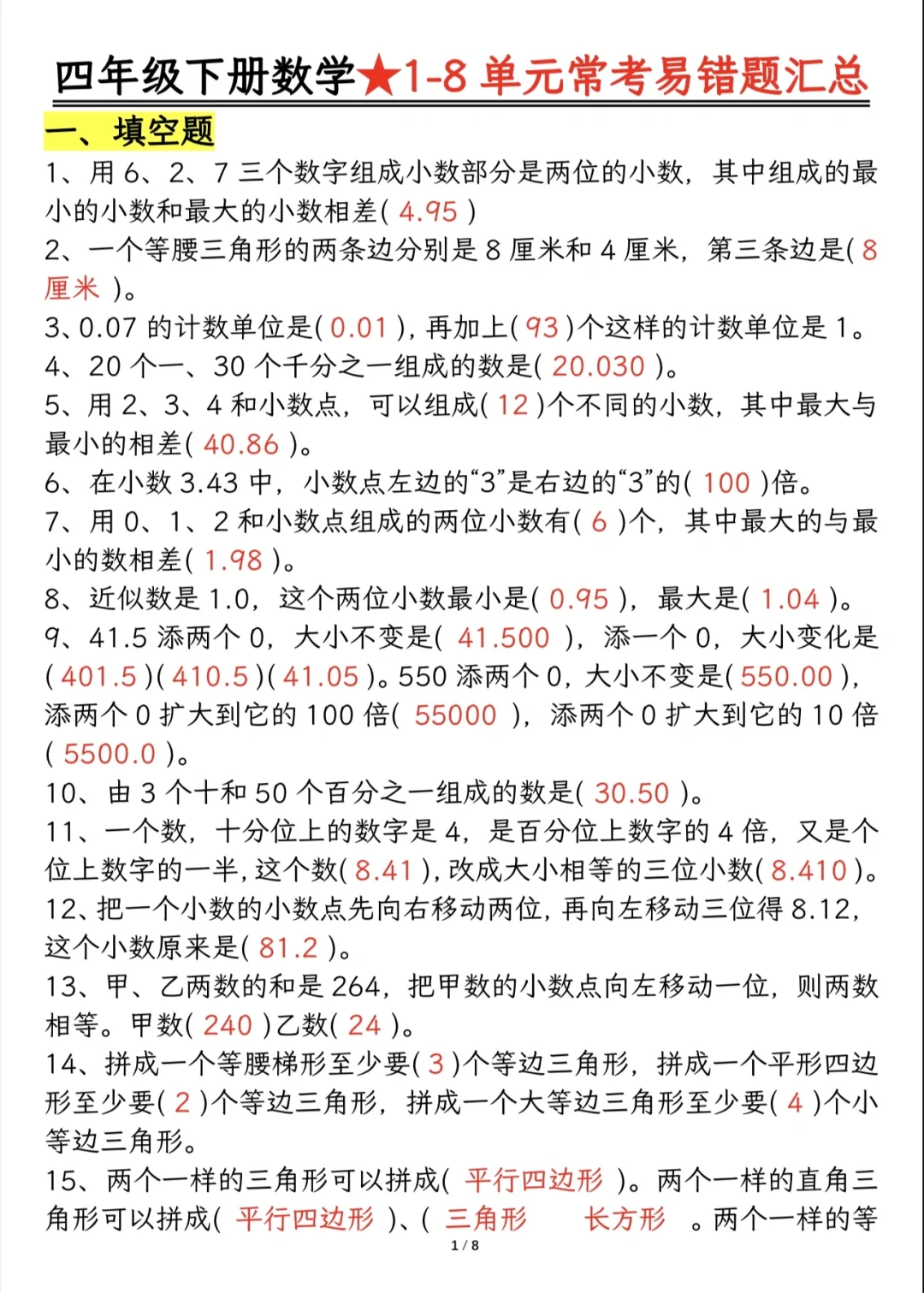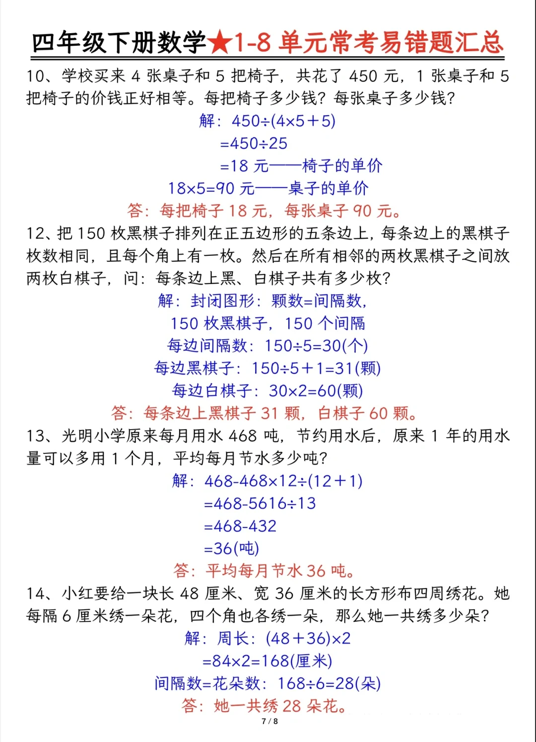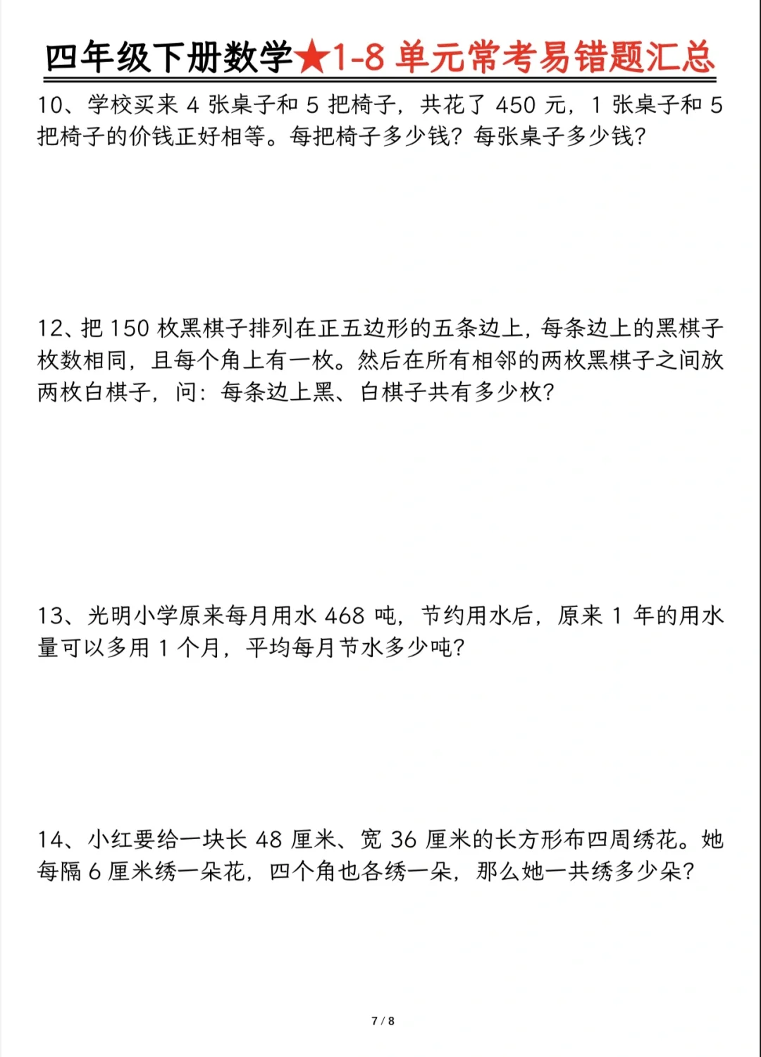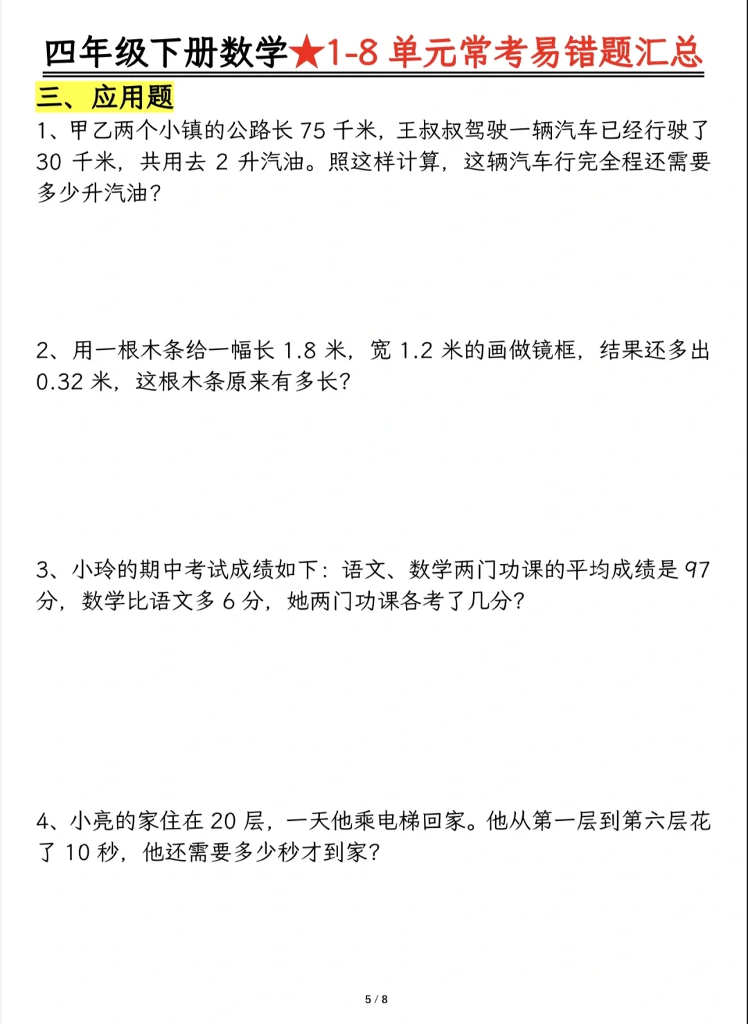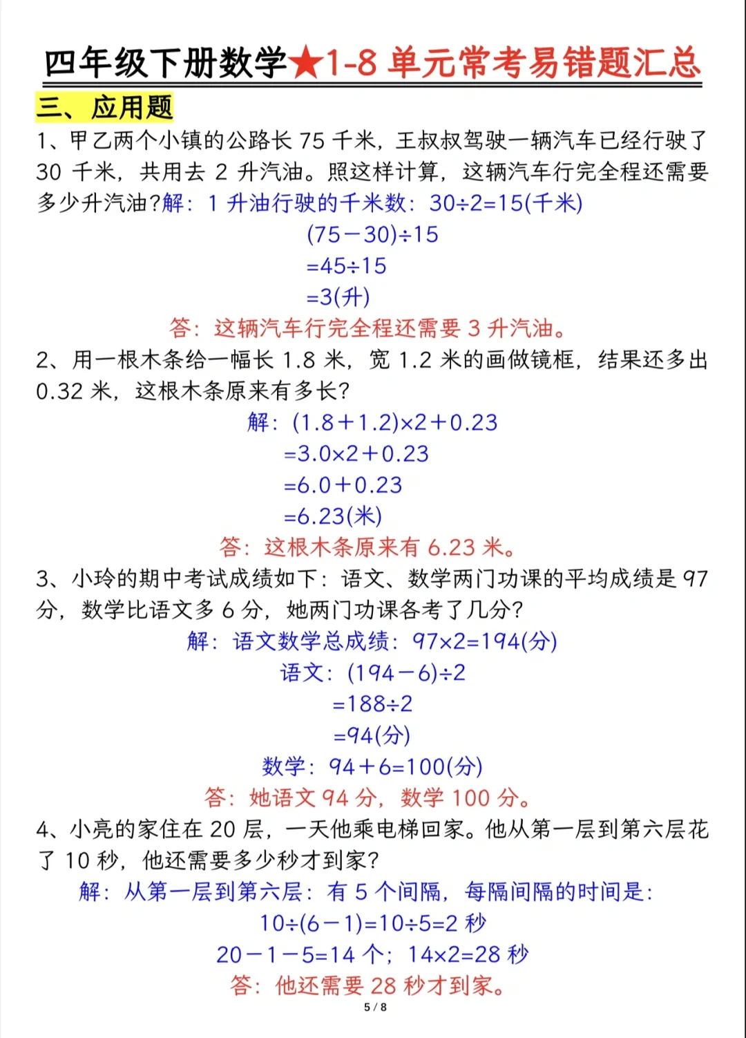 今天分享四下重难点题型及答案分解