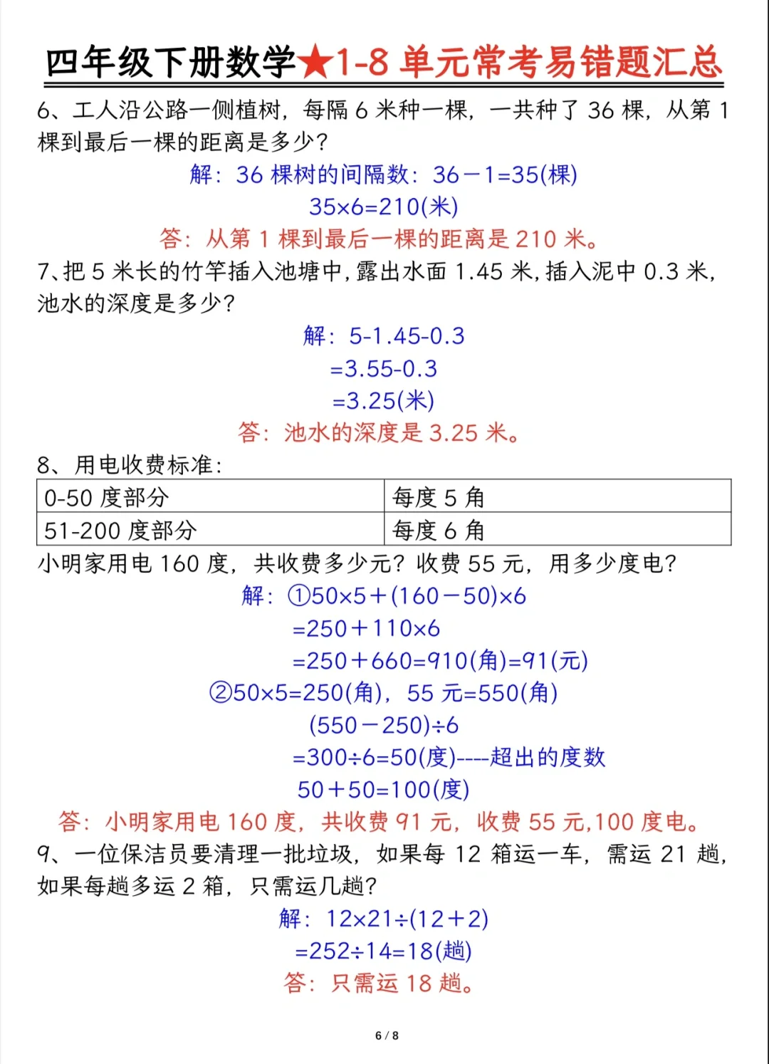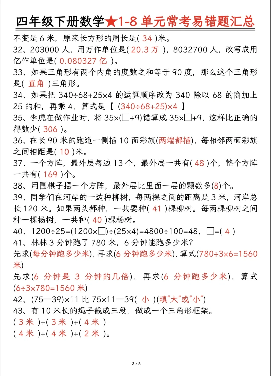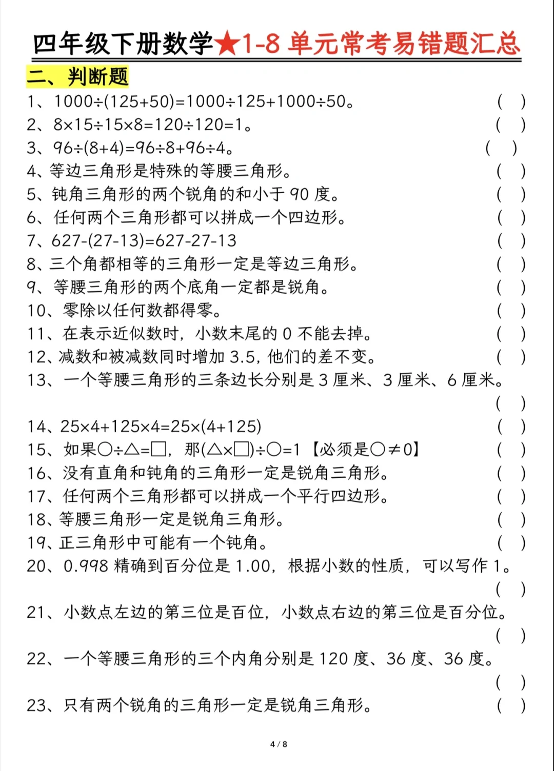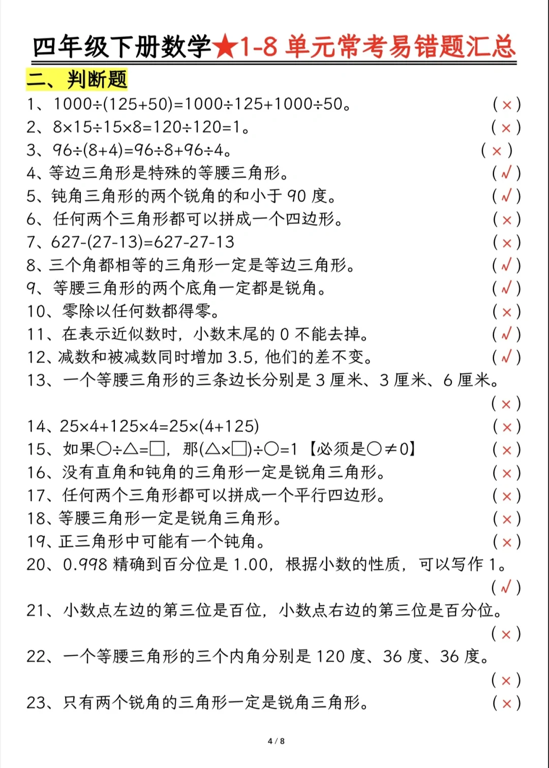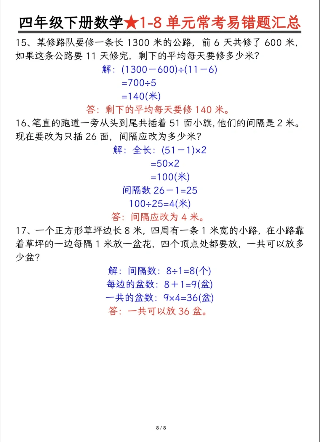 今天分享四下重难点题型及答案分解