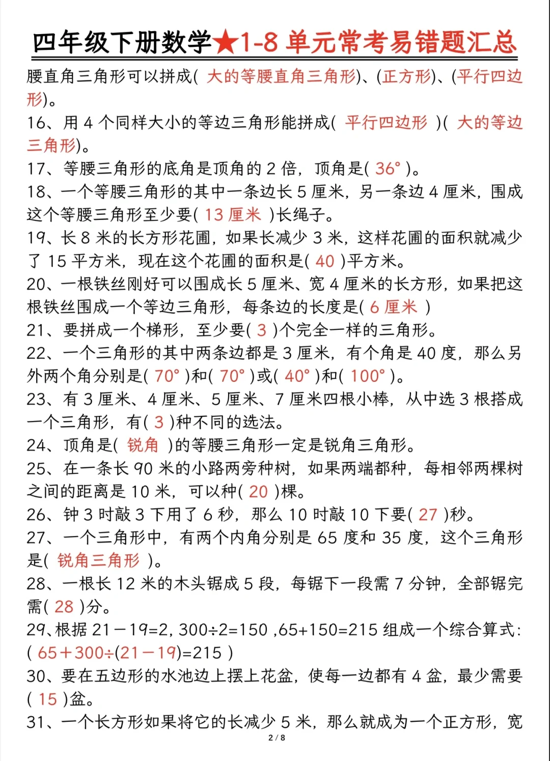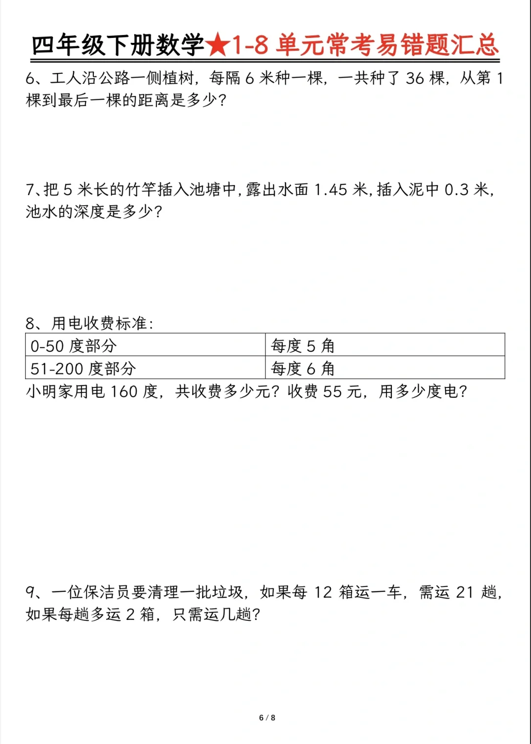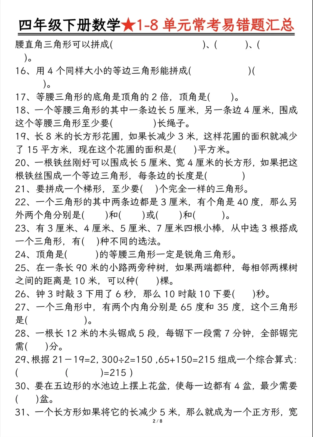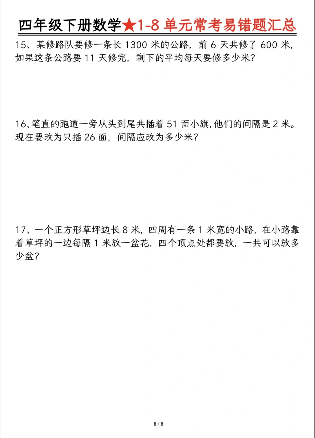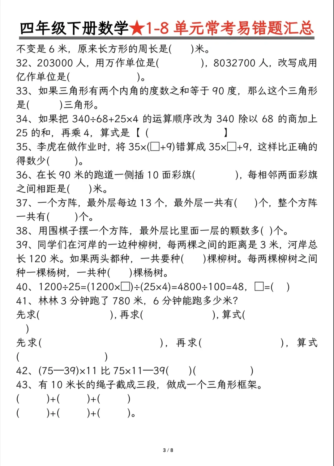 今天分享四下重难点题型及答案分解