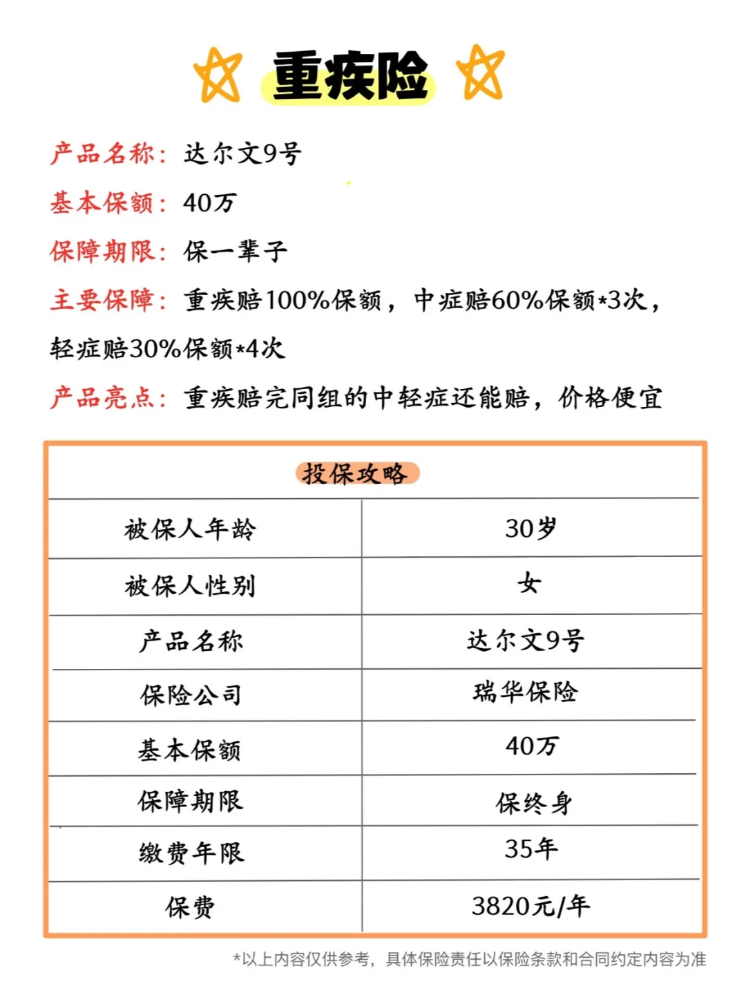 得病给钱的方式,像女性高发的甲状腺癌、乳腺癌等,达到特定条件能赔40万。轻/中/重疾险能赔8次,保183种疾病,覆盖高发病种。