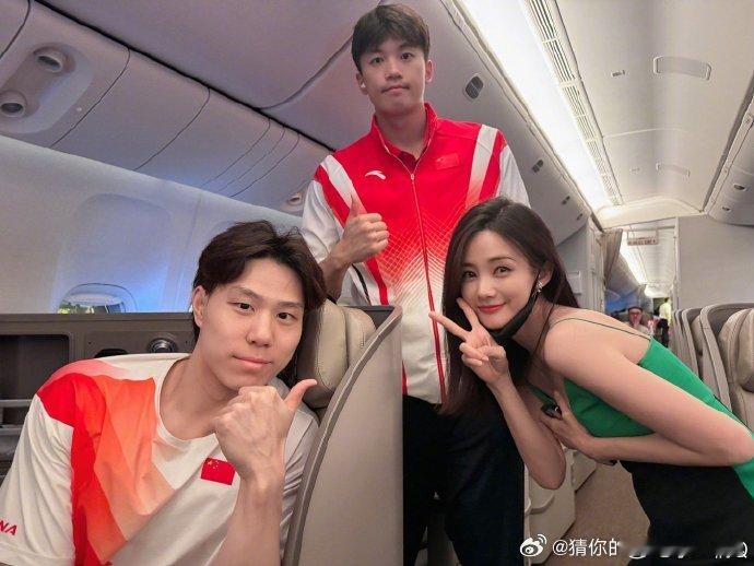 #李一桐巴黎偶遇中国游泳队#李一桐分享的合影充满温暖,与汪顺、覃海洋的相聚让人欣喜。巴黎奥运会已进入倒计时的冲刺阶段,中国游泳队踏上法国的土地,为荣誉而战。飞机上的意外邂逅,是美好的巧合。李一桐为中国健儿巴黎征战的助威,定能助力他们在赛场上乘风破浪!