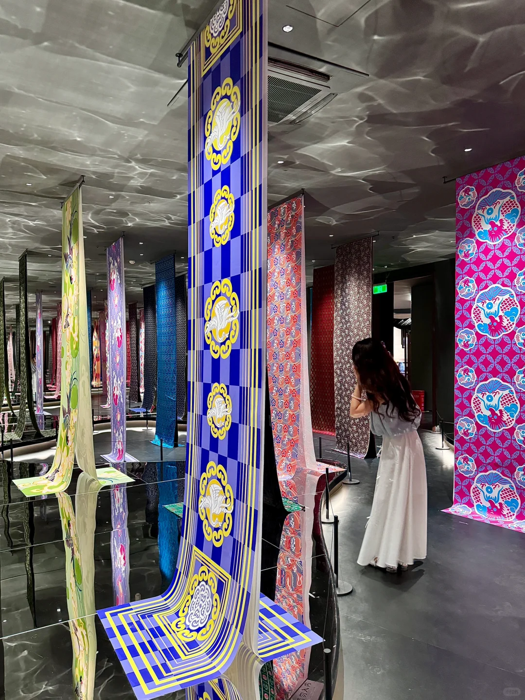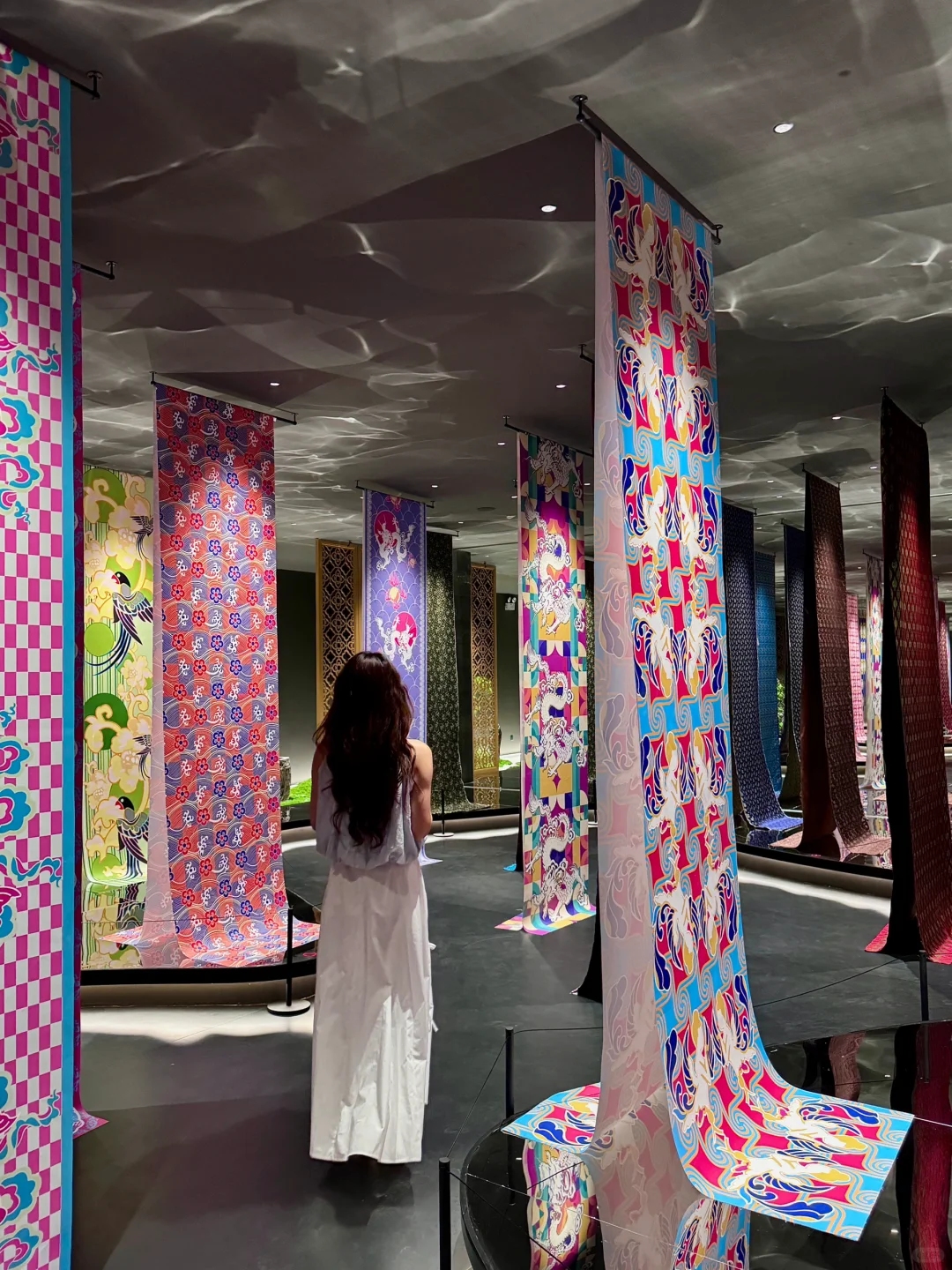 离开成都前一定要来看看!这是属于成都独有的浪漫❤️🔥 . 看展打卡机位📷 1️⃣二楼小窗口,可以俯拍清代织机全景!!镜面效果非常震撼!还可以和世上最大的蜀锦合影 2️⃣蜀锦迷宫区,屋顶波光粼粼和玻璃镜面很有层次感,感受蜀锦无穷尽的美 3️⃣馆藏区,诸多文物静静沉睡着,有别具一格之美 . 看展小惊喜🥰 扭蛋很乖,里面有不同的蜀锦,代表着不同的好运!!文创周边也是独一无二的,很有意义!!!