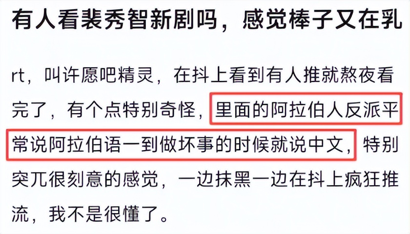 一个韩国人主演,阿拉伯人当反派的新剧,无论从那个角度来看都跟中国扯不上关系,可他们就是偏要加入抹黑中国的剧情。