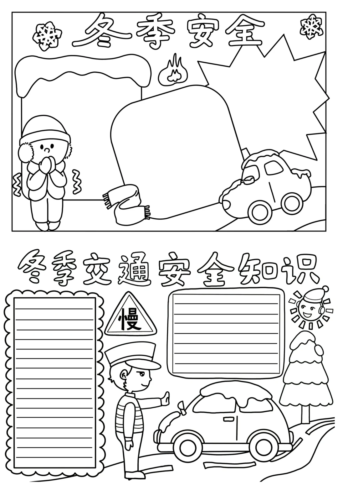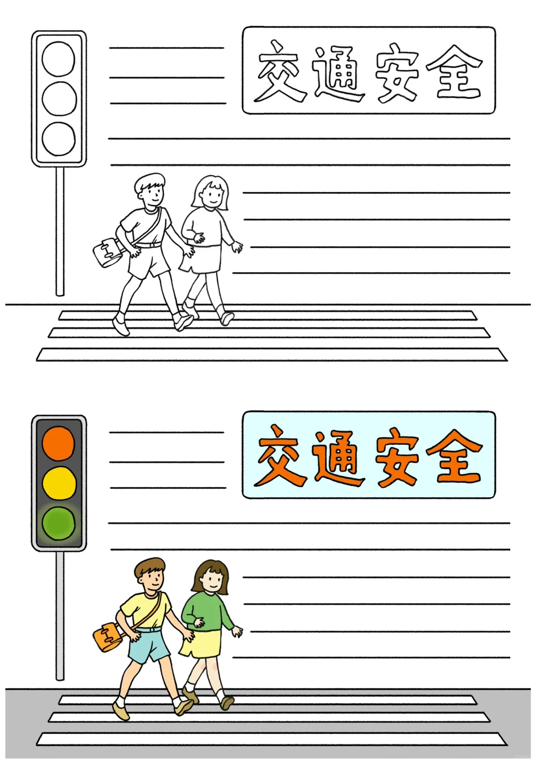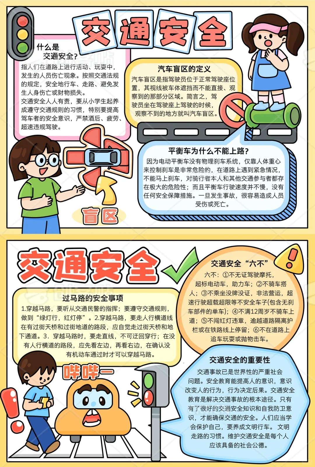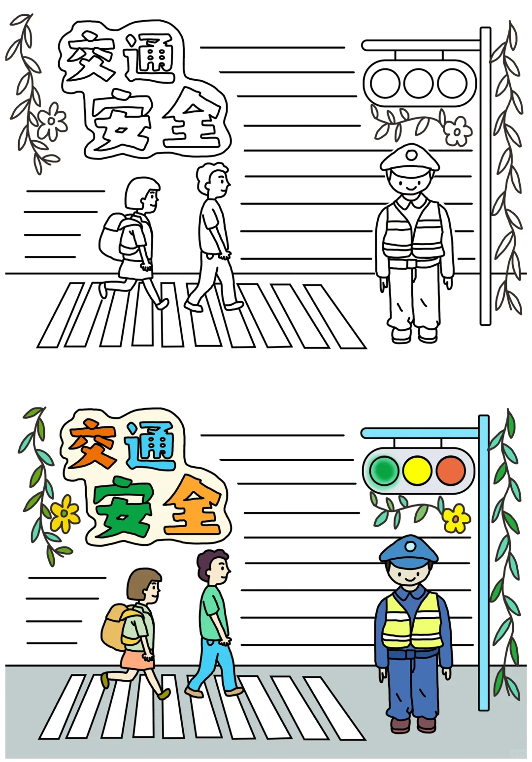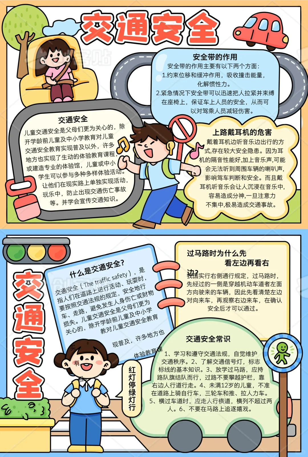 📚“交通安全”系列主题手抄报模版,附线稿。 🎨标题、元素、图片、文案素材适用于主题画、手抄报、黑板报、手账,及相关的美术课程。 📚模版图片来源于