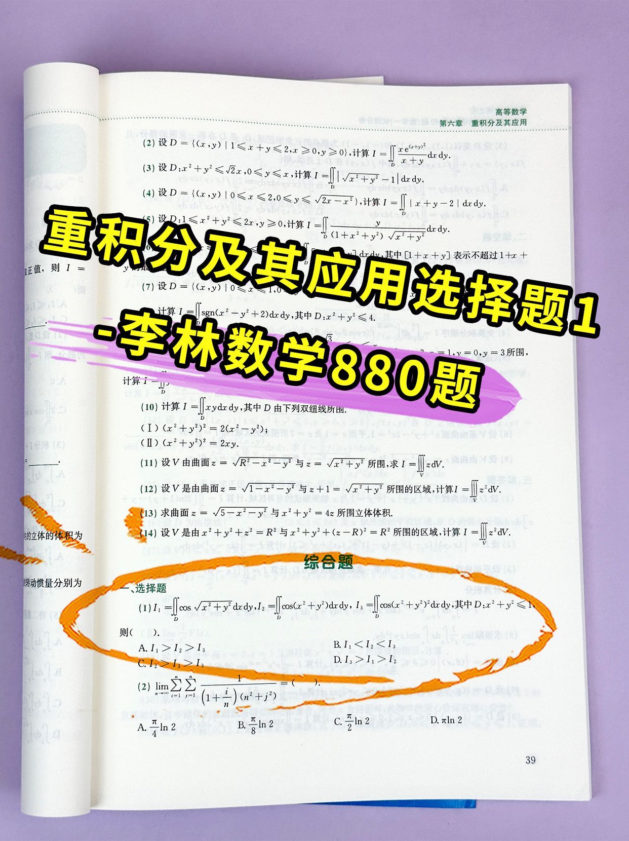 2026李林考研数学精讲精练880题数学一--------高等数学--------第六章重积分及其应用--------综合题--------选择题1