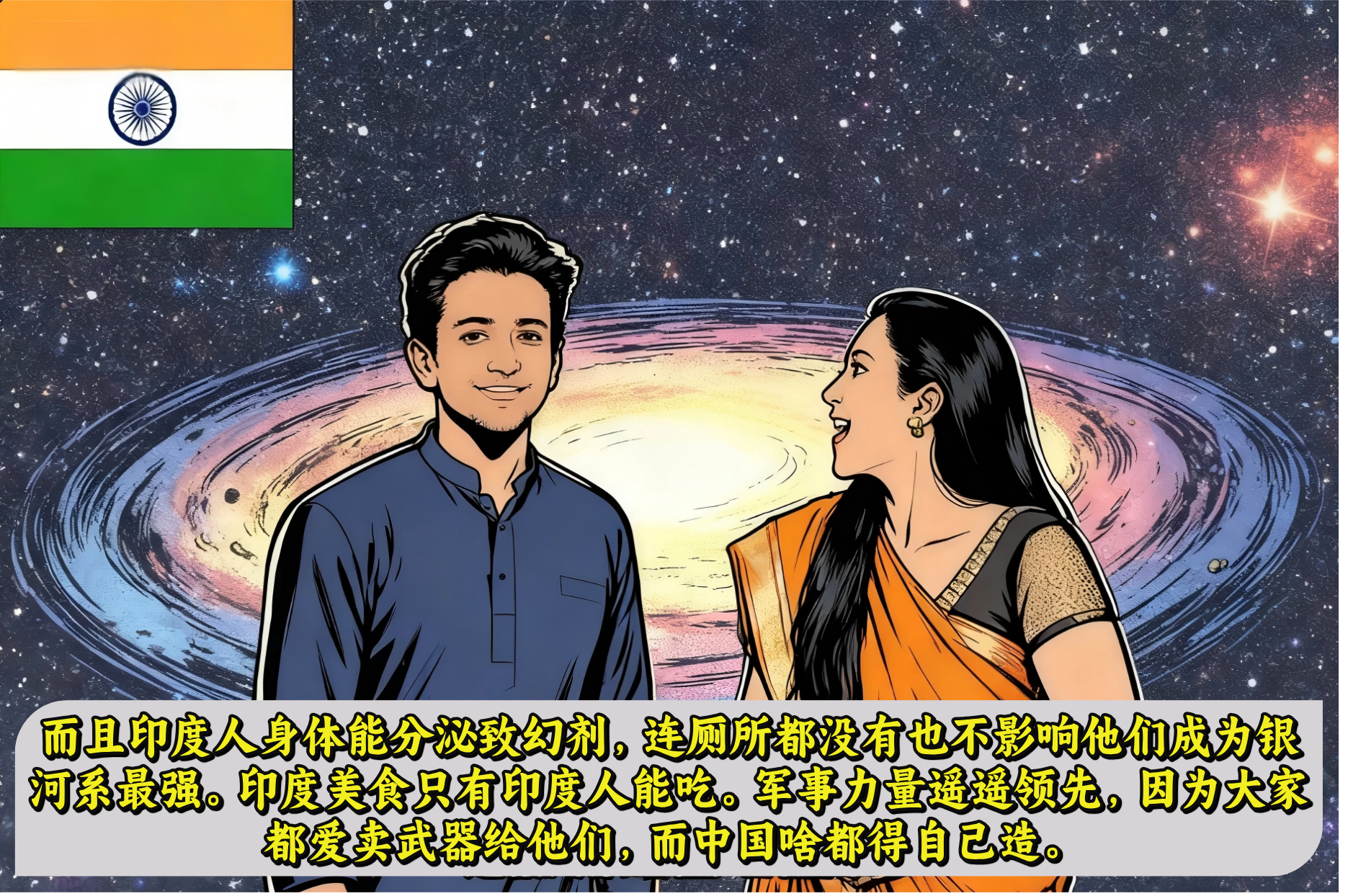 为啥呢,因为印度人精神层面无敌,身体能分泌致幻剂,连厕所都没有也不影响他们成为银河系最强。