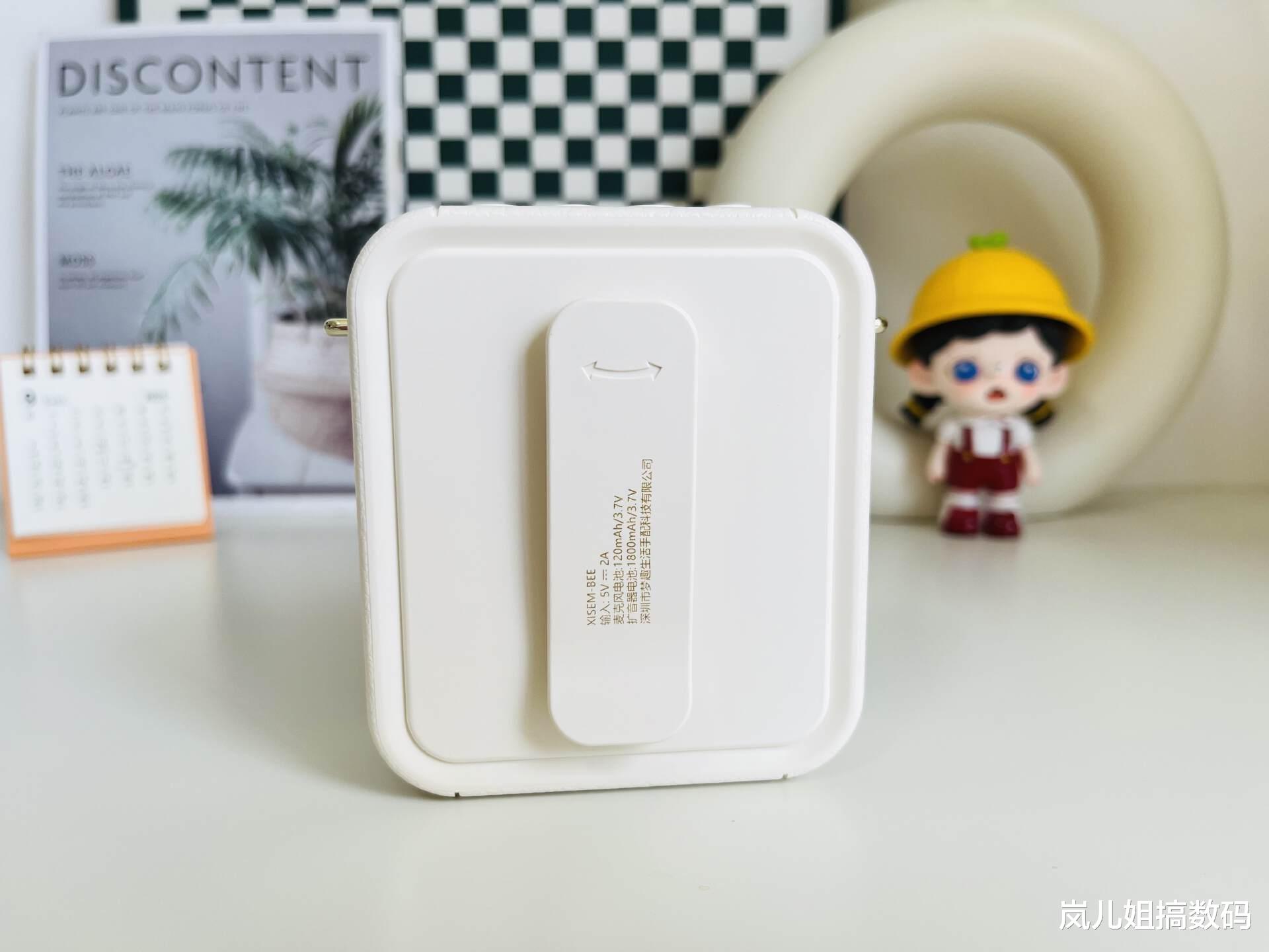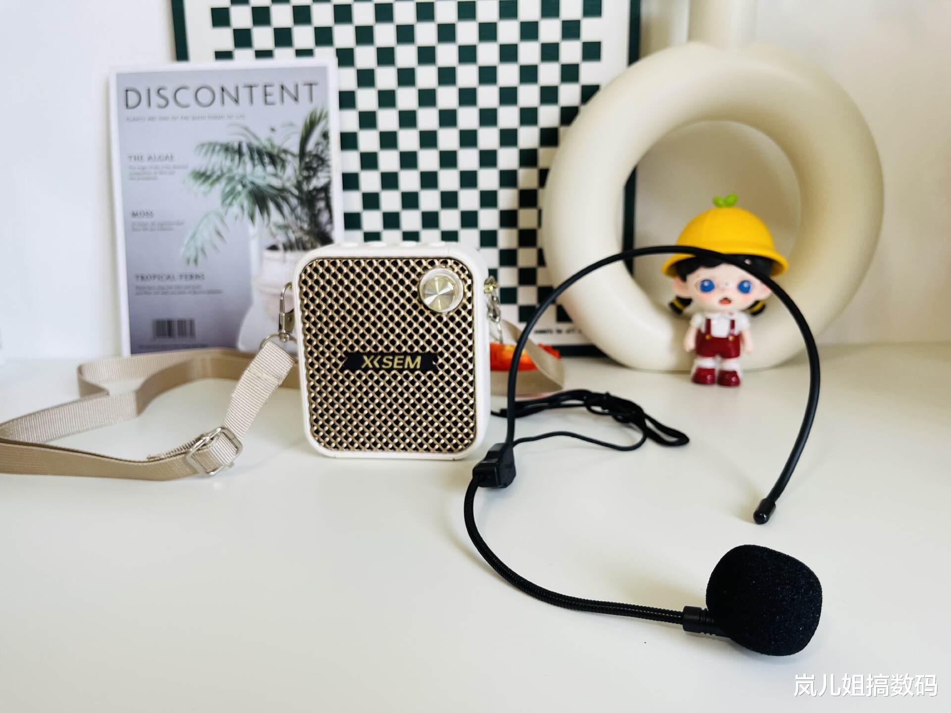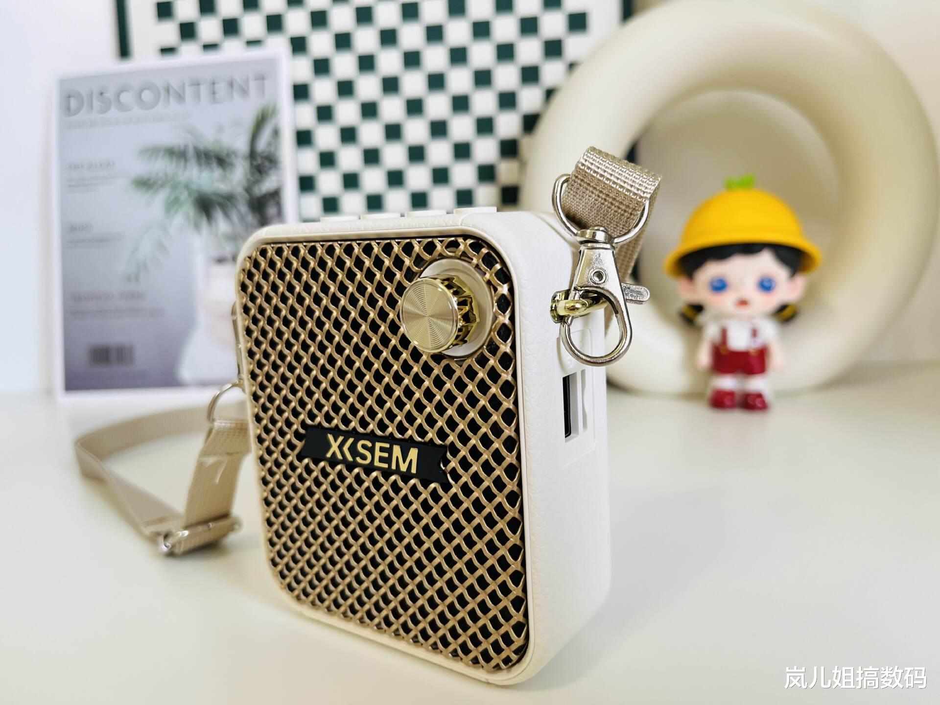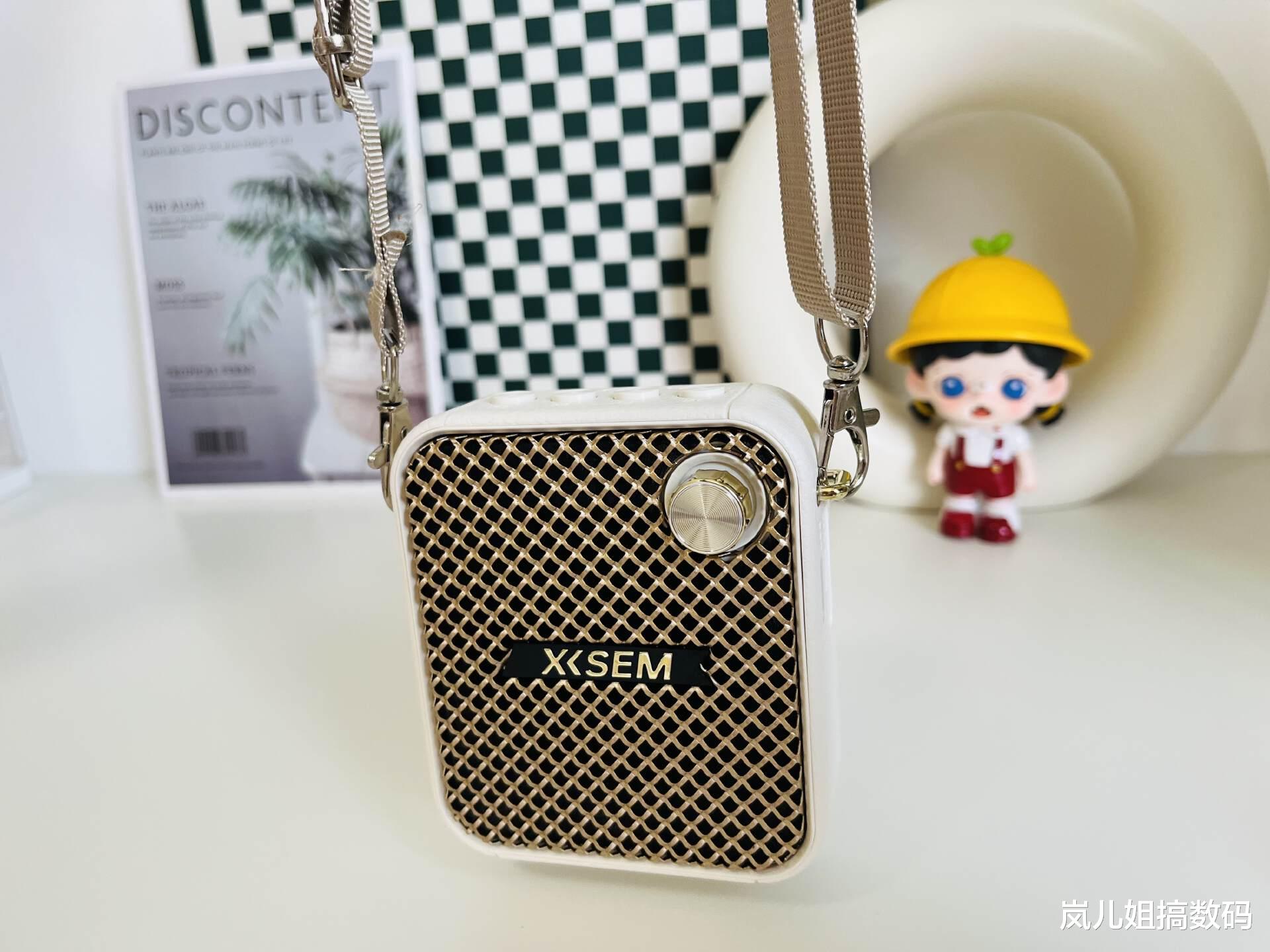 西圣Bee小蜜蜂扩音器机身小巧精致,卡其配色简约又时尚,机身整个线条十分流畅,像个复古小收音机,尺寸大小为82*37*95mm,单机重约165g,不管是拿在手里还是别在裤腰、背着,都很轻巧便携。