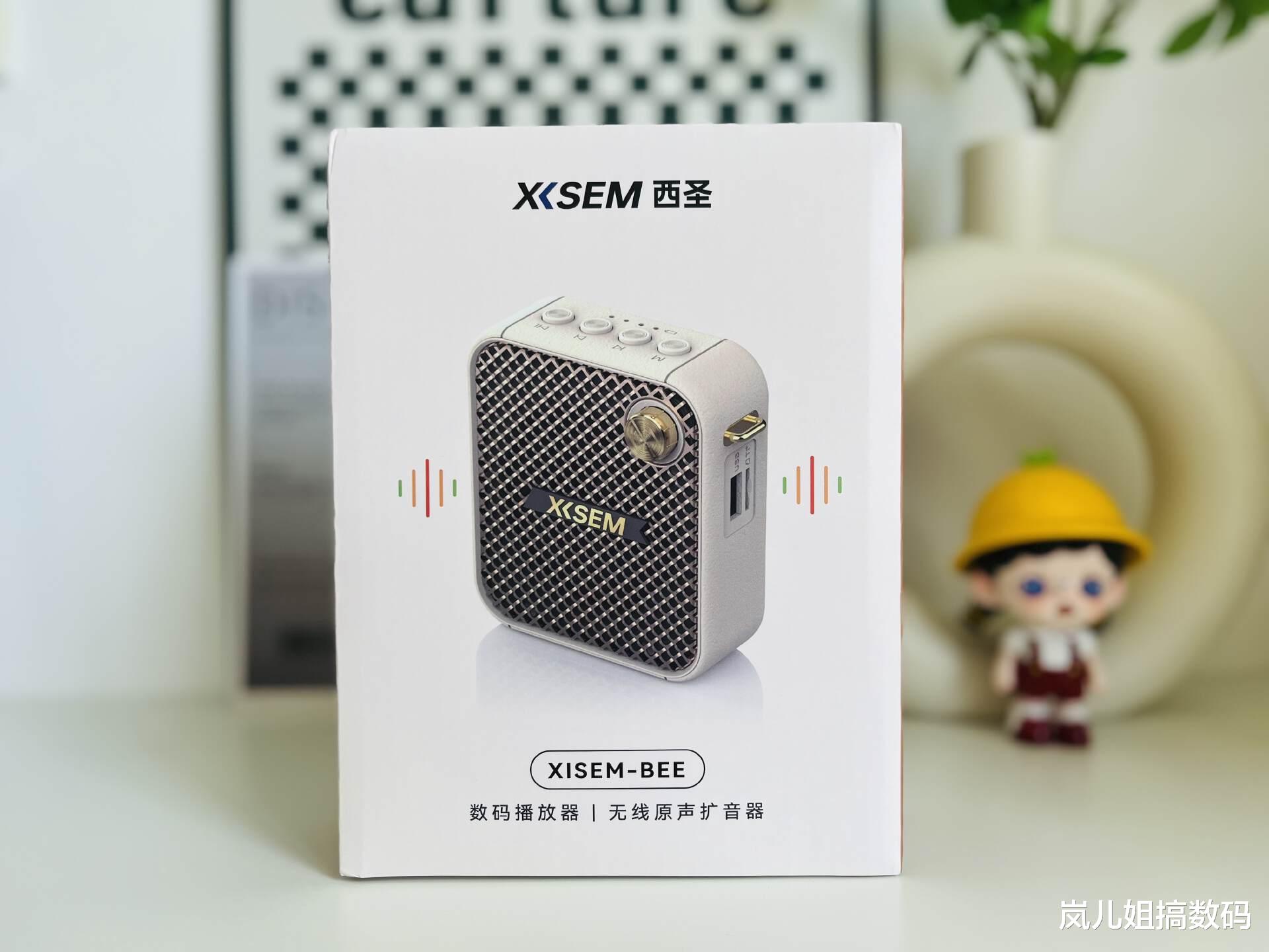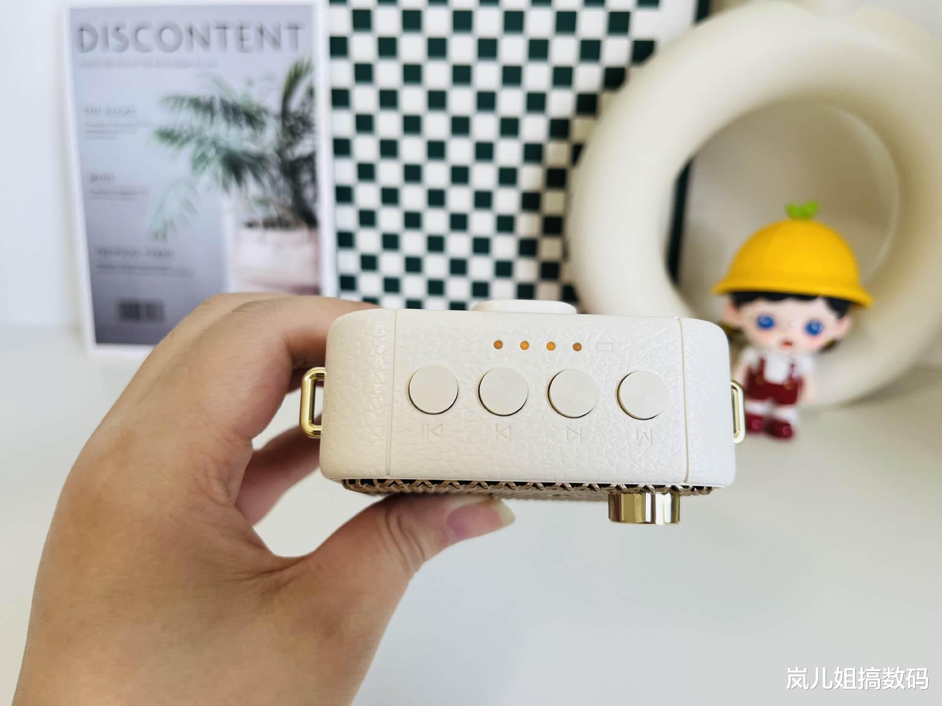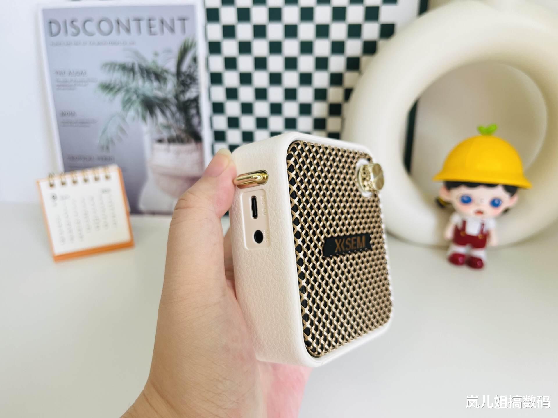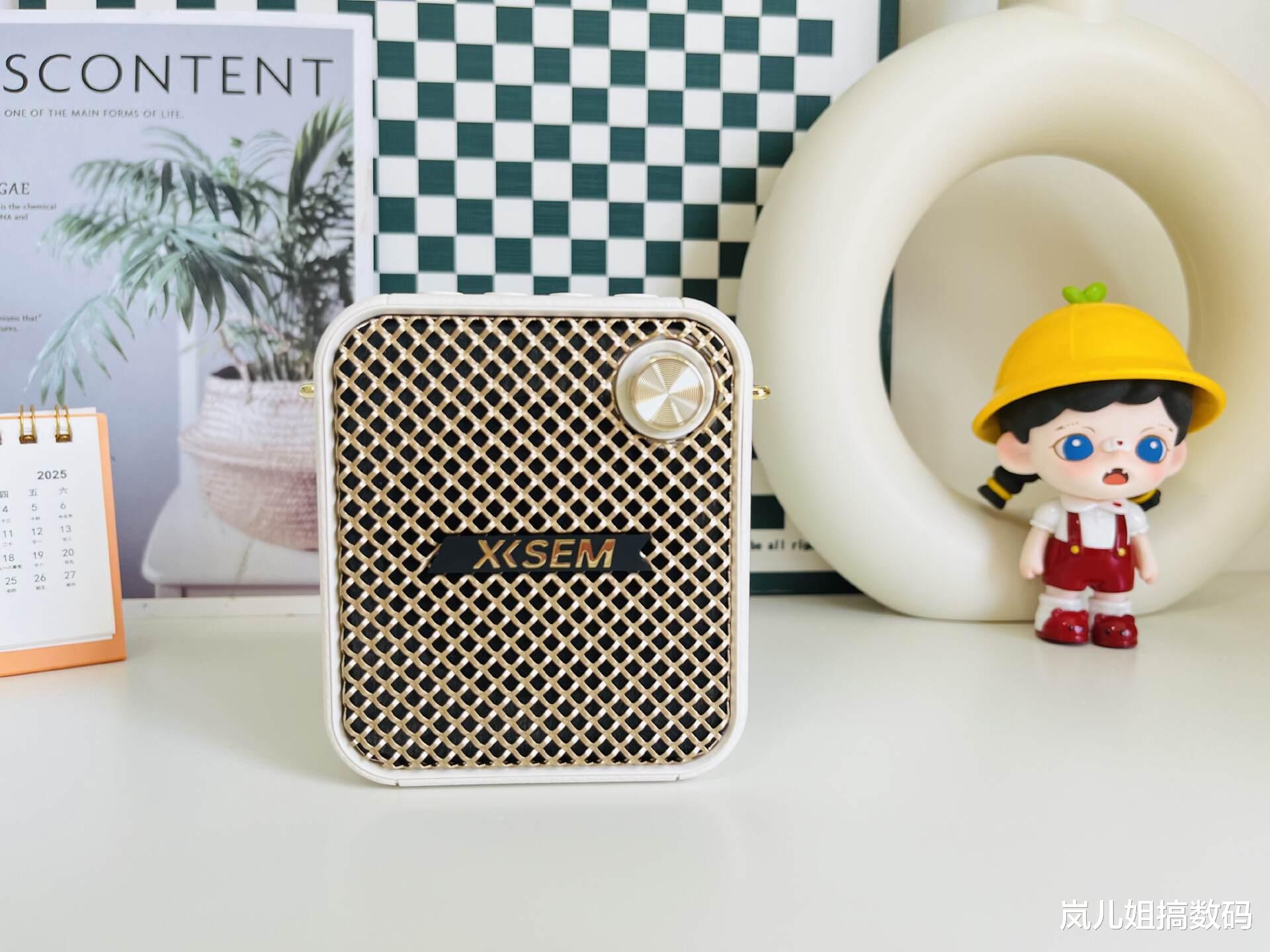 西圣Bee小蜜蜂扩音器机身小巧精致,卡其配色简约又时尚,机身整个线条十分流畅,像个复古小收音机,尺寸大小为82*37*95mm,单机重约165g,不管是拿在手里还是别在裤腰、背着,都很轻巧便携。