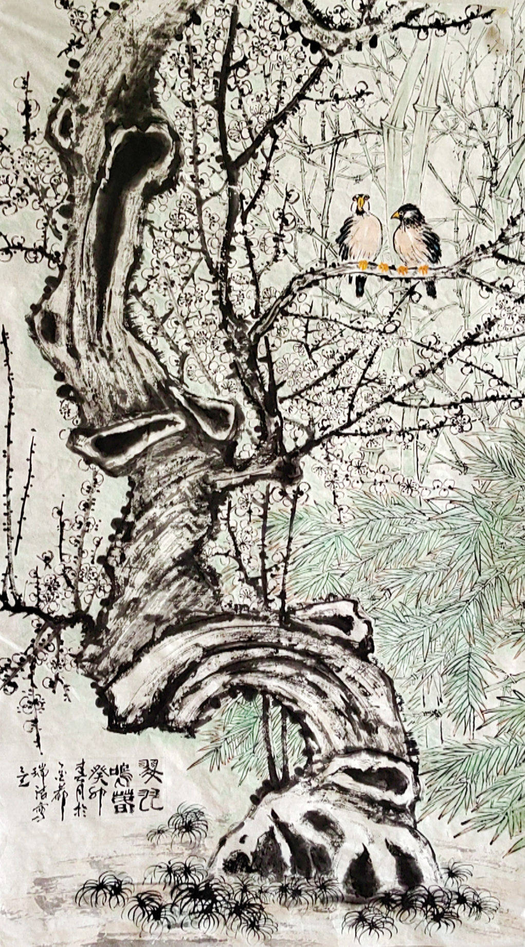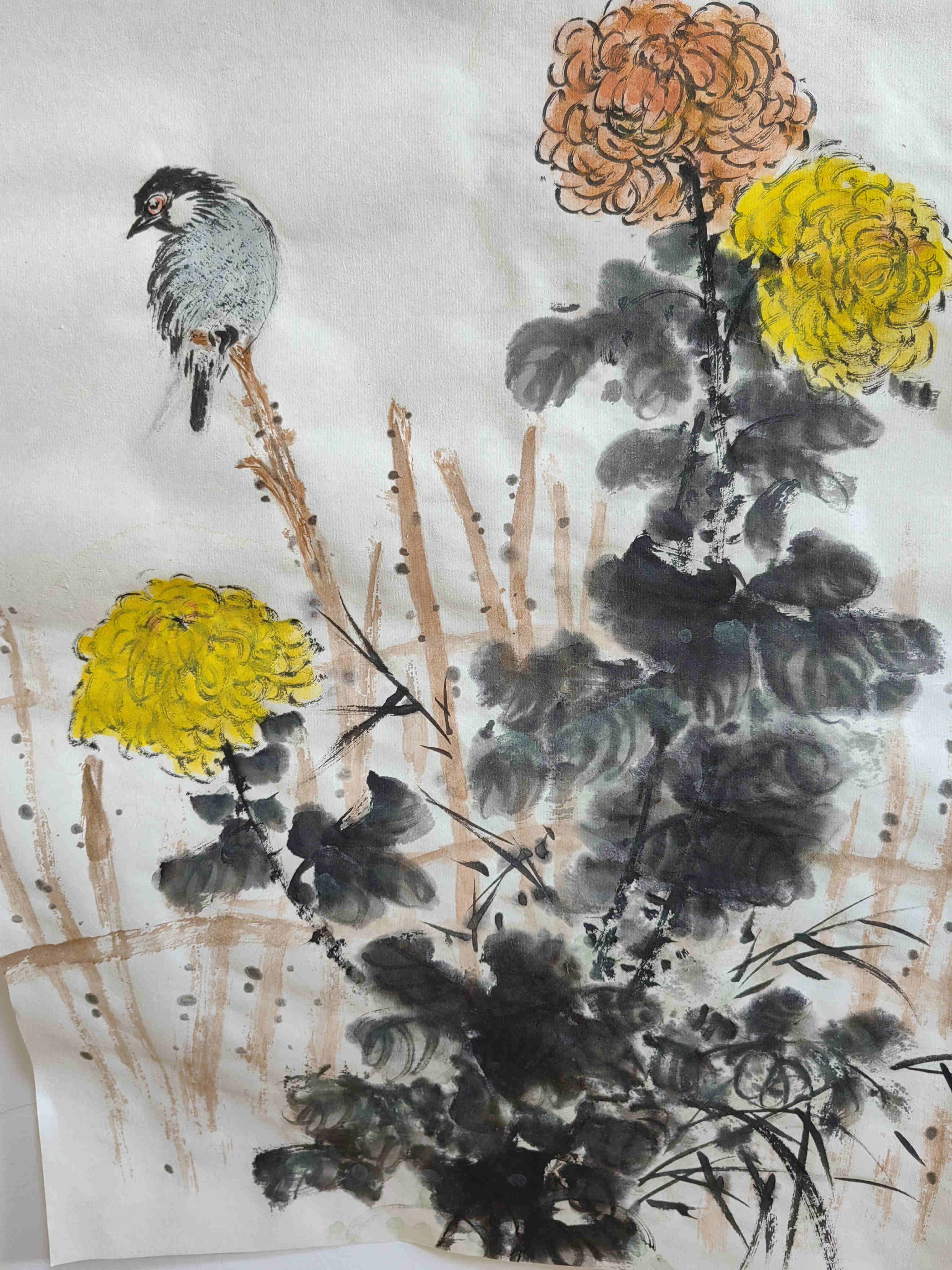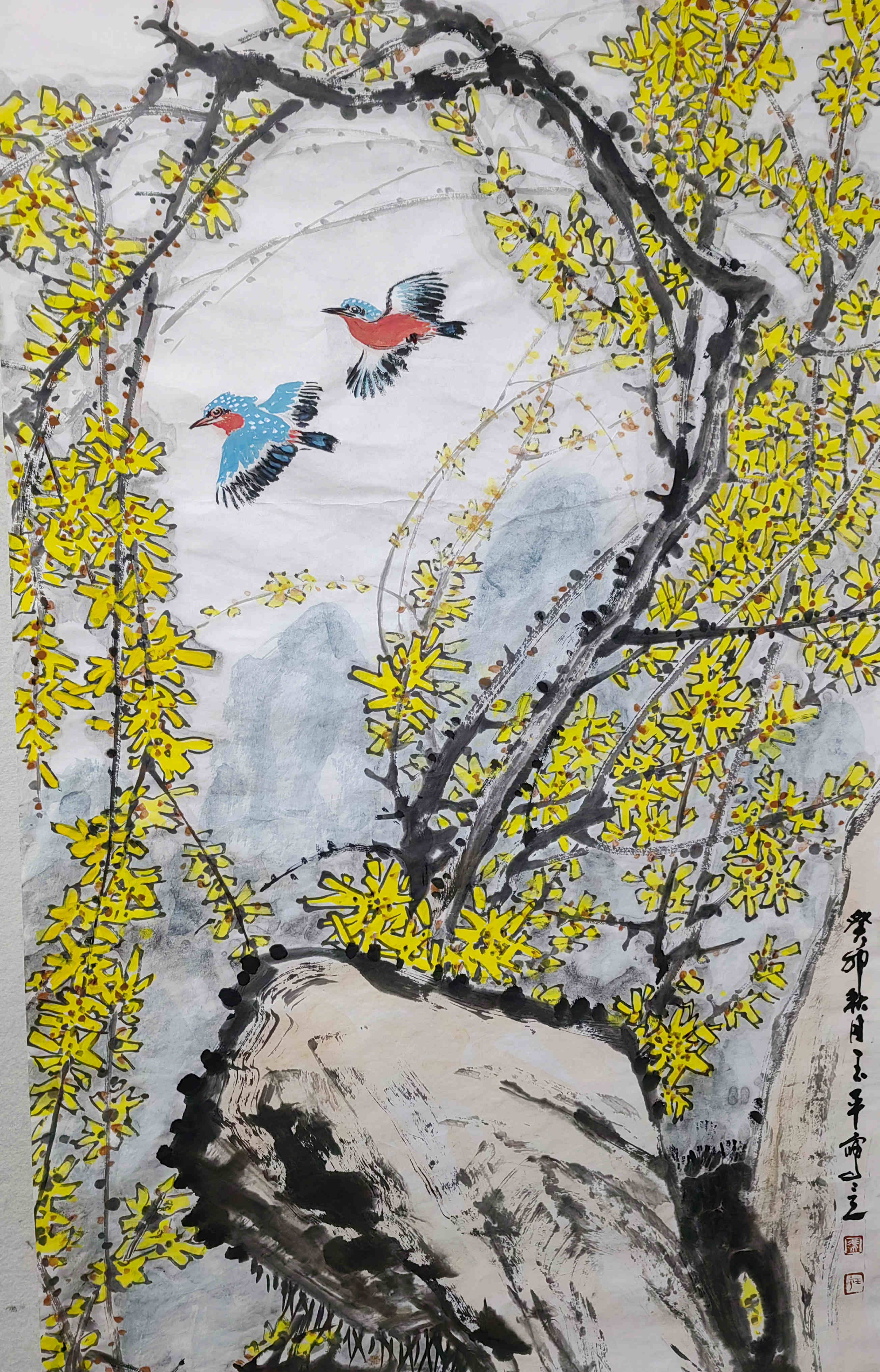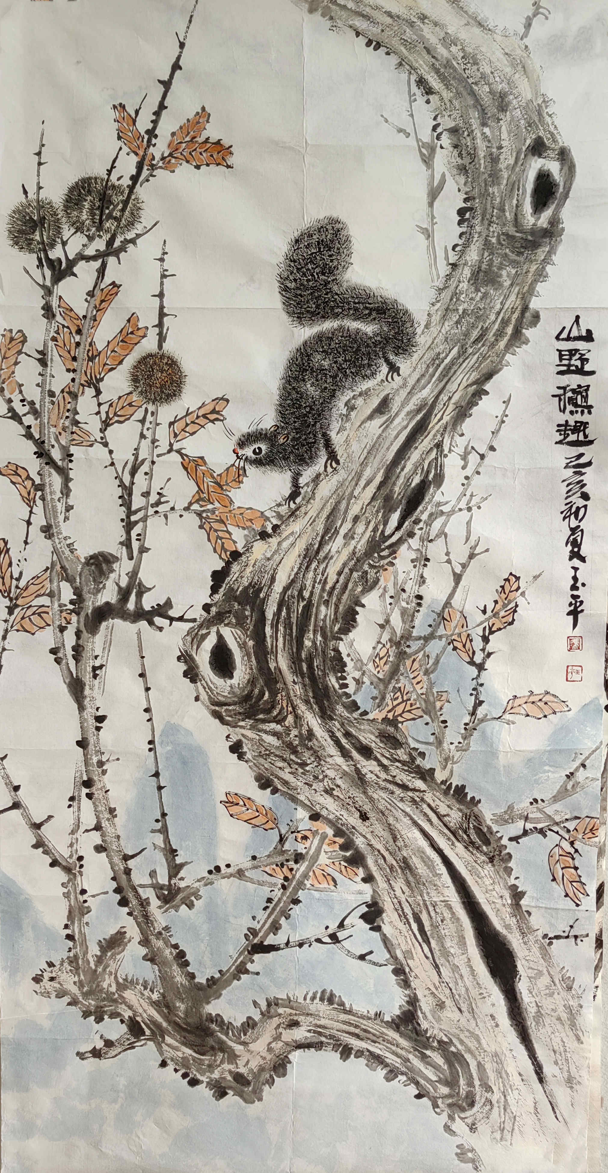 2018年3月,国画《秋林一声啼》入选孙其峰先生百岁诞辰师生书画展。