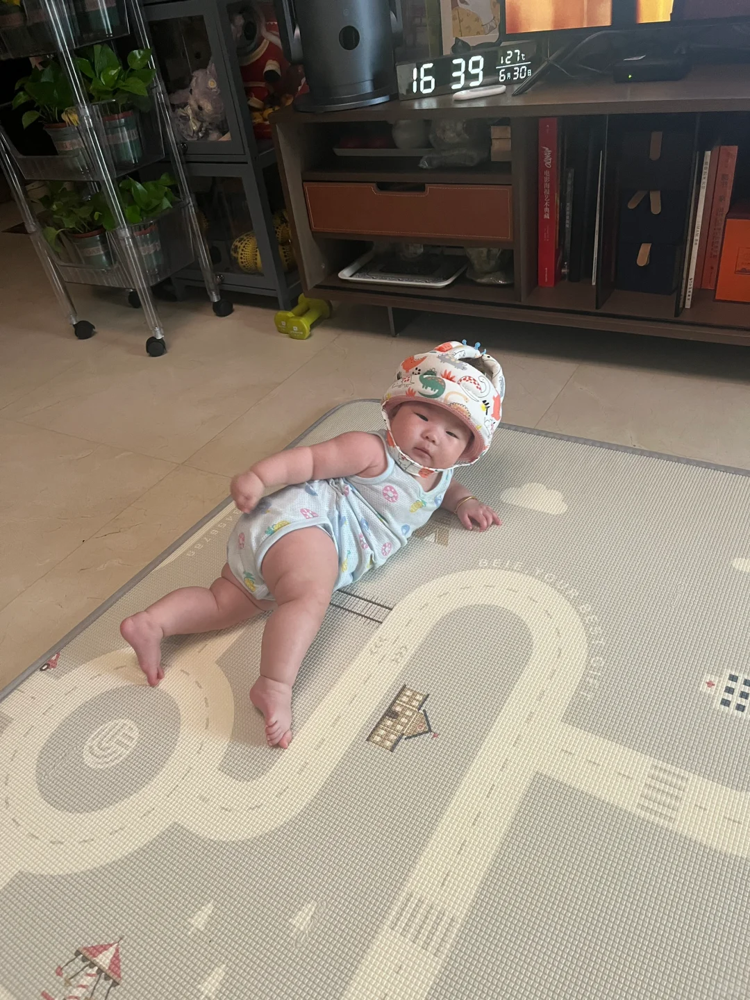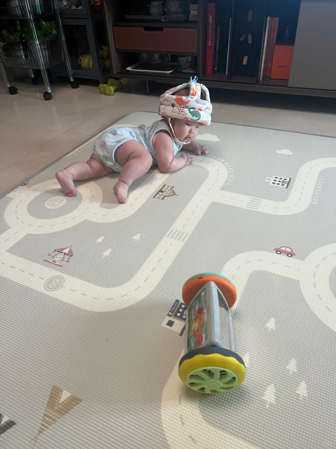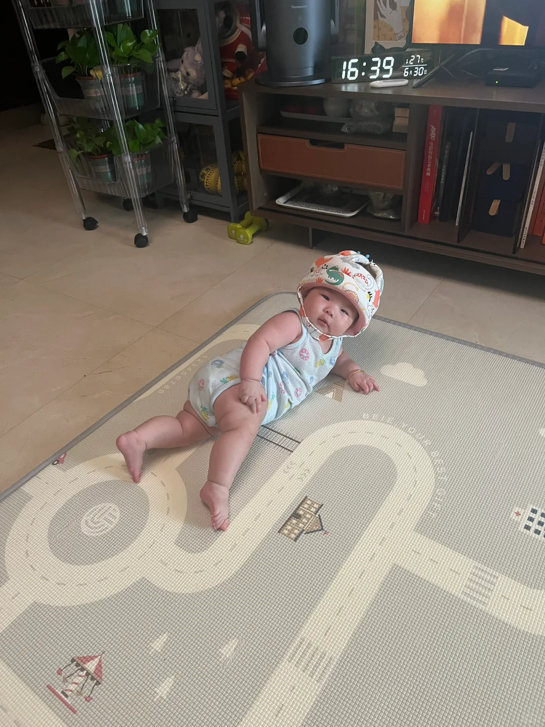 老公刷给宝宝买的防撞头盔,戴上有那么一点子搞笑😂