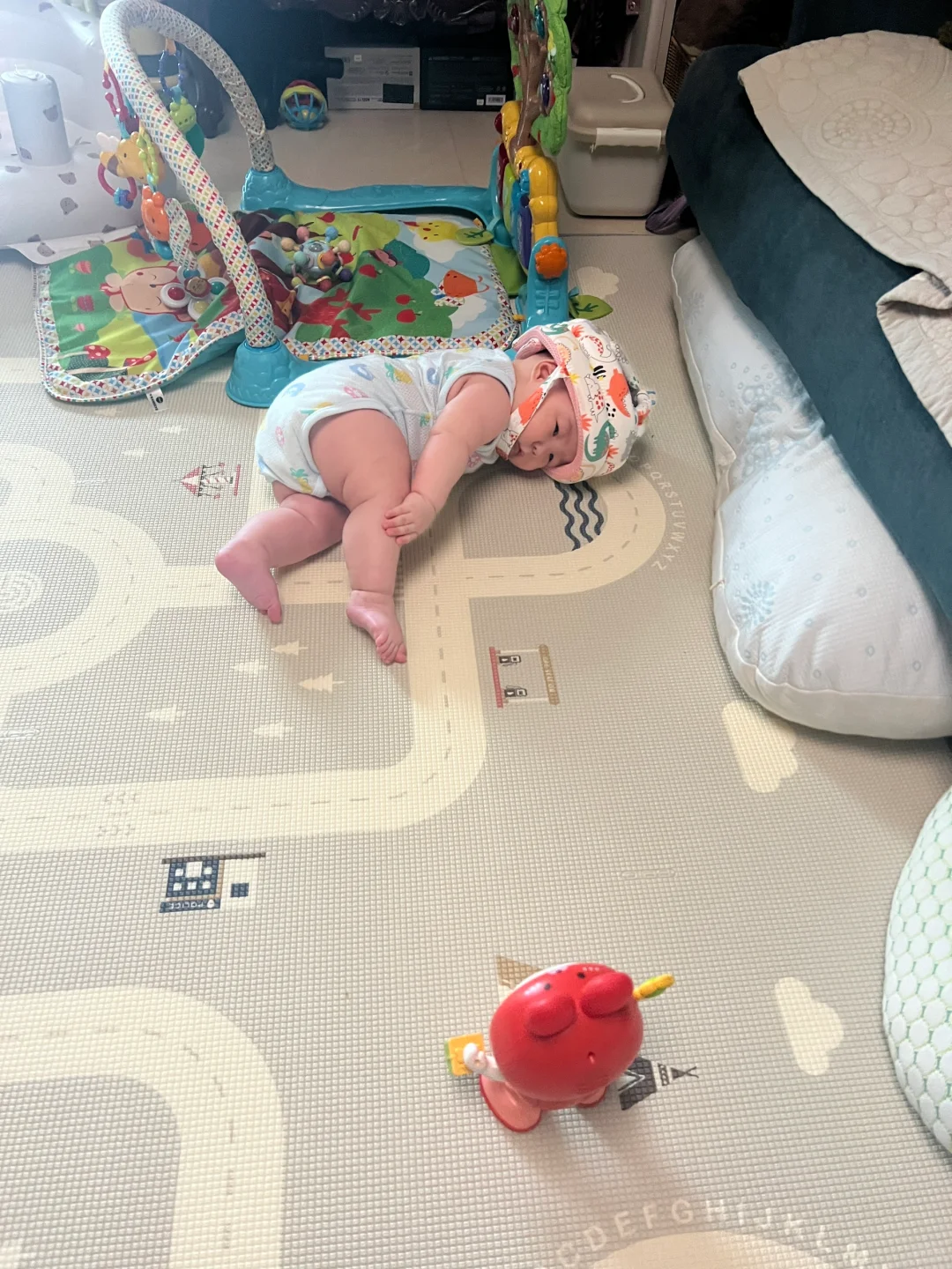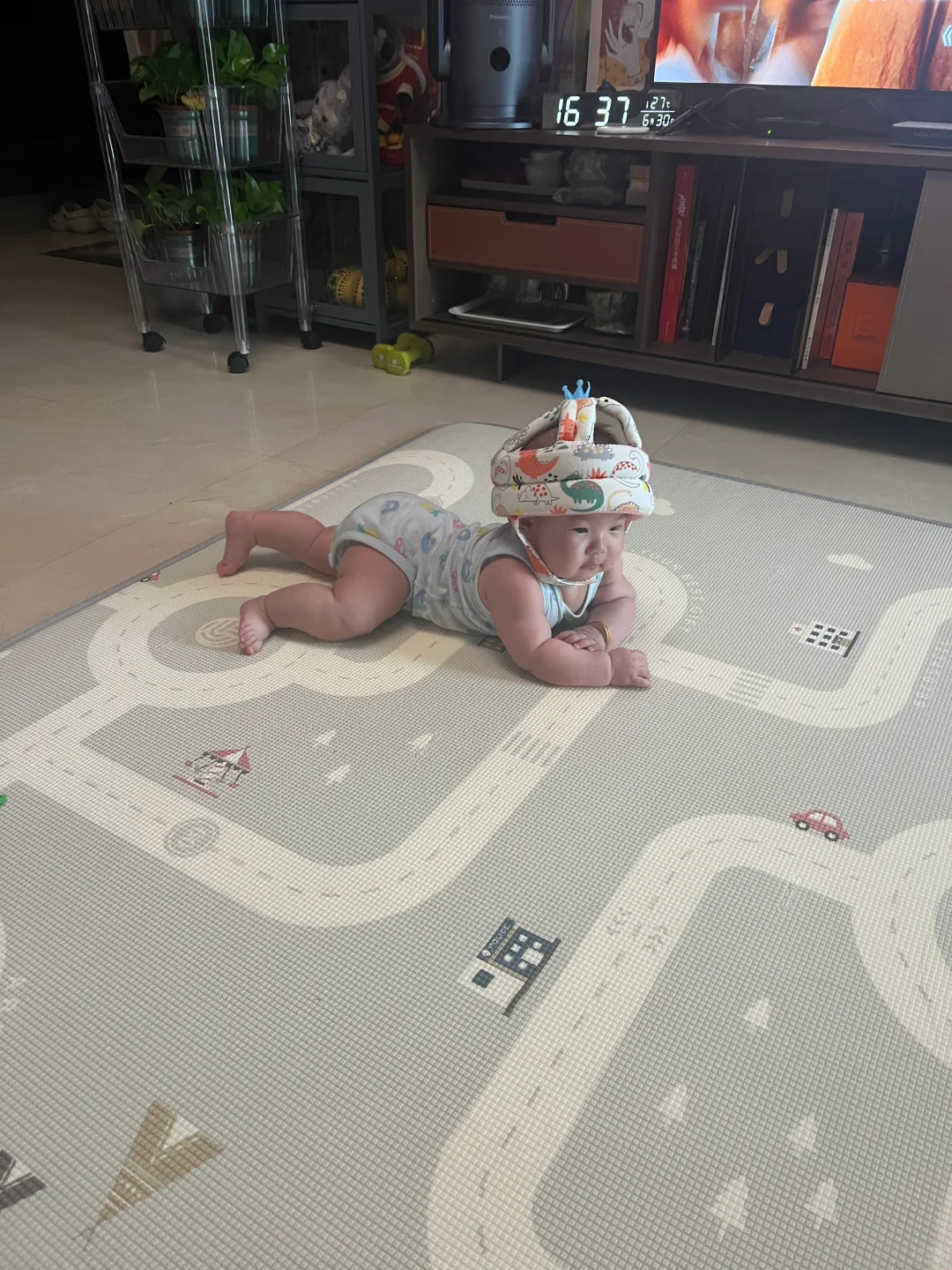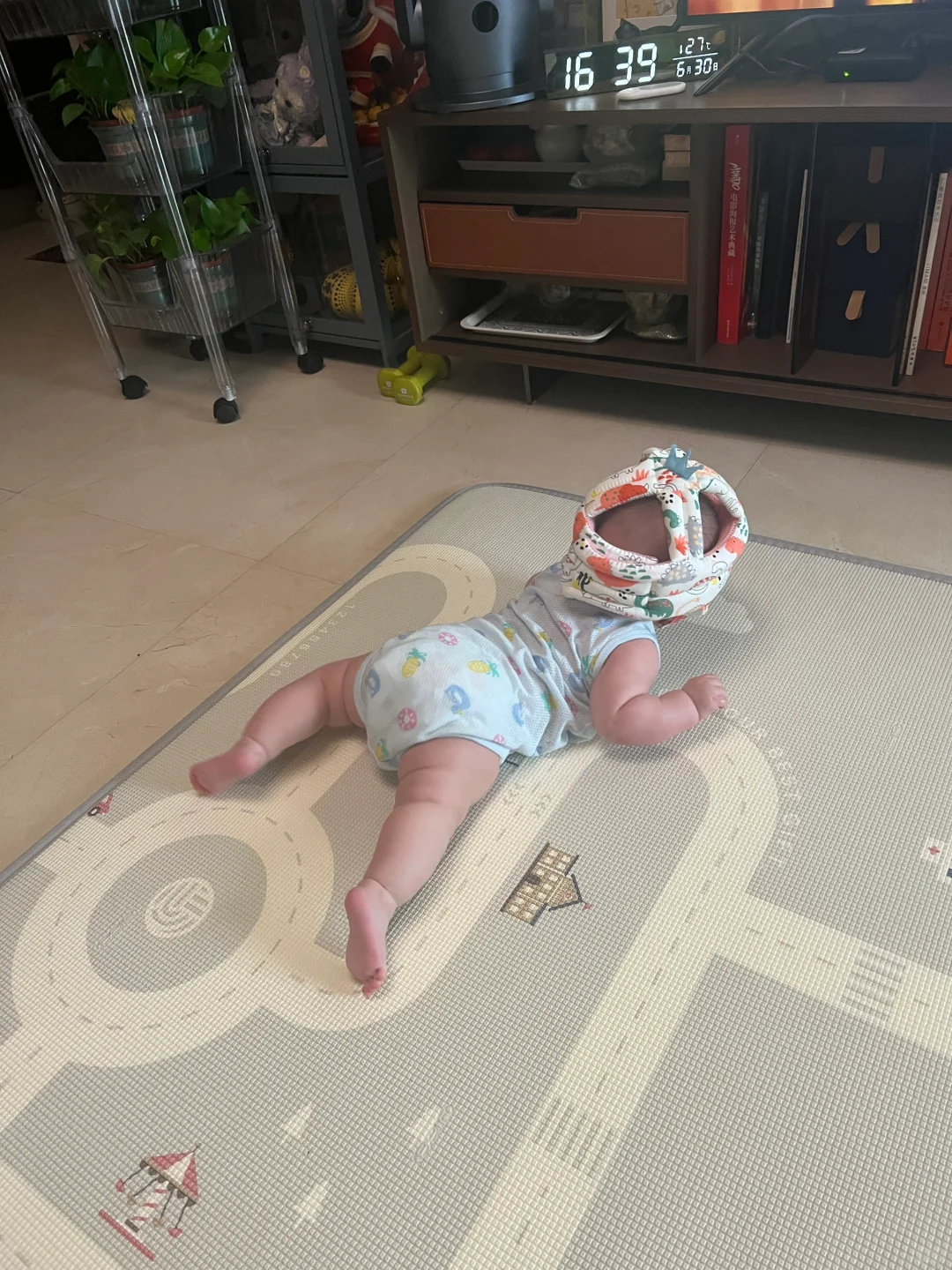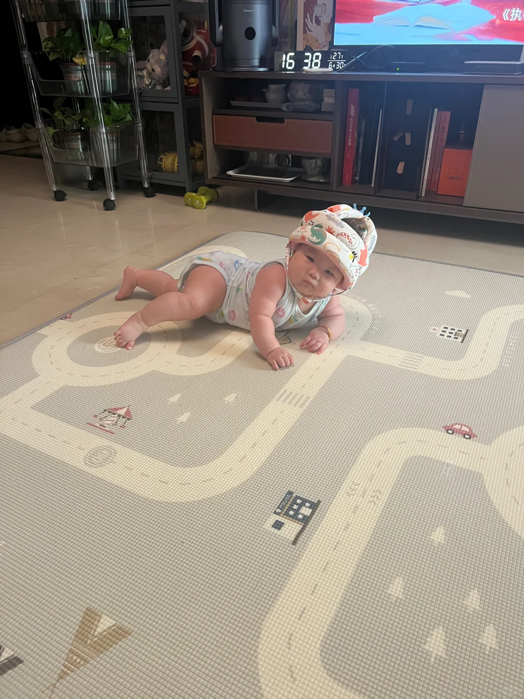 老公刷给宝宝买的防撞头盔,戴上有那么一点子搞笑😂