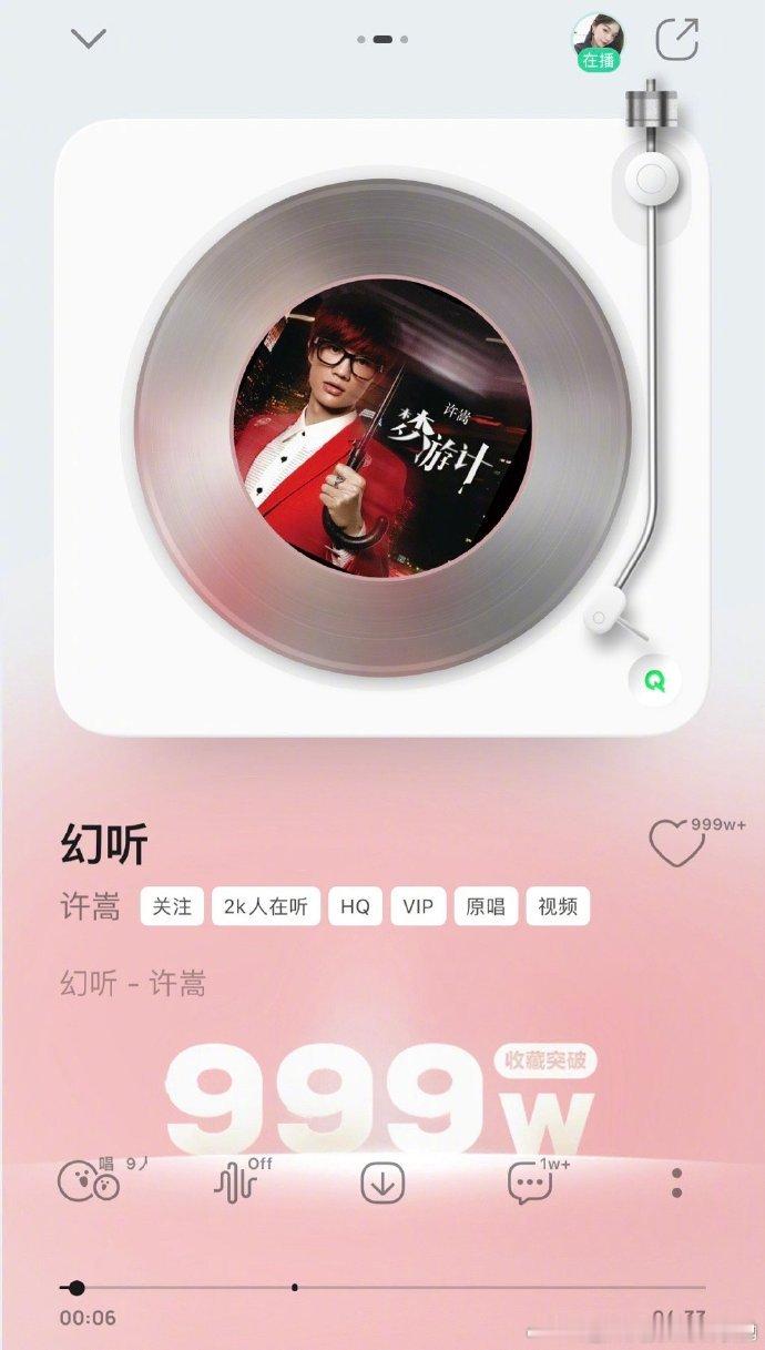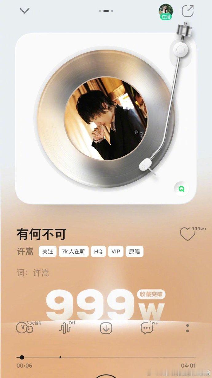 #许嵩7首歌破QQ音乐千万收藏# 许嵩的音乐是青春的旋律,七首经典之作《素颜》《有何不可》《幻听》《断桥残雪》《雅俗共赏》《玫瑰花的葬礼》《如果当时》在QQ音乐上突破千万收藏,印证了他作为歌手和创作人的非凡实力和持久影响力。