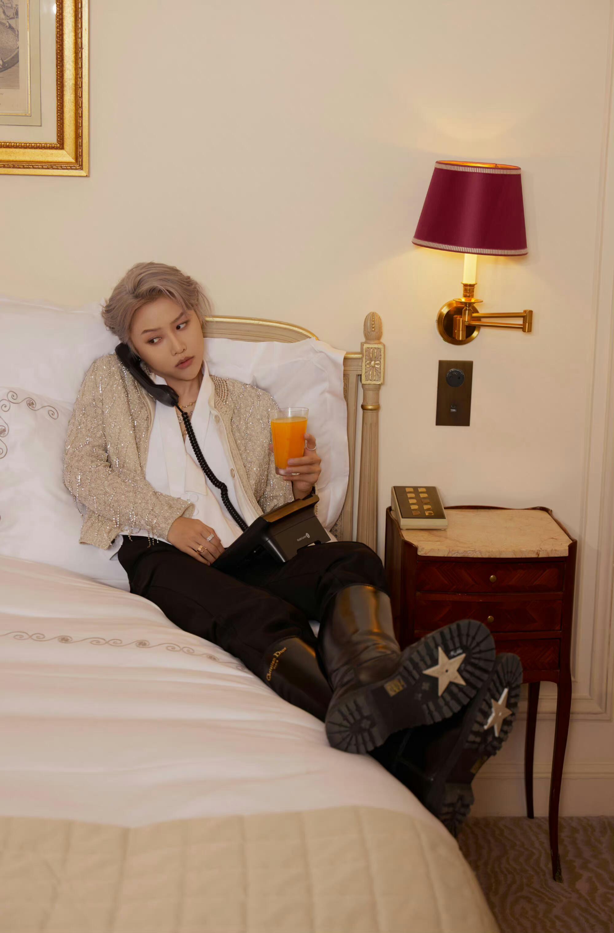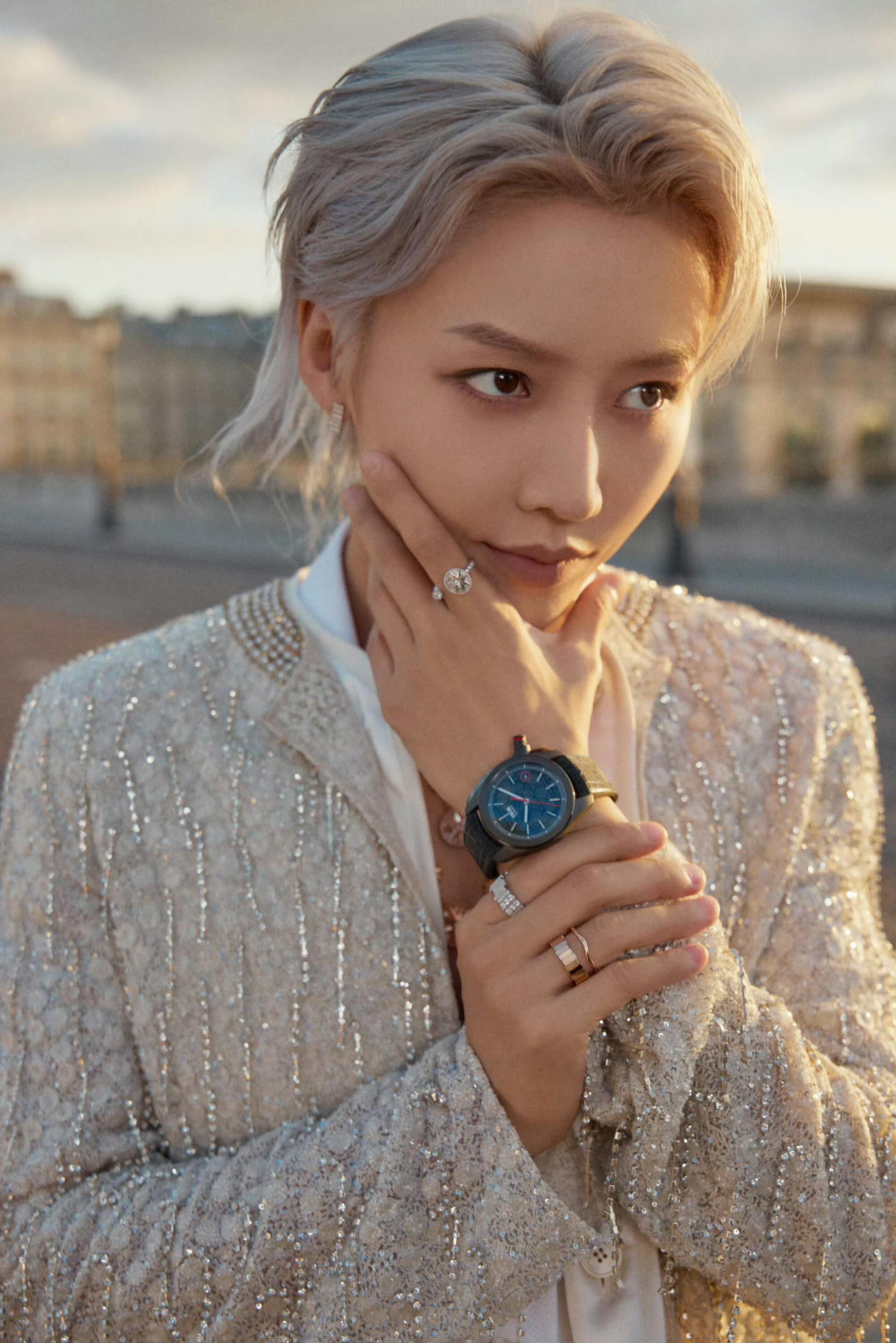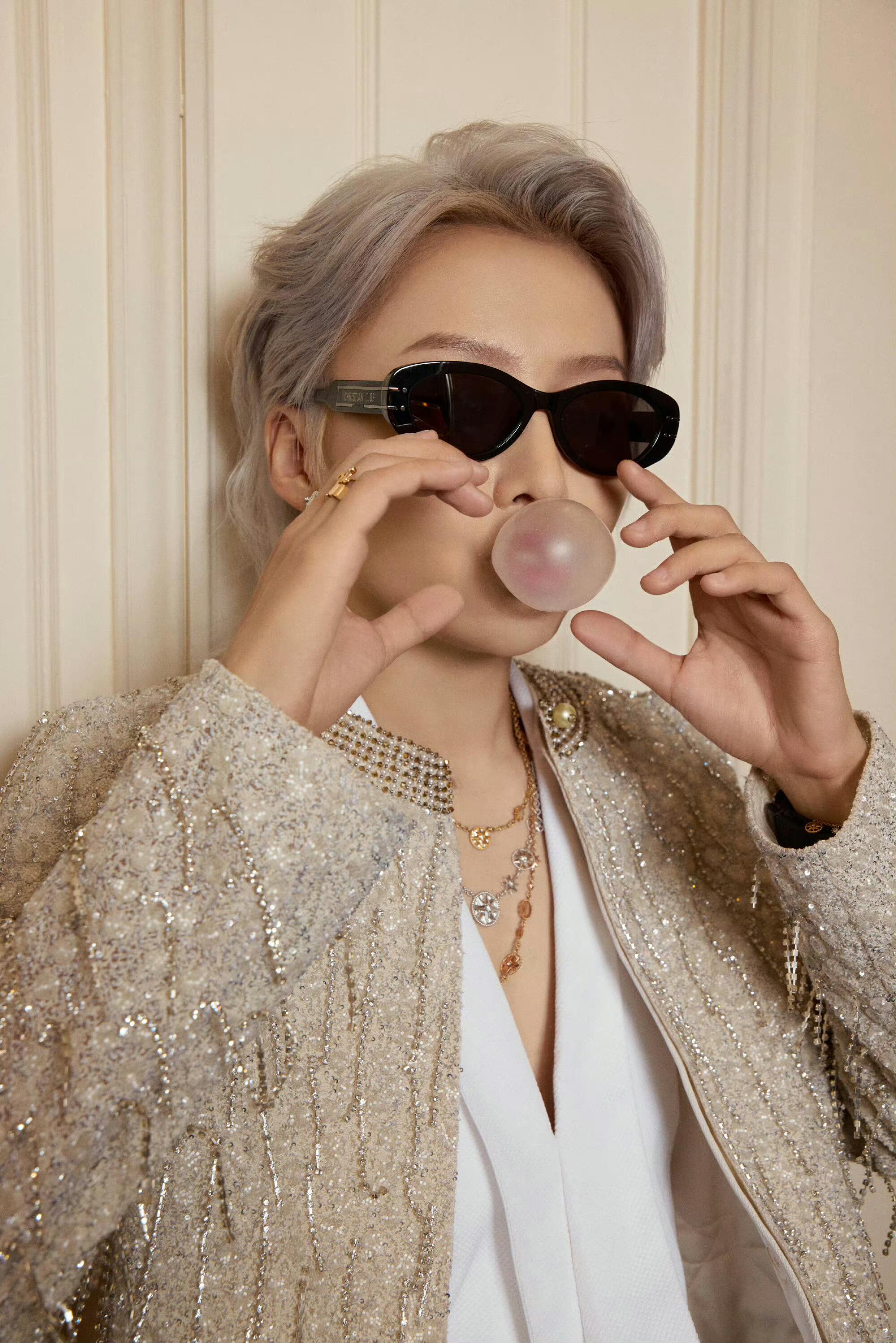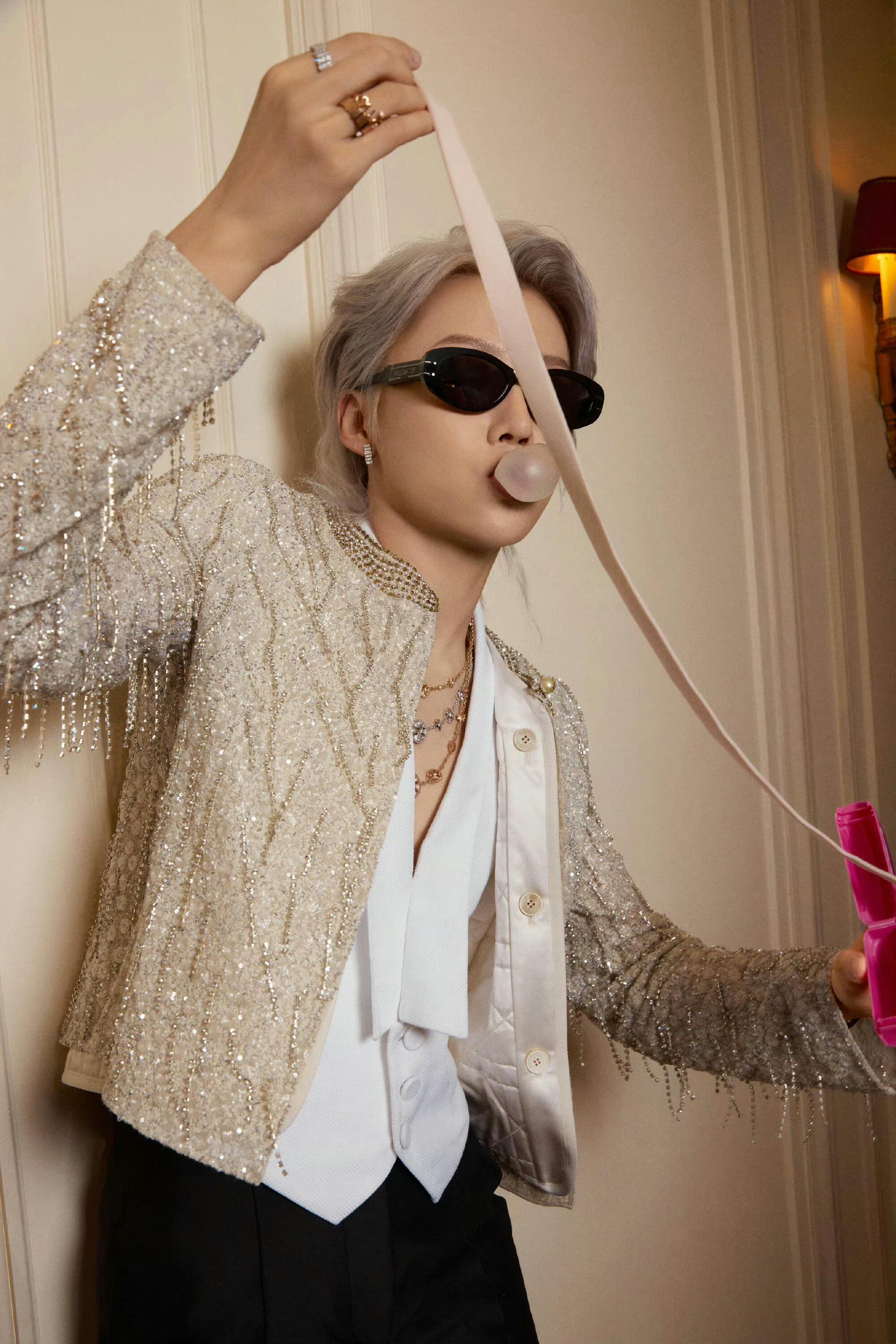 刘雨昕,珠链流苏的粗花呢外套,搭配八芒星珠宝和利落长靴,加上个性时髦的银发,是她拿手的刚柔并济风格,华丽又不失浪漫,自带星光气场。