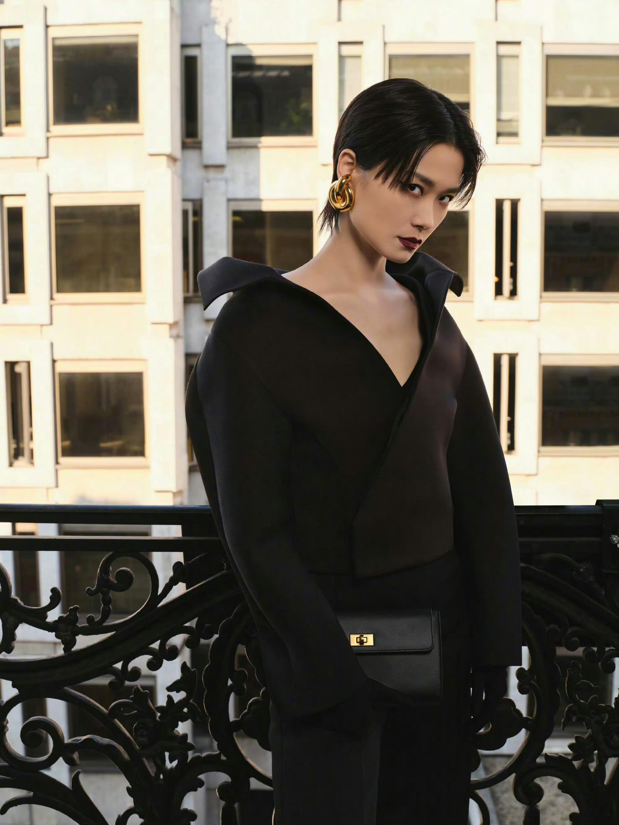 李宇春,黑色廓形夹克搭配修身长裤,扑面而来的冷冽气场,构建出服装与身体的空间感,时髦的超模Lee登场!