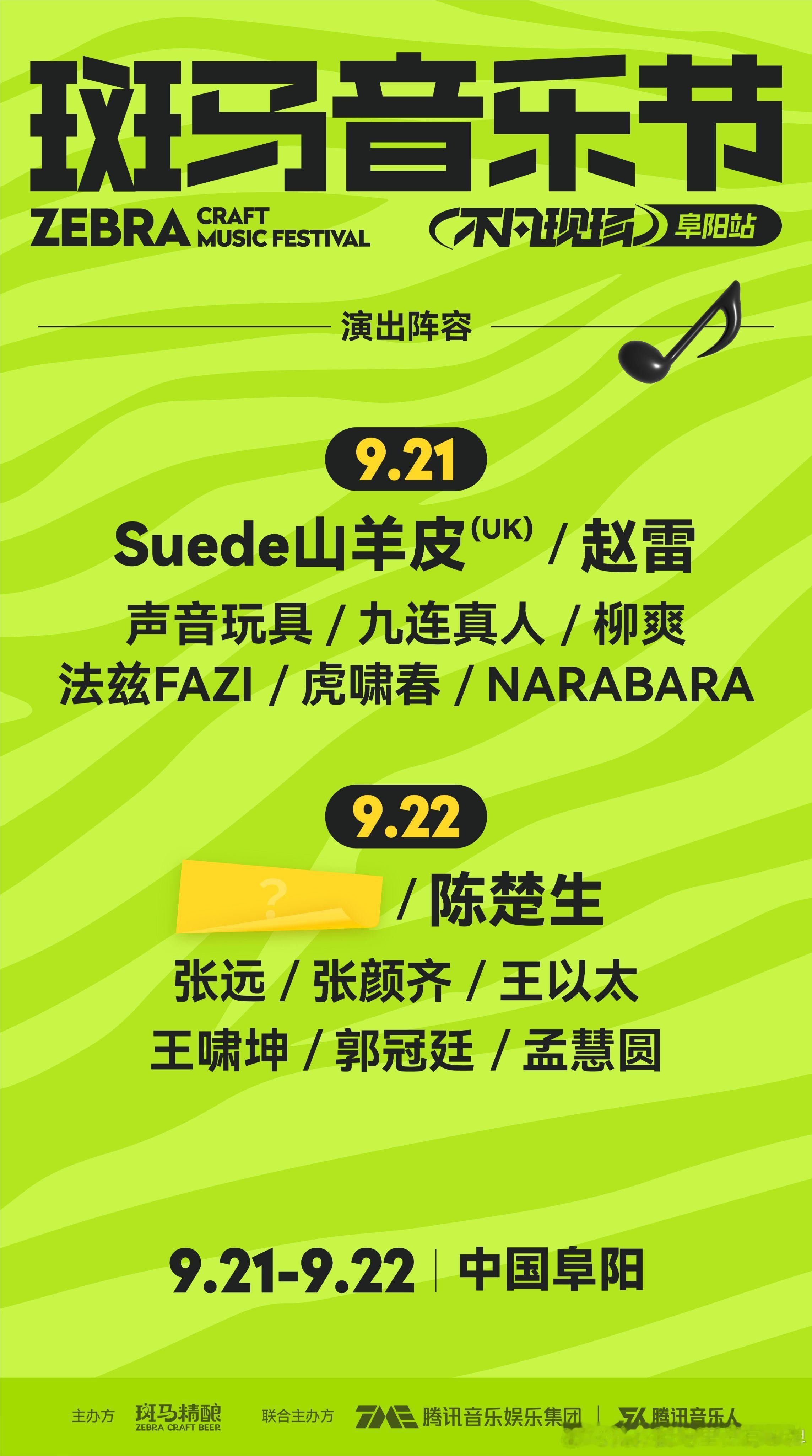 这个秋天准备好跟最好的朋友去看一场音乐节了吗?!2024年第二届斑马音乐节官宣啦,9月21日-22日野性开唱,赵雷、陈楚生、张远领衔,众多实力歌手乐队云集,一定有一个你喜欢的歌手或者乐队吧!说说你最想听谁唱歌给你听?#陈楚生张远安徽版快乐老友记#