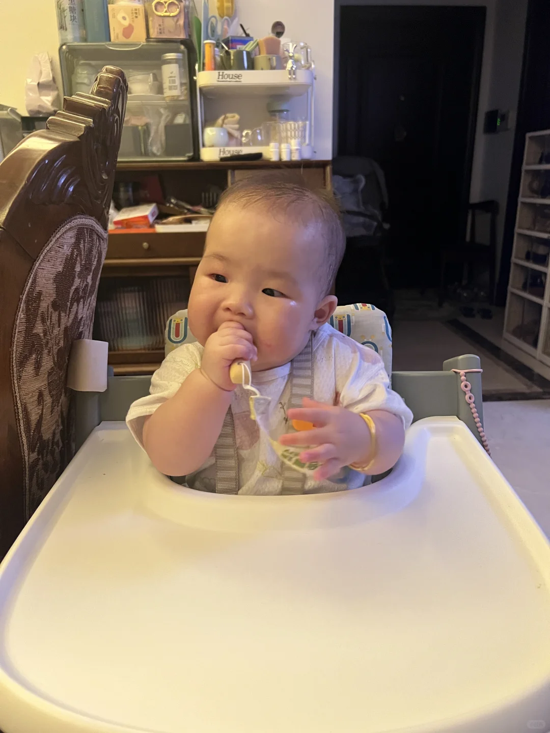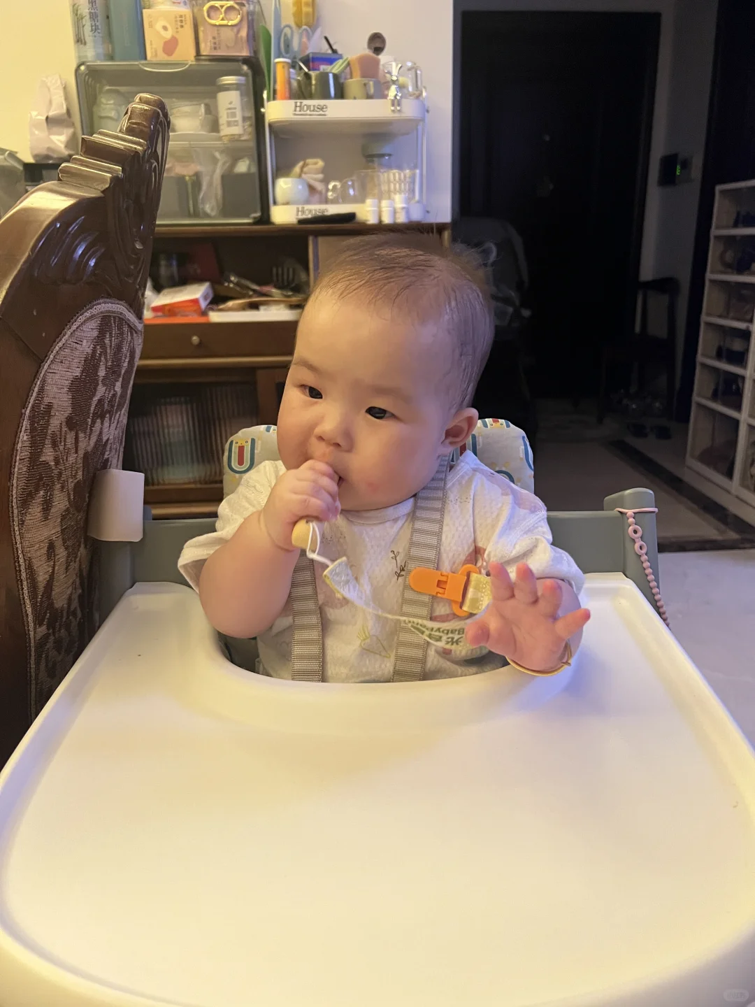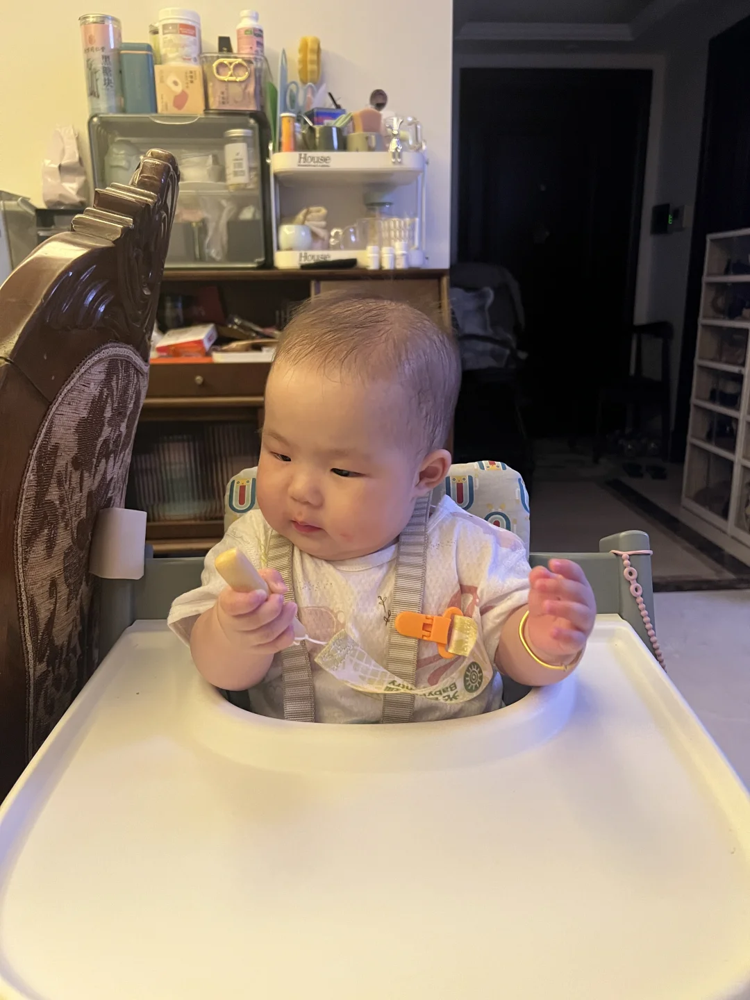 六月龄吃货宝宝,吃嘛嘛香,出牙难受,磨牙饼干是小吃货的最优解?毕竟是个吃纸都很认真的娃~