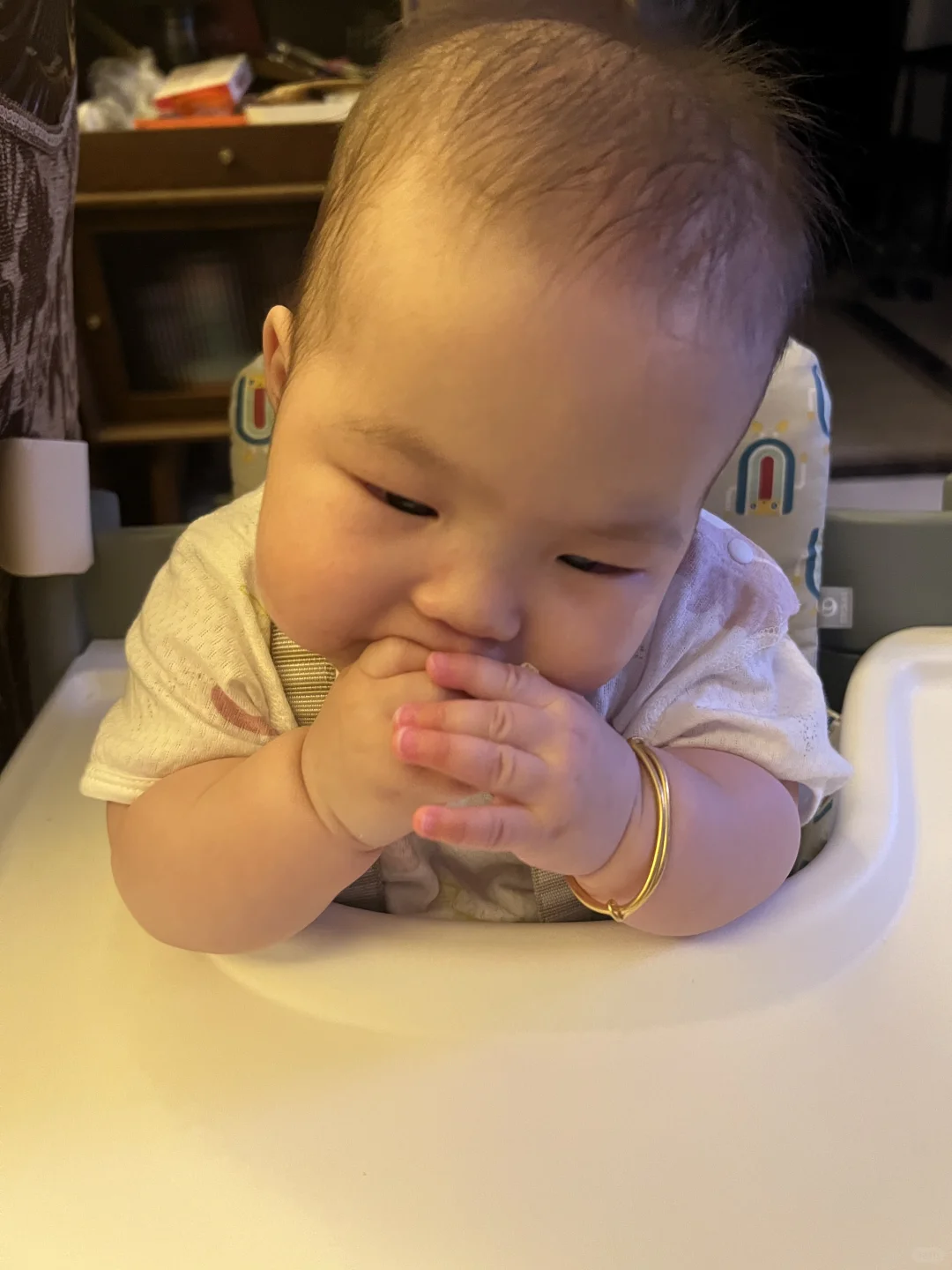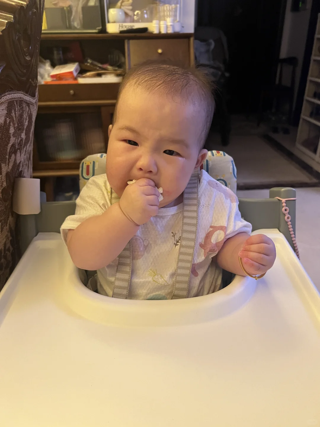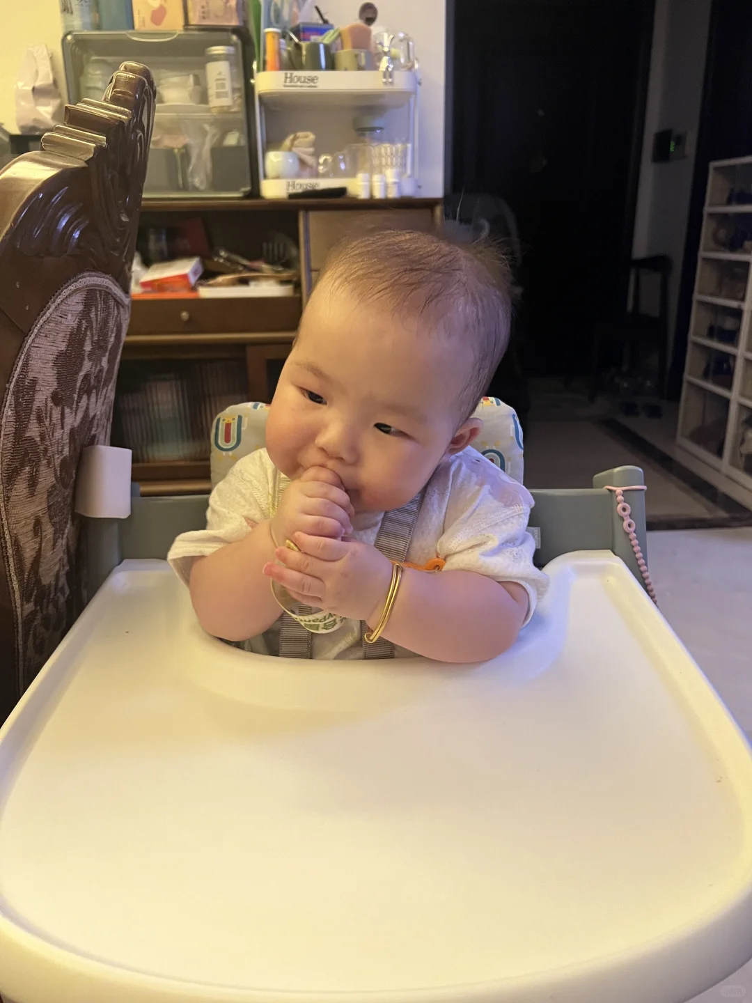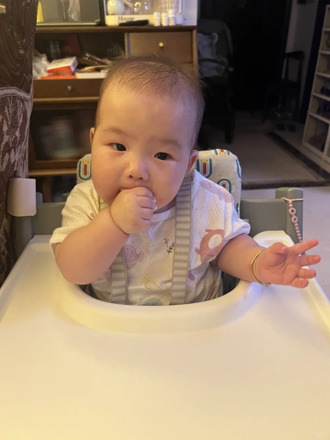 六月龄吃货宝宝,吃嘛嘛香,出牙难受,磨牙饼干是小吃货的最优解?毕竟是个吃纸都很认真的娃~