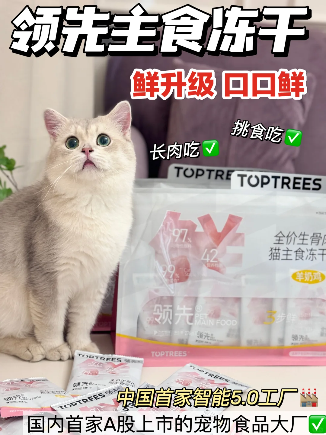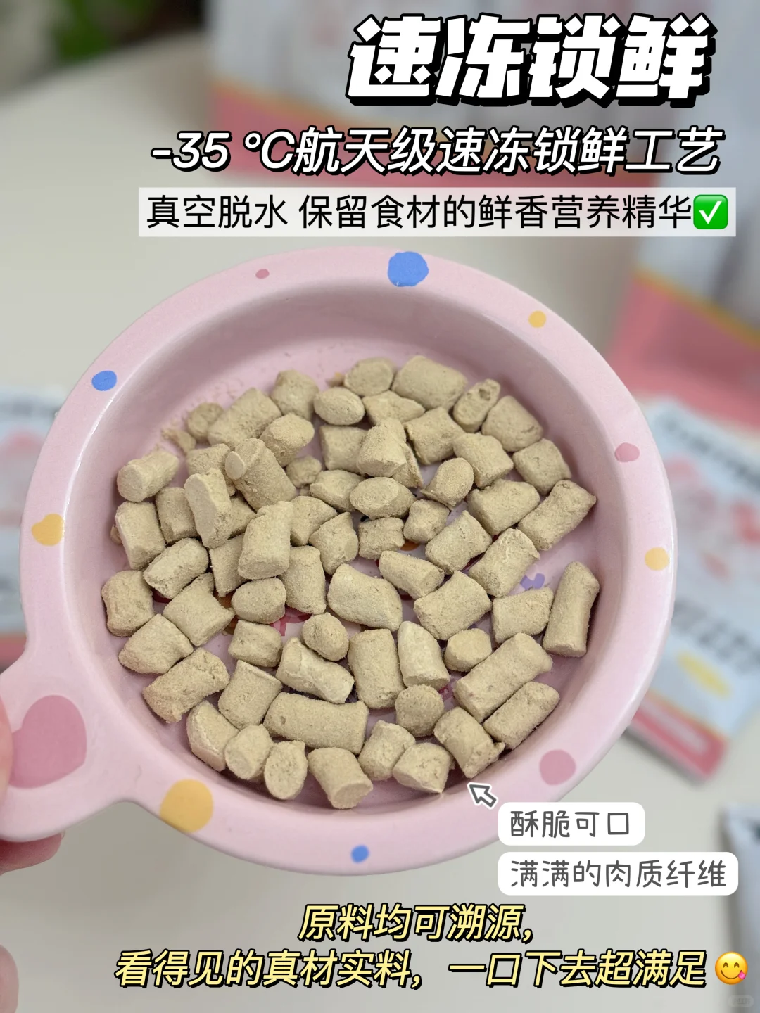 就是这个领先主食冻干,一开始是因为生骨肉的配方才入手的,它的用料是真的优秀,鲜鸡肉有86%,而且还是冷链运输,避免小猫咪吃到僵尸肉的可能❌。运用了-35°C航天级速冻锁鲜⼯艺,把食材里的营养保留的比较完整,小猫咪吃起来也酥酥脆脆的,这么棒的口感加上满满的肉肉,小猫咪这么好不喜欢呢~