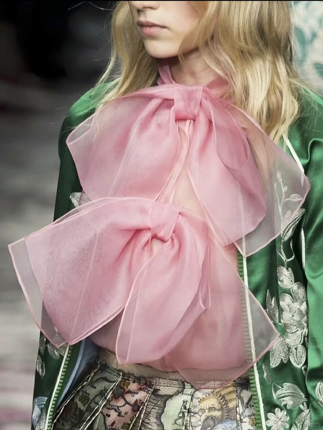 万能的 蝴蝶结🎀在不同女人身上, 它可以是凌厉神秘的, 也可以是甜蜜天真的 成了时尚“玄学” 图片来源于网络