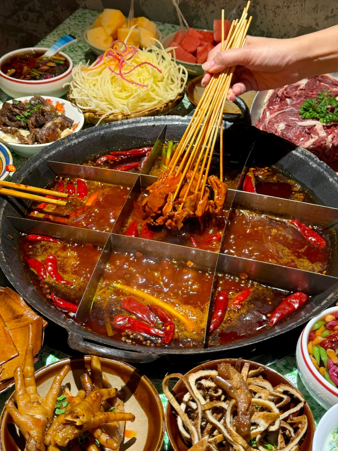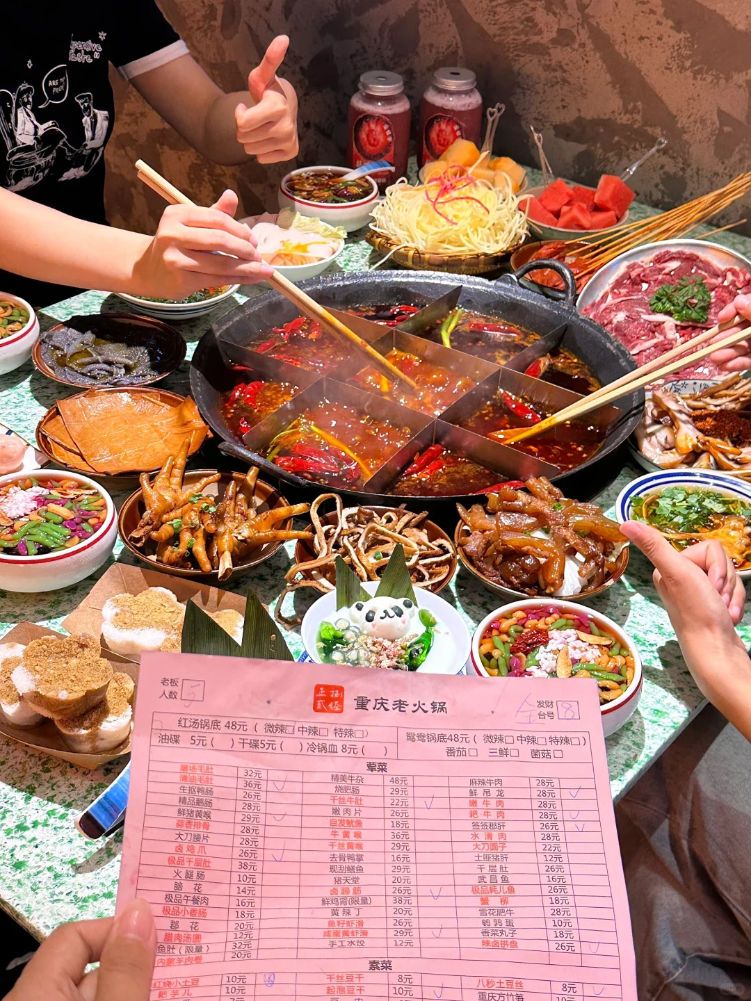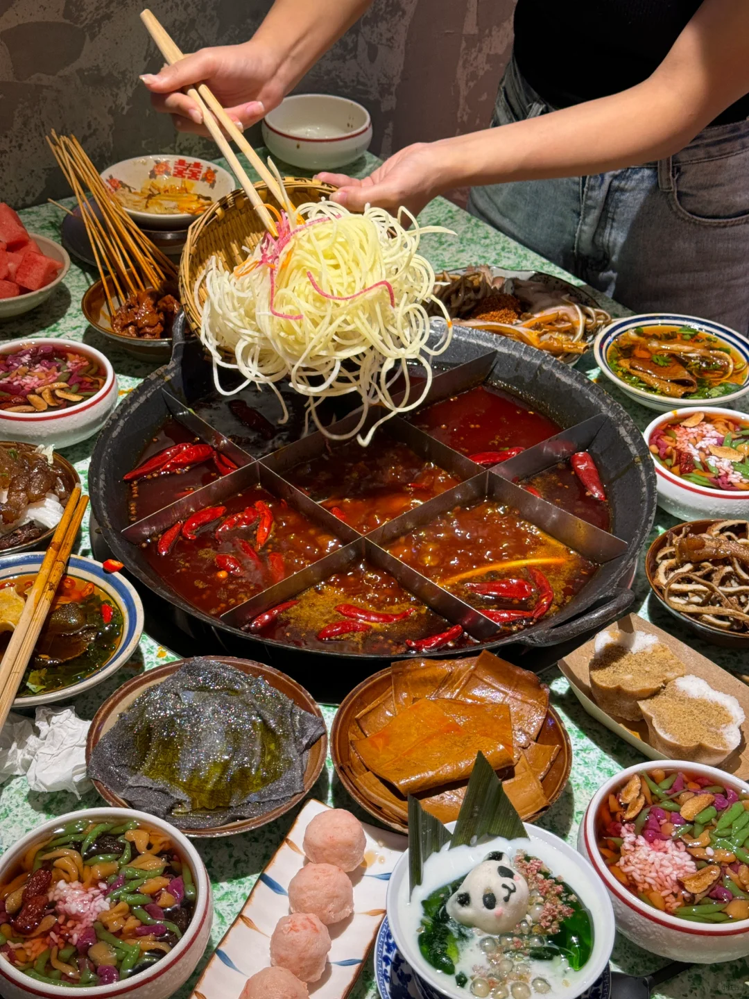 成都人真的会吃啊,锅底很巴适,不会越吃越苦,甜品是可以单独拿出去开店的程度!! 斑斓凉虾和杨梅沙冰很解腻 听口音都是本地人在吃,外地朋友估计也找不到这种便宜的市井老火锅 小碗菜菜品丰富,在春熙路这种地段价格也低得不敢让人相信。。。