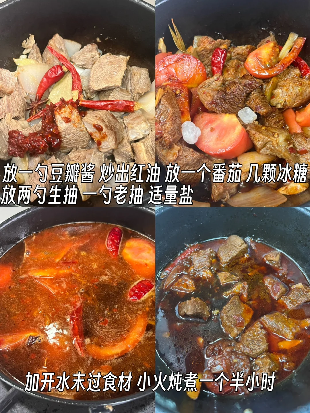 红烧牛肉秘诀get!记得豆瓣黄豆酱混炒,多加水慢慢炖,那香味,绝了!你们也试试,超满足~