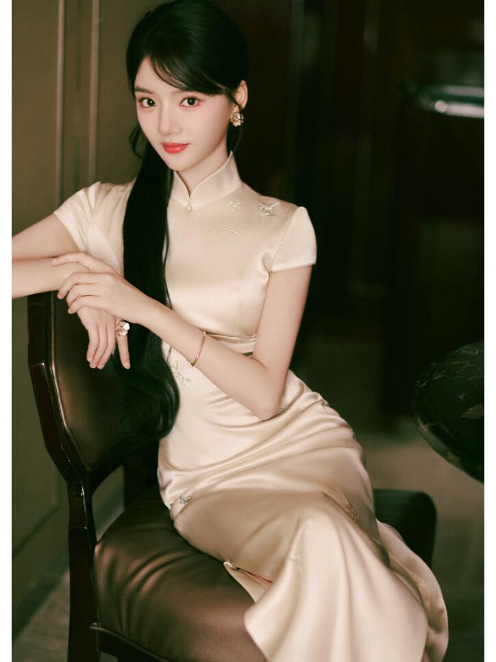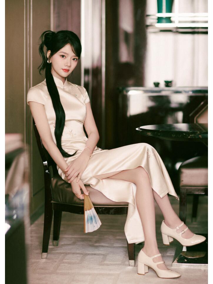 被任敏的月色旗袍造型美到了
