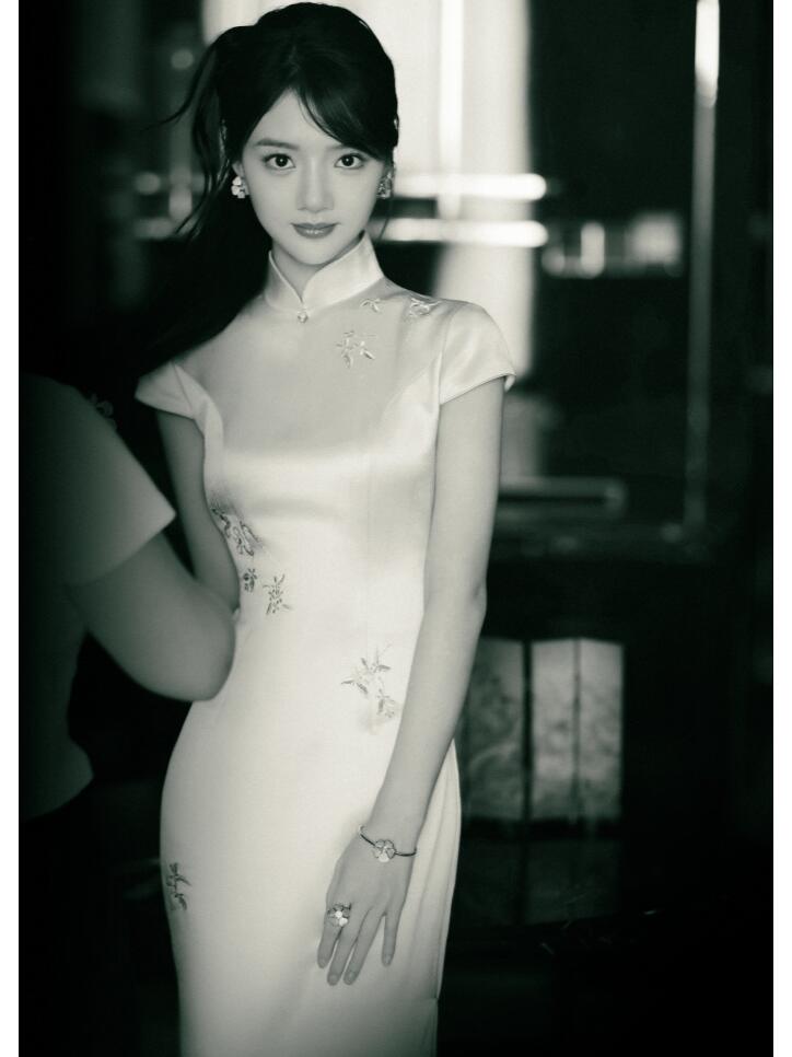 这身旗袍让任敏秒变曲线小达人,剪裁简直是量身定做,身材优点全被它“偷走”了哈哈