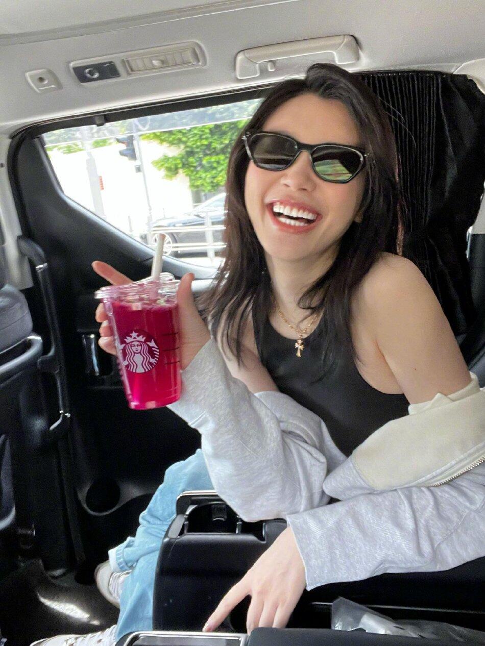 家世惊人 超模奚梦瑶分享夏日美照,身穿黑色小背心,笑容甜酷,身材完美。