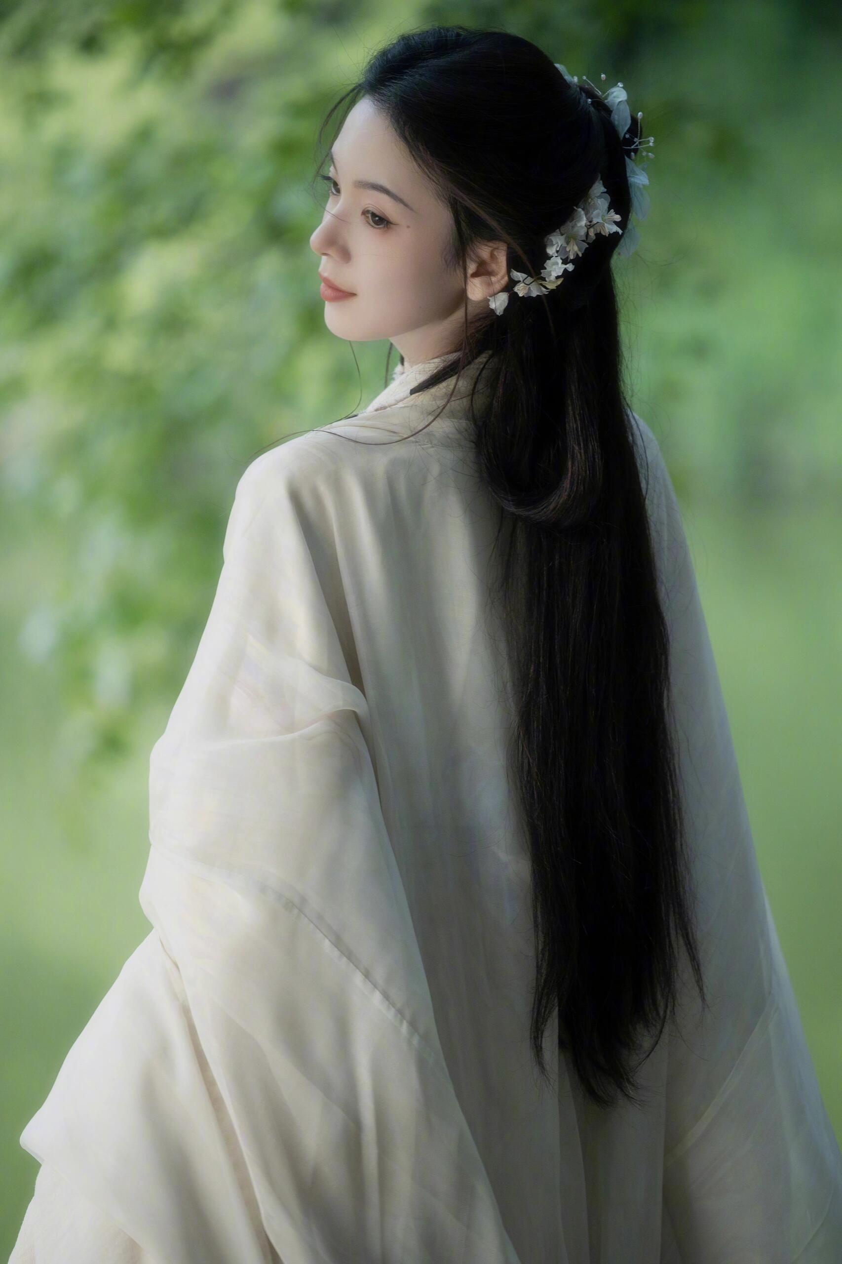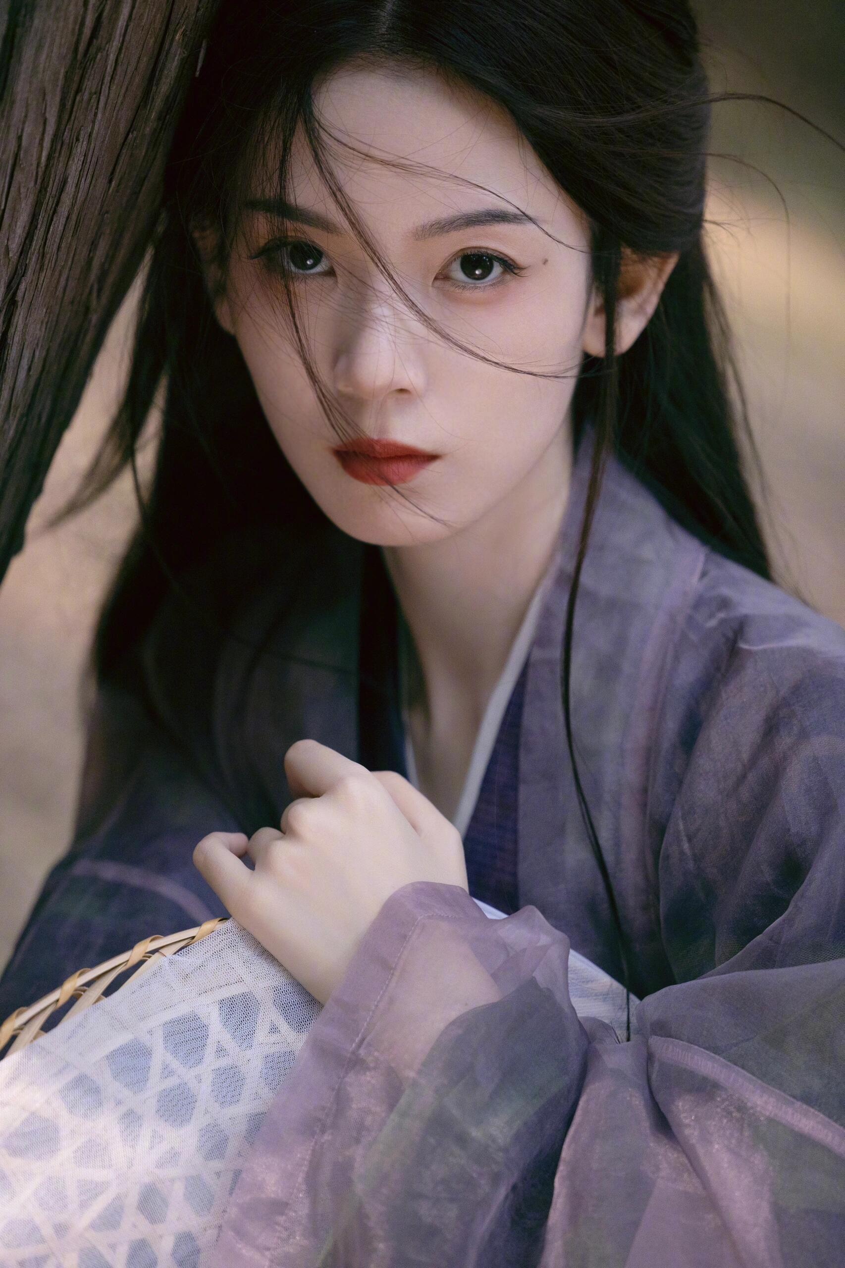 她的长相有精致小巧的古典感,很适合比较典雅的复古妆造,当然跟古风、国风的适配度也很高