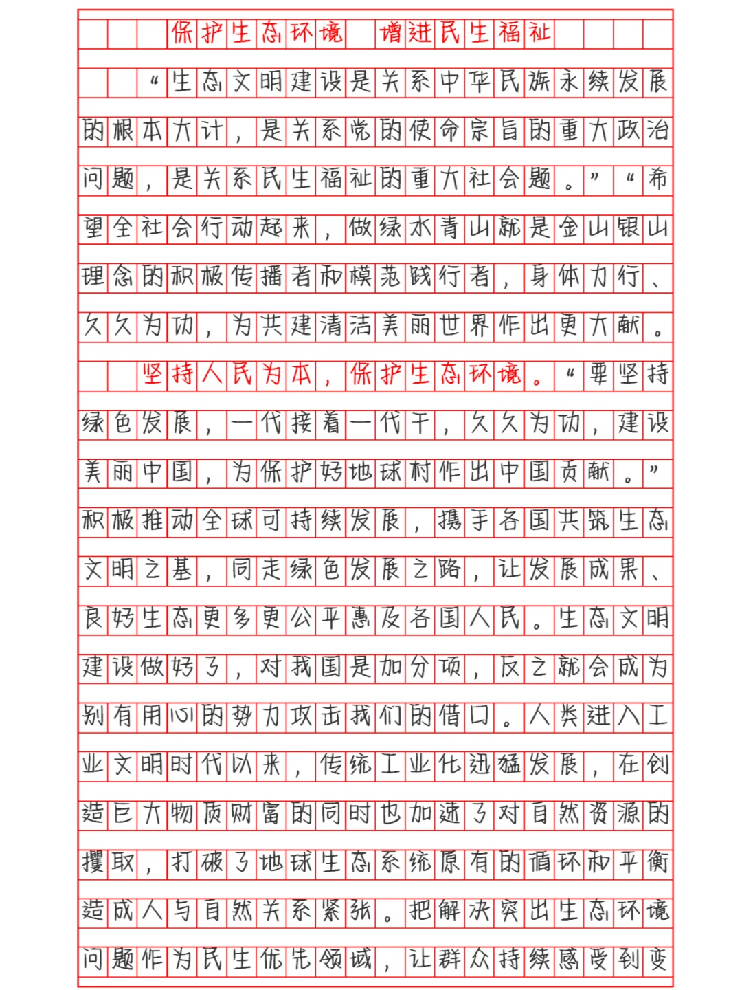 申论范文:保护生态环境 增进民生福祉