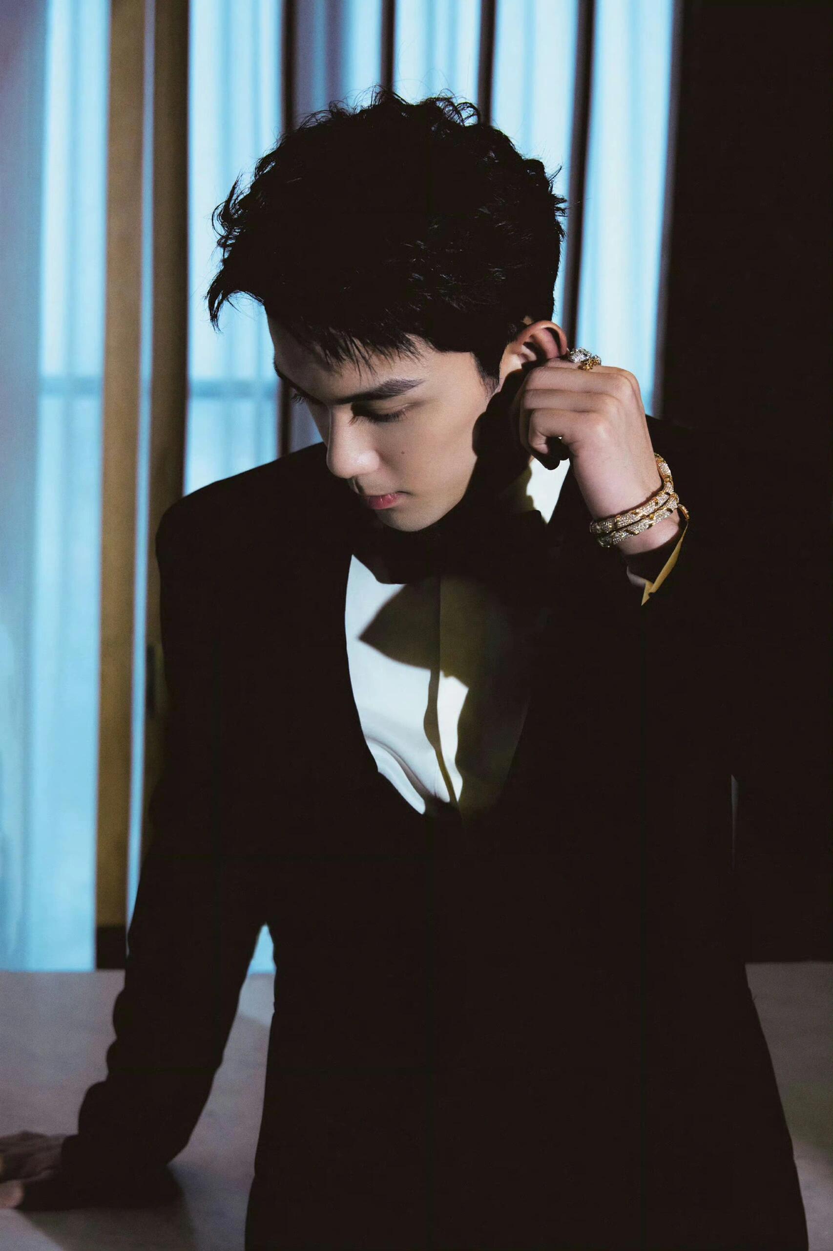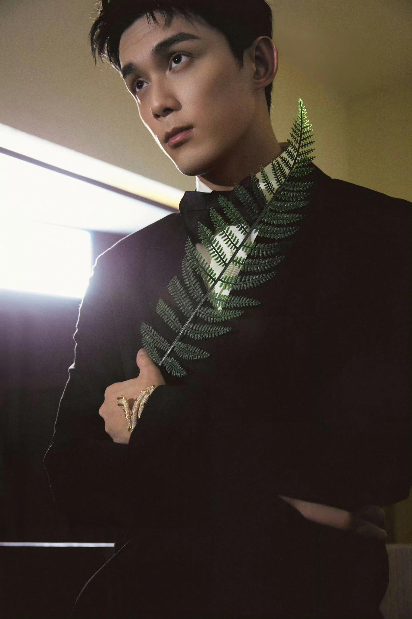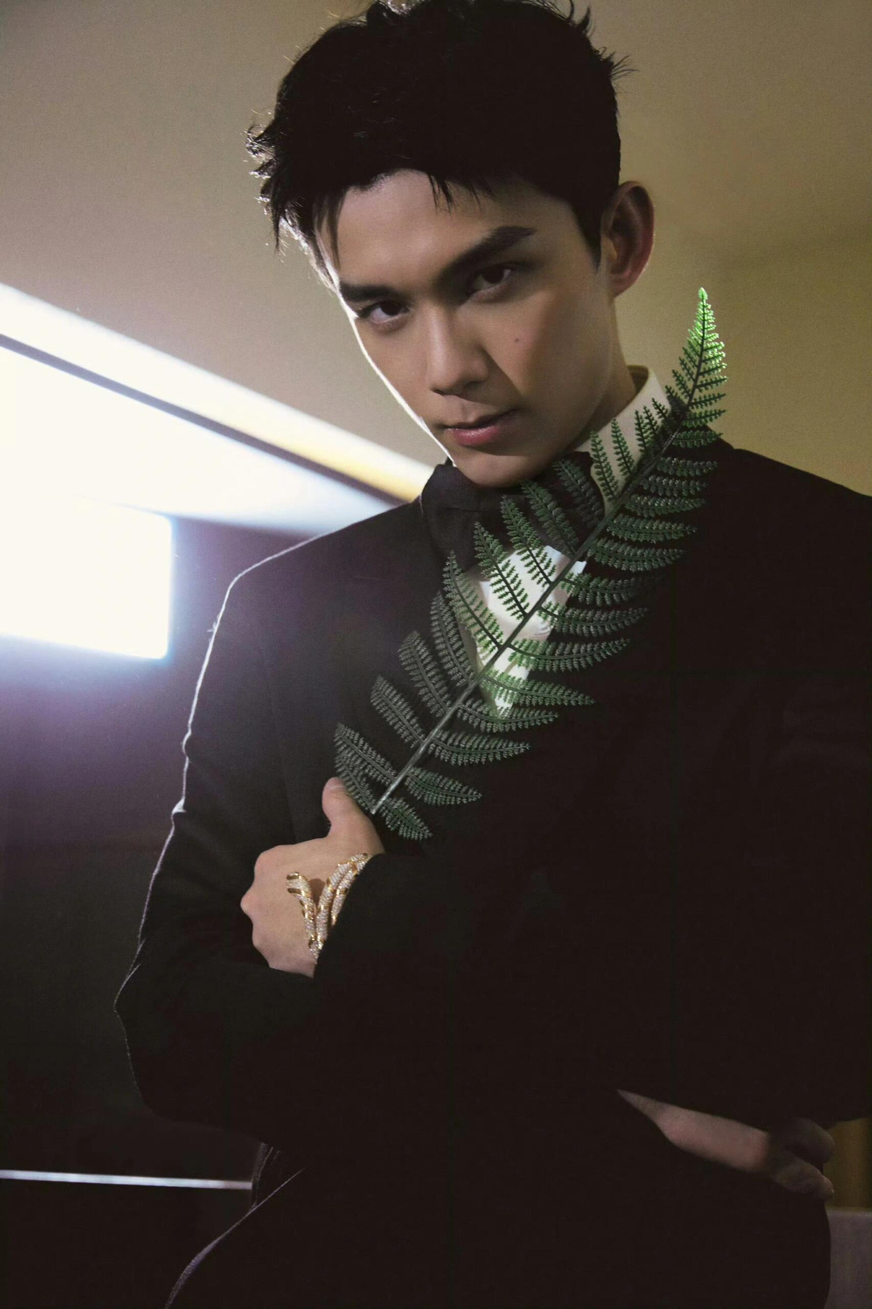 吴磊 造型,经典的黑色西服,华丽的灵蛇珠宝,“草木人间”的少年绅士。