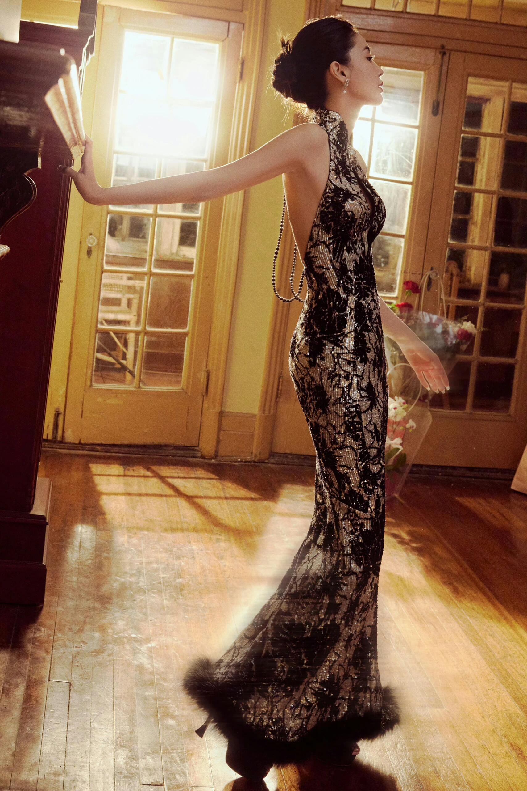 Angelababy 上海时装周大秀,穿着新中式旗袍亮相,闪耀亮片刺绣,优雅婀娜身姿